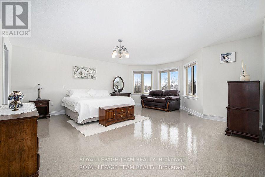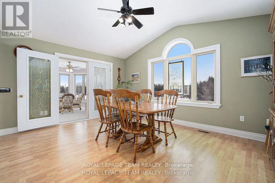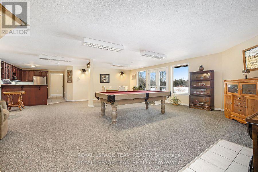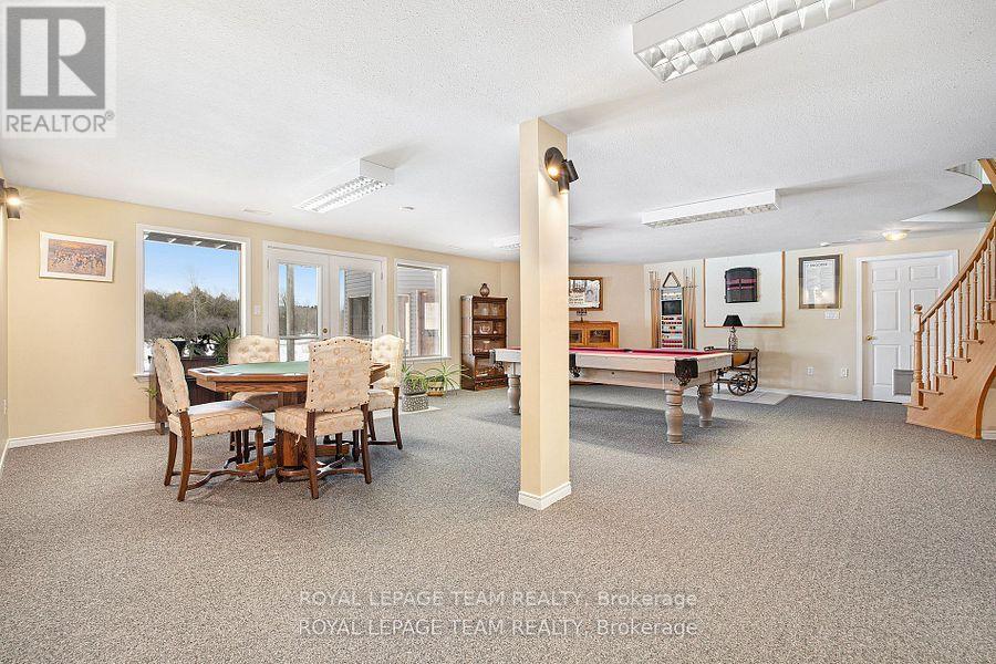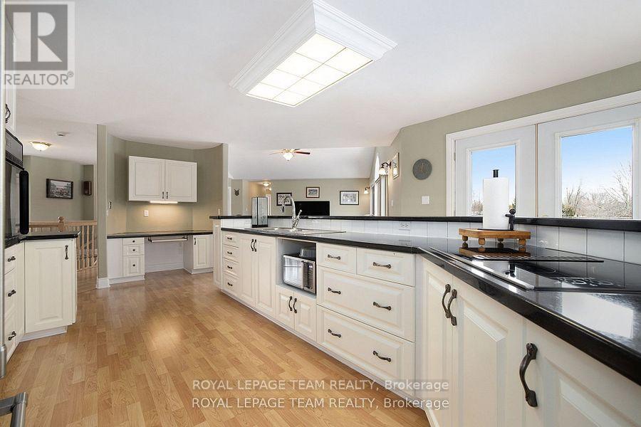 Executive Custom-Built Home Located on the South Branch of the Rideau River, this exceptional home offers approx 4800 square feet of space on a stunning 7+ acre waterfront property. Great opportunity for Multi Generational family living. Designed to capture breathtaking south-facing views, this home is perfectly positioned to enjoy spectacular morning sunrises and nature viewing from nearly every room. The main level boasts 2,400 square feet of open-concept living with vaulted ceilings in the great room and spacious eat-in kitchen and dining area and access to a four season sunroom. The kitchen features granite counter tops, cooktop and built in oven with generous cupboard space, including access to a butlers pantry .The main area also boasts a large primary suite with a walk-in closet and a 5 piece ensuite with a built-in vanity, . Additional rooms on the main level include 2 additional bedrooms , laundry room, mudroom and a 2 piece bathroom. A grand curved staircase leads to approx 1500 square feet of finished living space which includes a large rec room with a kitchenette/bar area, 2 well sized bedrooms, and a 5 piece bathroom which makes this area a self contained living space for relaxation or entertaining. Additional mechanical and Storage room .A highly efficient ground-source geothermal heating and cooling system combined with lower level in-floor radiant heating ensures energy efficient comfort all year round. The attached oversized two-car garage is insulated and provides inside access to both upper and lower levels, while a detached single car garage offers additional storage and workshop space. Outdoor living is just as impressive with a generous upper deck and a lower patio area overlooking the South Branch of the Rideau River. This rare executive home seamlessly combines energy efficiency and natural beauty, making it a truly exceptional find. To fully appreciate the property make sure to view the attached videos (id:64974)