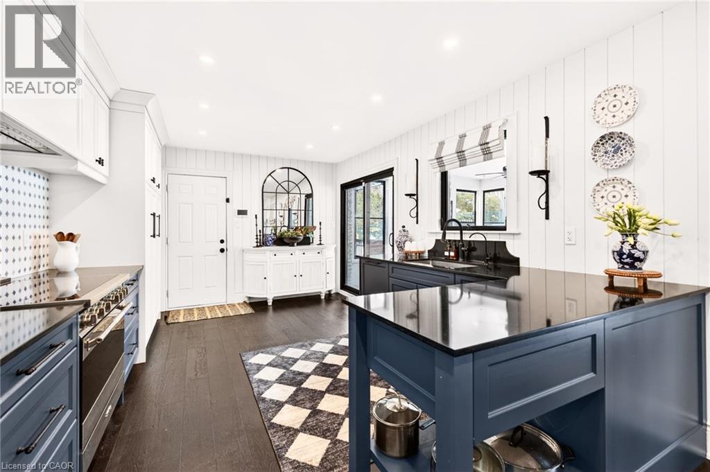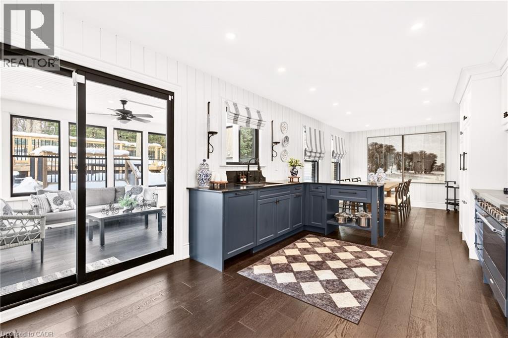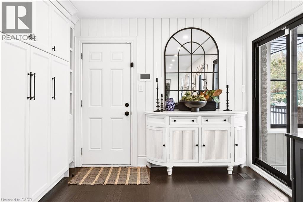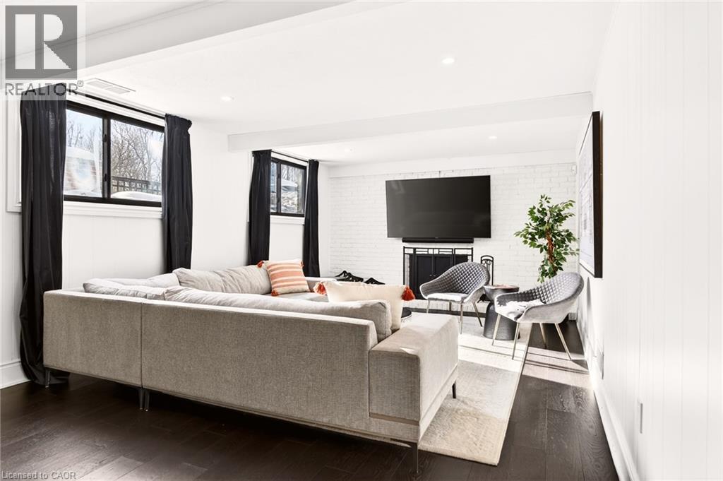 Welcome to 2129 Highview Drive, a beautifully updated five-bedroom family home located in the highly sought-after Highview Survey neighbourhood of Burlington. Offering 4,144 sq ft of living space, this home blends an English cottage aesthetic with timeless sophistication, creating a warm and inviting retreat just 10 minutes from downtown Burlington and the lakefront. Featuring hardwood floors, spacious principal rooms, and multiple walkouts, the home is ideal for both everyday living and entertaining. The updated kitchen with high-end appliances opens to a bright sunroom overlooking the private backyard. A rare main-floor primary suite offers a lounging area and a luxurious ensuite with glass shower, heated floors, and ensuite laundry. The finished lower level includes a cozy family room with fireplace, glass-walled gym, kitchenette area with built-in bar, 3-piece bathroom, second laundry, and a walk-up to the pool area. The backyard is a private oasis with multi-tier decking, patio, landscape lighting, and an inground concrete pool, surrounded by mature trees and nature. A perfect blend of comfort, charm, and Muskoka-style living in one of Burlington’s most desirable neighbourhoods. (id:64974)