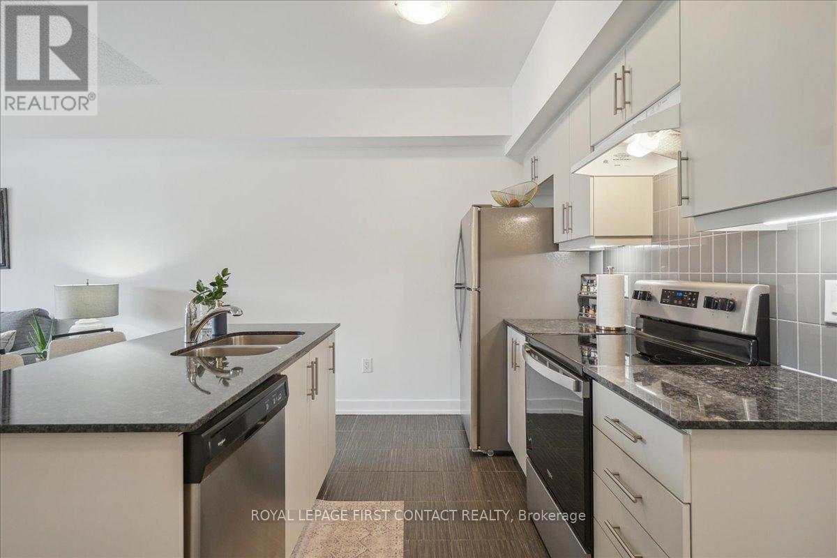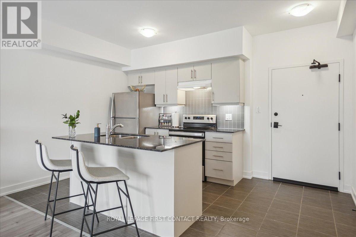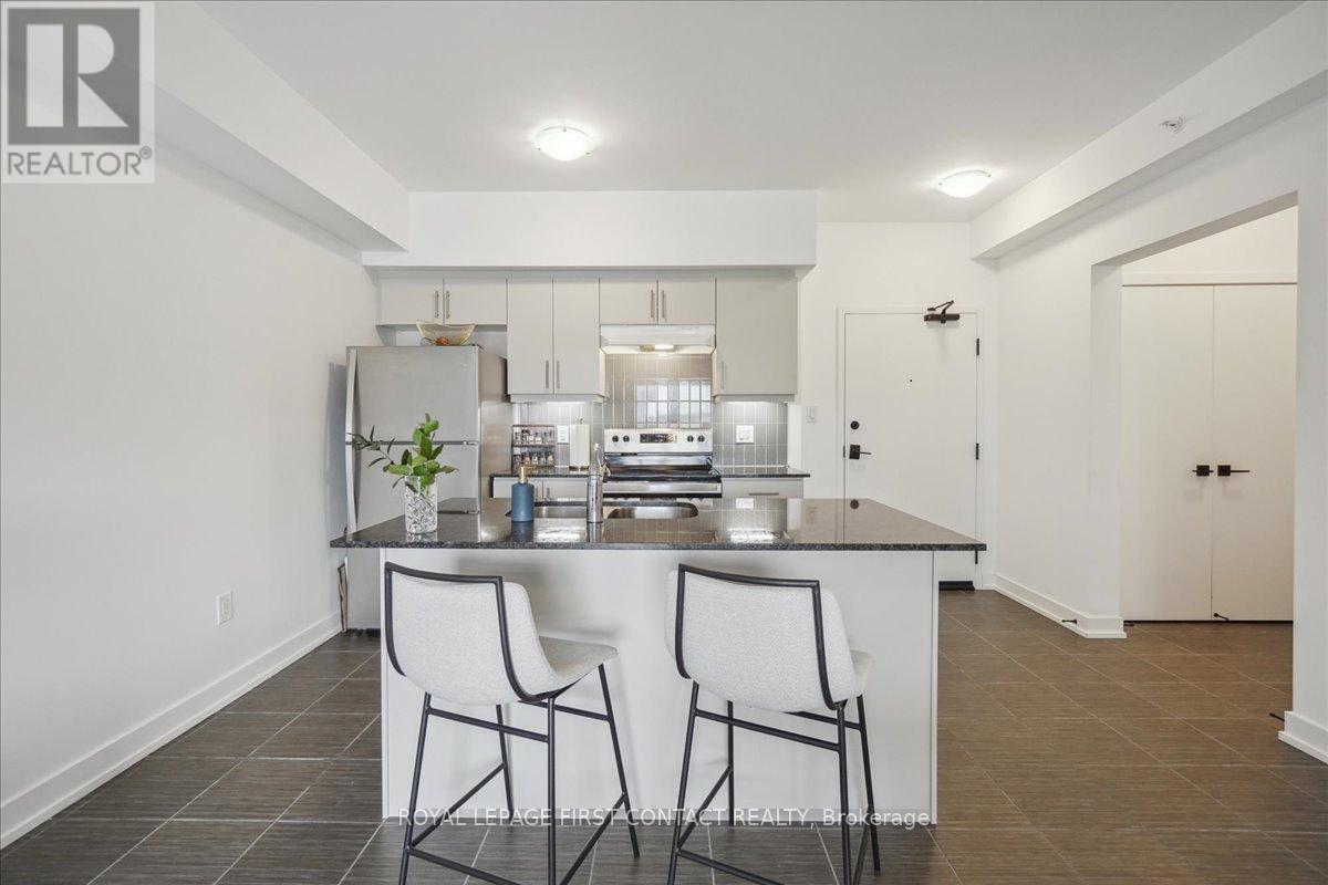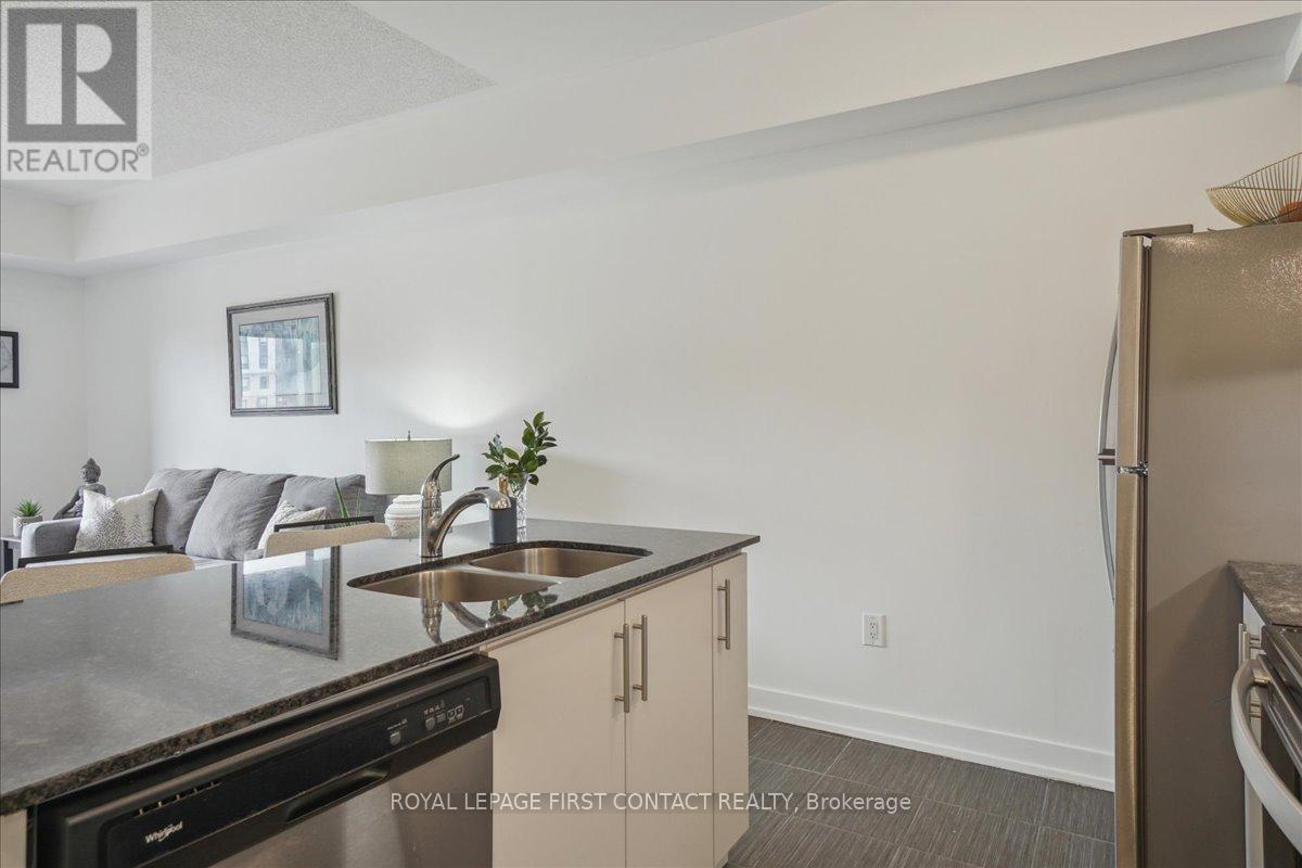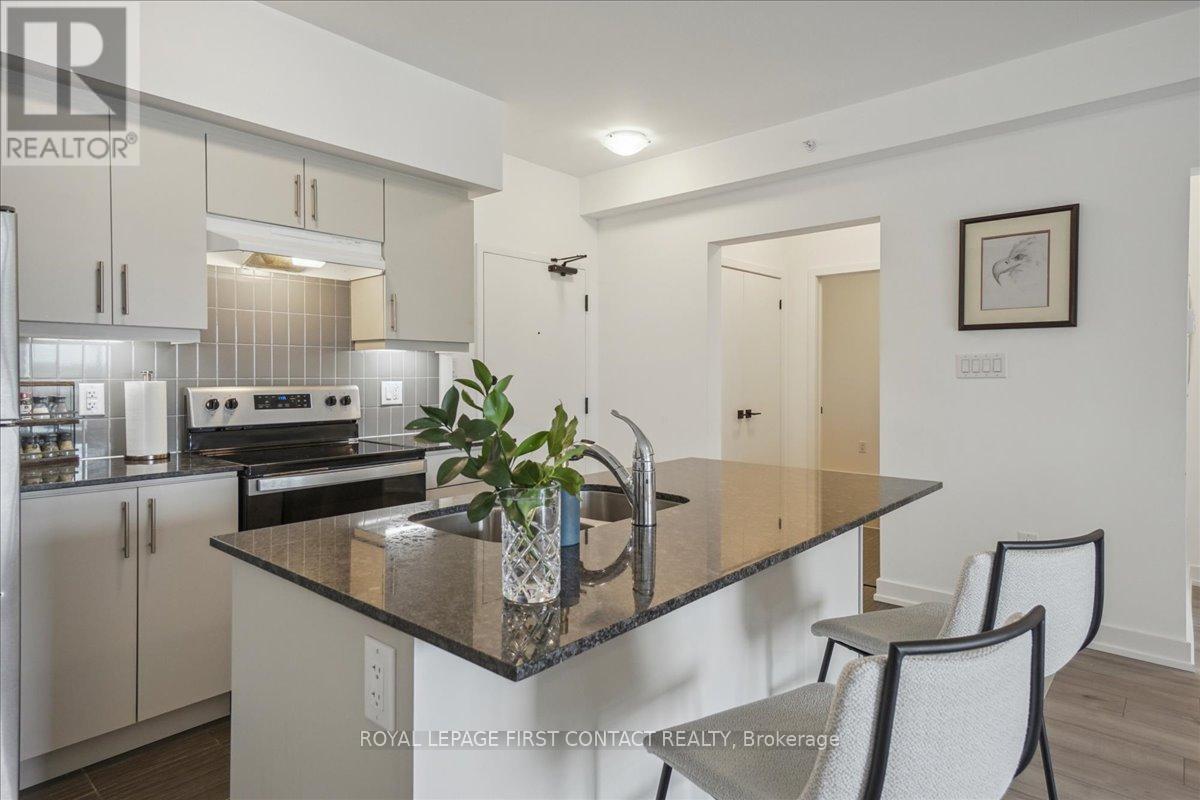 Client RemarksBistro 6 Condo - 1 Bedroom + Den in Barrie.....Welcome to this bright and spacious 1-bedroom plus den condo located in the sought-after Bistro 6 building in Barrie! Perfectly designed for modern living, this unit offers a generous layout with plenty of natural light. The open-concept living and dining area provides ample space for both relaxation and entertaining.The well-sized bedroom features large windows, offering a serene retreat, while the additional den offers flexibility for an office, reading nook, or guest space. The contemporary kitchen is fully equipped with sleek appliances and ample cabinetry for all your culinary needs.Enjoy the convenience of in-suite laundry, private parking, and more. Located close to all of Barrie's best attractions, including shops, restaurants, parks, and the waterfront, this condo offers the perfect blend of comfort and convenience. Dont miss your chance to call this beautiful, move-in ready space your new home! (id:64974)