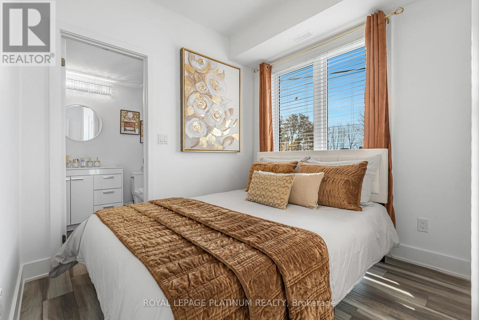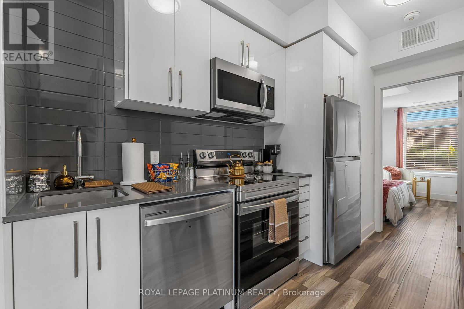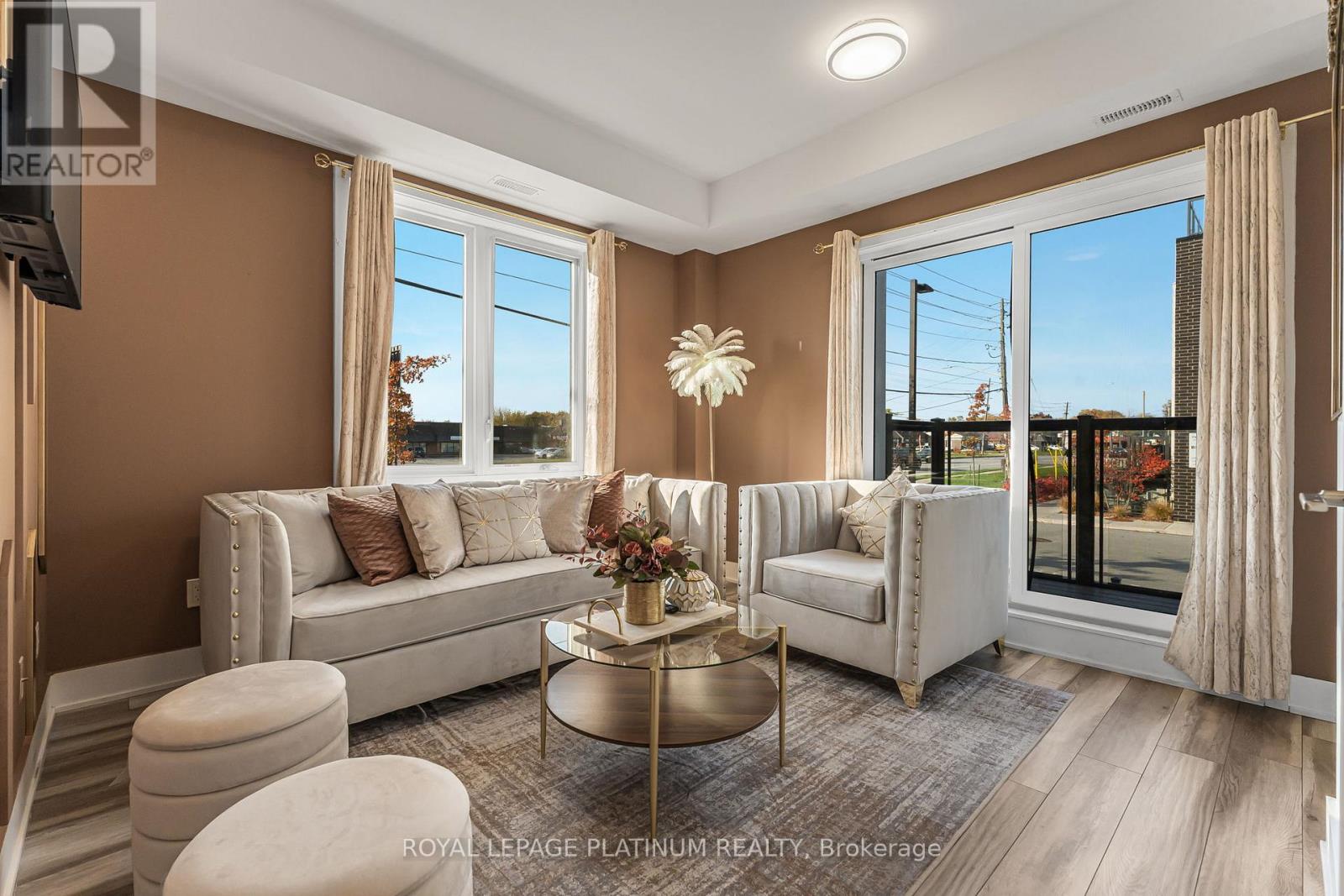 Welcome to 6065 McLeod Road, Unit 204-a modern, bungalow-style townhome built in 2022. This stacked townhouse is located in the highly sought-after south end of Niagara Falls and presents outstanding value for investors, first-time buyers, and downsizers alike. It's also a great opportunity for short-term rental use, including Airbnb or Vrbo. This bright, thoughtfully designed unit offers 2 bedrooms, each with its own ensuite bathroom, plus an open-concept layout. Large windows and laminate flooring throughout enhance the sense of space and natural light. The contemporary kitchen features quartz countertops and stainless steel appliances, seamlessly connecting to the dining area, which opens onto a private balcony-perfect for relaxing or entertaining. Conveniently situated just minutes from Clifton Hill, Fallsview attractions, Costco, dining, and all the amenities Niagara Falls has to offer, this home provides exceptional accessibility for both residents and visitors. (id:64974)