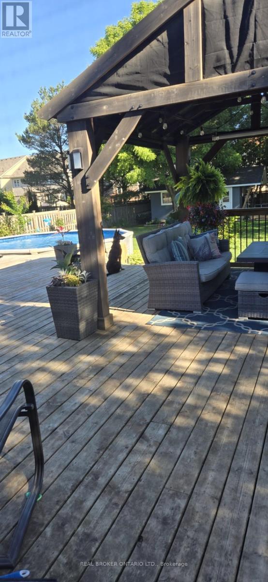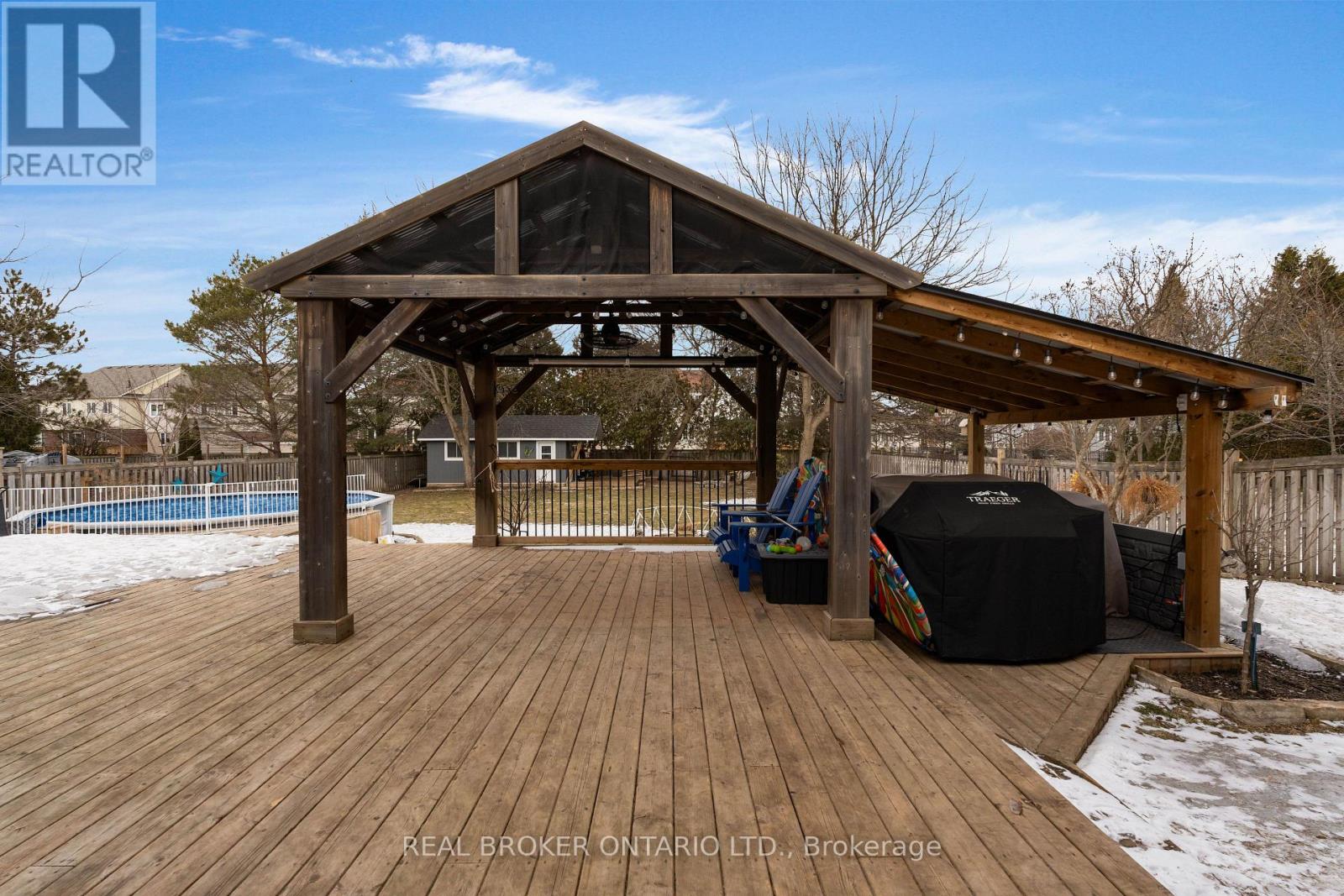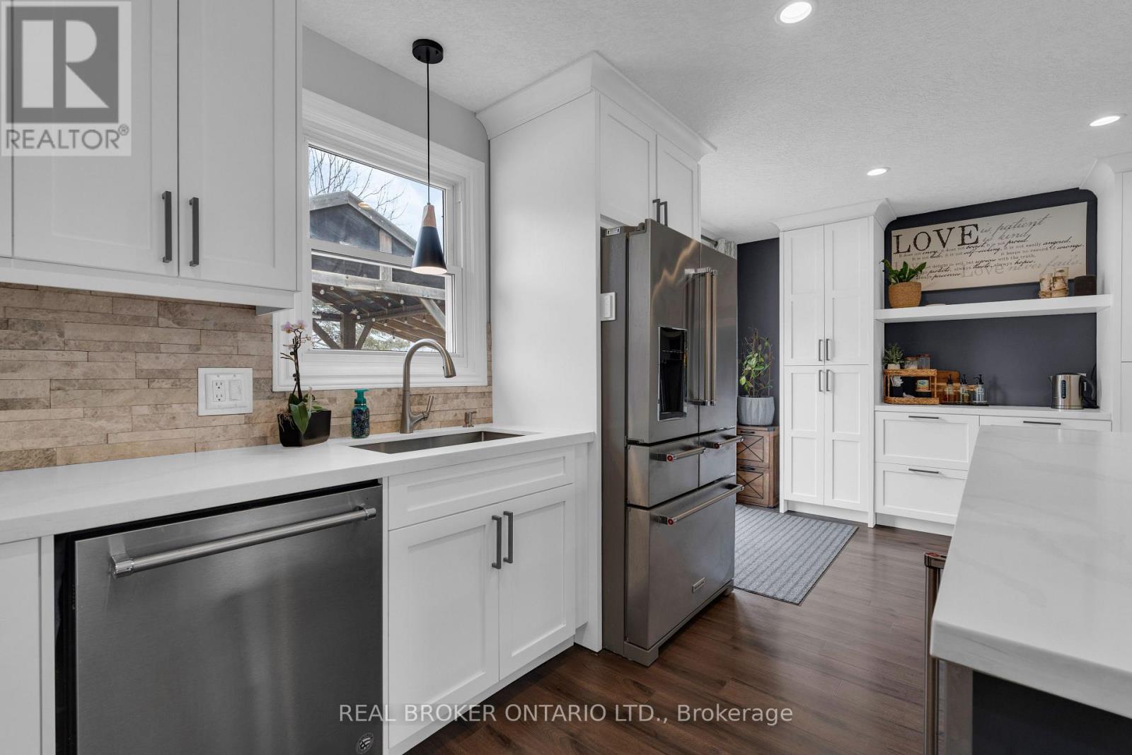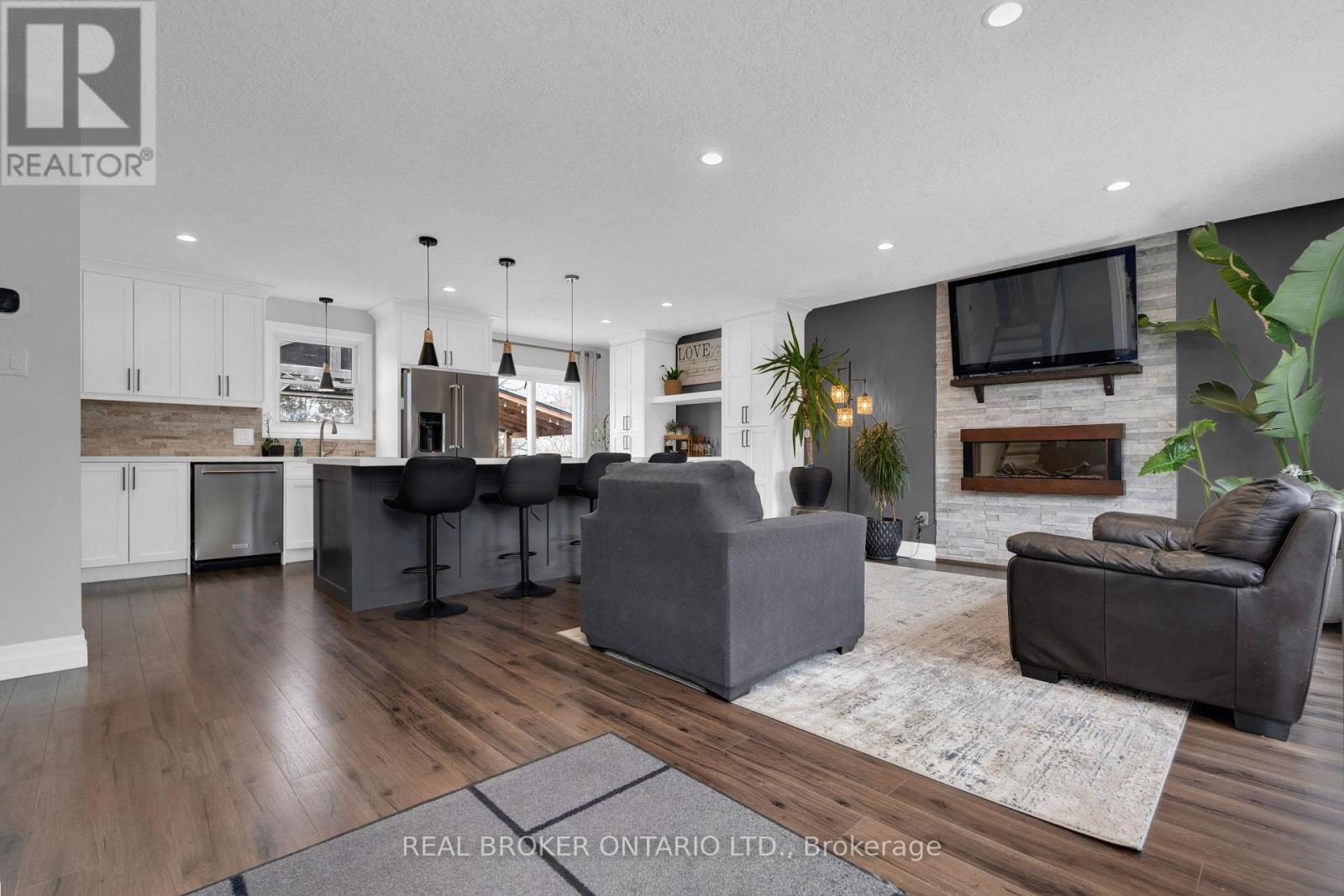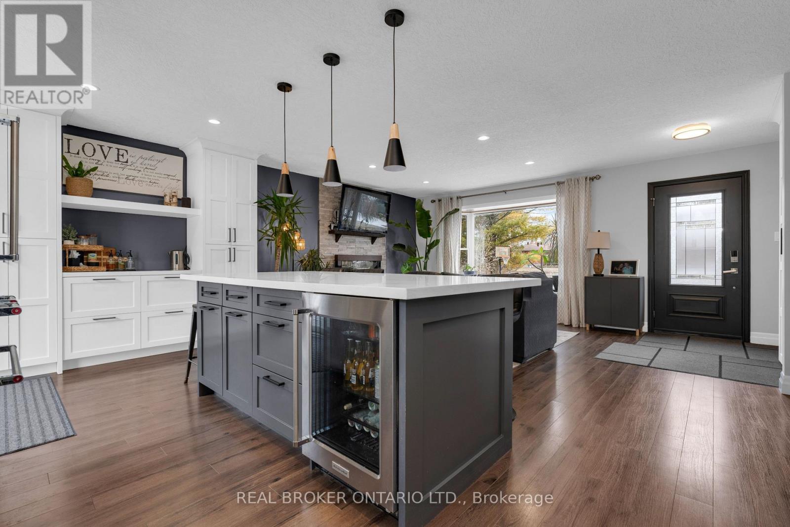 Pinch me I'm dreaming. This completely renovated 4 bedroom, 2 full bathroom home sits on a massive 227+ foot private lot with extensive decking, hot tub, and pool (liner to be installed 2026) in gorgeous backyard oasis. As you approach the home you will notice the massive driveway and lovely curb appeal with stone, updated siding and bright inviting bay window. Inside a massive open kitchen, living space with cozy gas fireplace, California knock down ceiling, pot lights, coffee bar, and island big enough to host the grandest of parties (with bar fridge) (kitchen 2019). Every chefs dream with wall oven, plus cook top, undermounted lighting, timeless pendants over island, stone backsplash, and quartz countertops. Through the sliding doors to the back deck with pergola, fully fenced yard, and back large bunky (24 x 12) with heat, roll up door and power. There is also a koi pond (4 ft deep) and plenty of room for all of the kids toys, oh and did I mention a pool change room? Back inside 3 spacious bedrooms upstairs with a full bathroom (renovated 2019 with stone countertop vanity). Downstairs the primary suite or an additional living room with 3-piece bathroom, laundry and storage space. Siding 2019, windows 2017, furnace 2015, ac 2015, on demand water heater (owned) 2015, basement macerator pump 2026, roof 2016, generlink (hooks into meter), plus inground sprinkler system with 16 heads and 4 zones, gas bbq hook up, 2 sheds plus back shop and car port, and large double gate for boats etc, power on deck to gazeebo/projection screen. Close to shopping, schools, rec centre and Base Borden (id:64974)