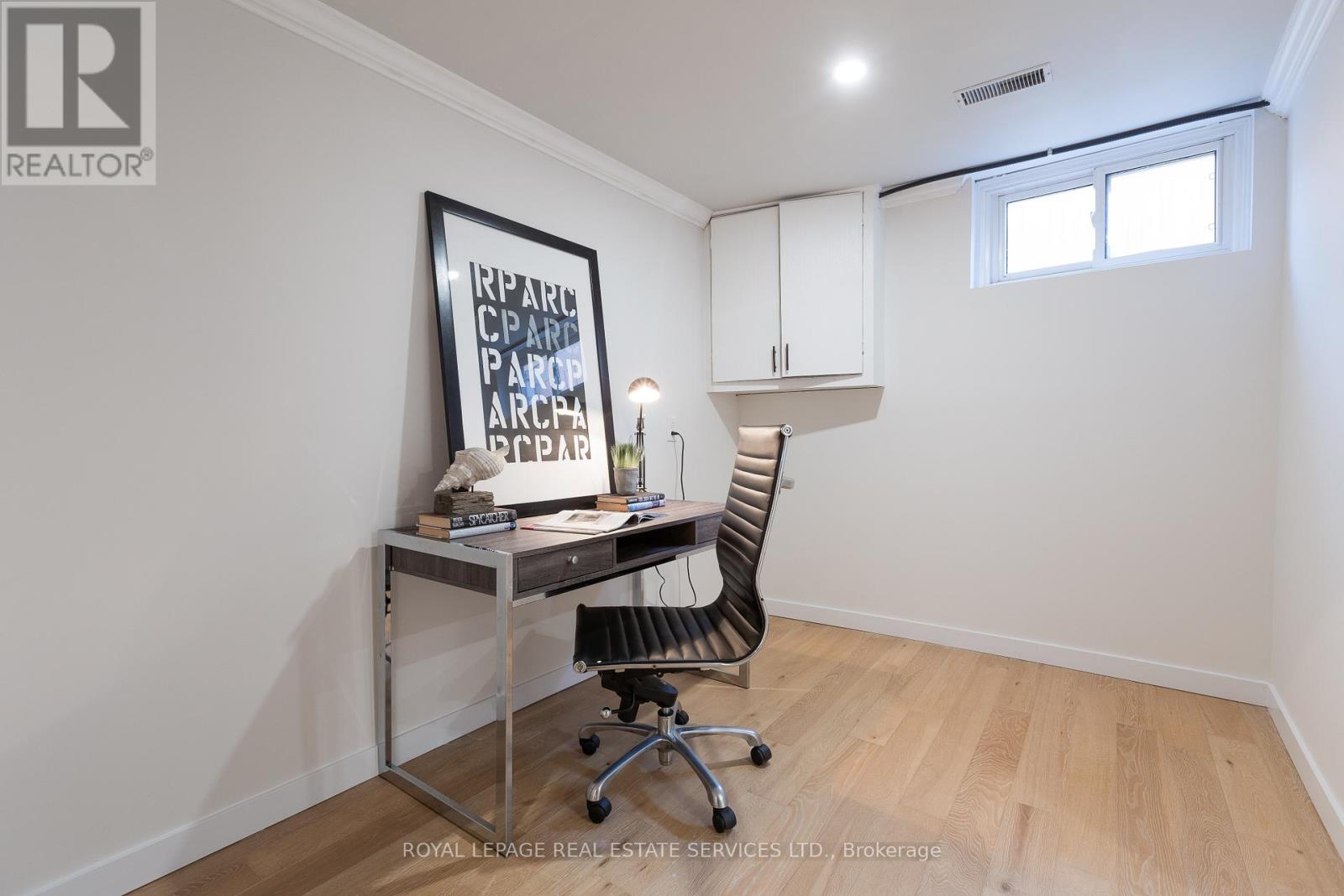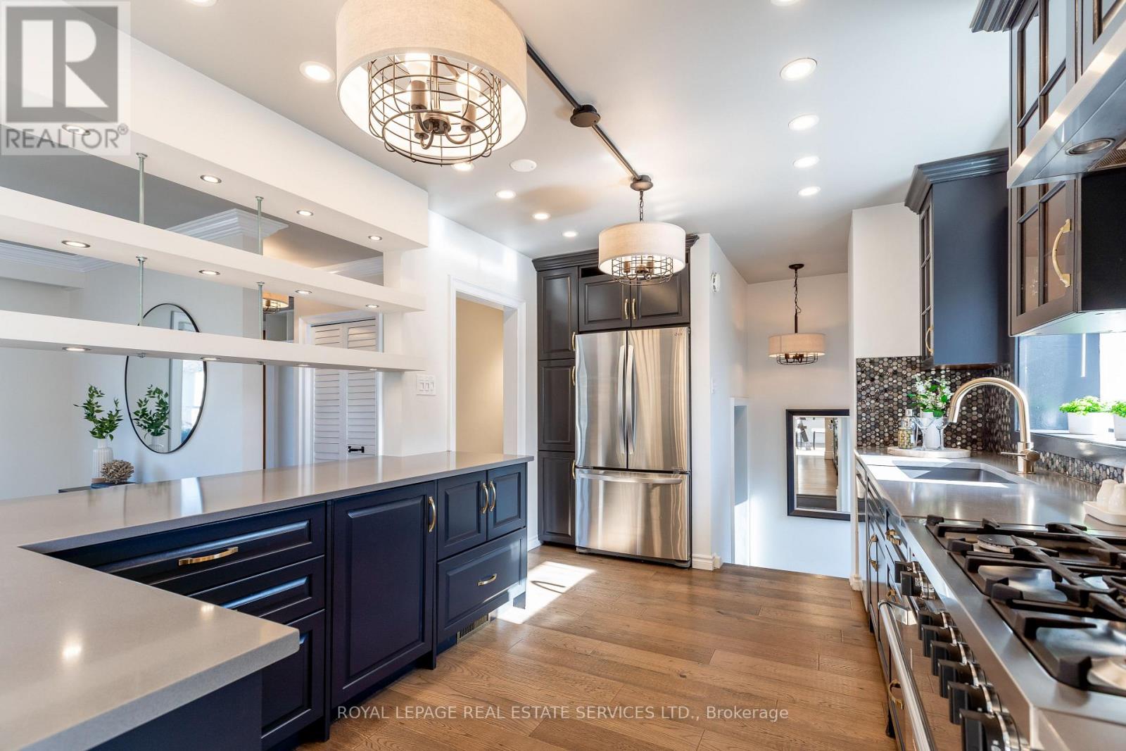 Beautifully updated bungalow on a premium 60 ft lot in the highly sought-after Lakeview community. Thoughtfully designed open-concept main floor offers excellent flow for both everyday living and entertaining. The renovated kitchen features quartz countertops and stainless steel appliances including a Bertazzoni gas range. Hardwood floors run throughout the main level, creating a warm and cohesive living space. The bright dining area walks out to a private backyard deck with a covered pergola, perfect for outdoor dining and summer gatherings. Three well-proportioned bedrooms on the main level provide comfortable family living. Heated tile floors at the front entrance and in both bathrooms add everyday comfort. The finished lower level expands the living space with a spacious recreation room featuring hardwood floors, an additional room ideal for guests or extended family, a spa-inspired bathroom with freestanding soaker tub, glass shower, subway tile and custom floating wood shelves, and a dedicated office area. Built-in garage with 240V plug suitable for EV charging, plus additional driveway parking and ample storage. Ideally located minutes to Sherway Gardens, GO Transit, major highways, parks, recreation centres and highly regarded schools, and close to the Lakeview waterfront and the exciting Lakeview Village redevelopment. (id:64974)