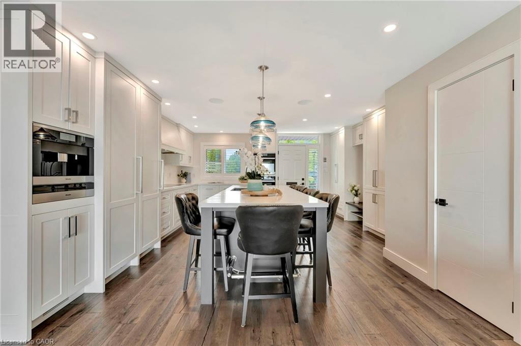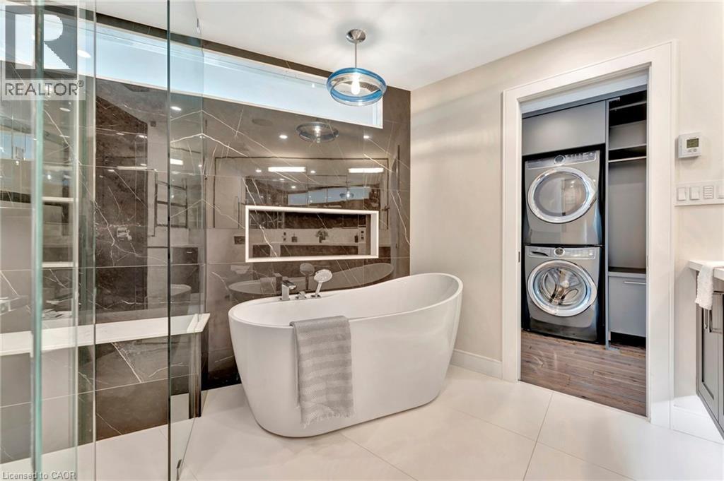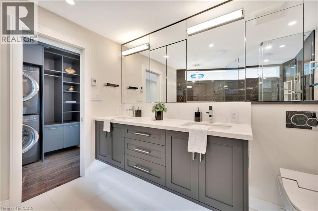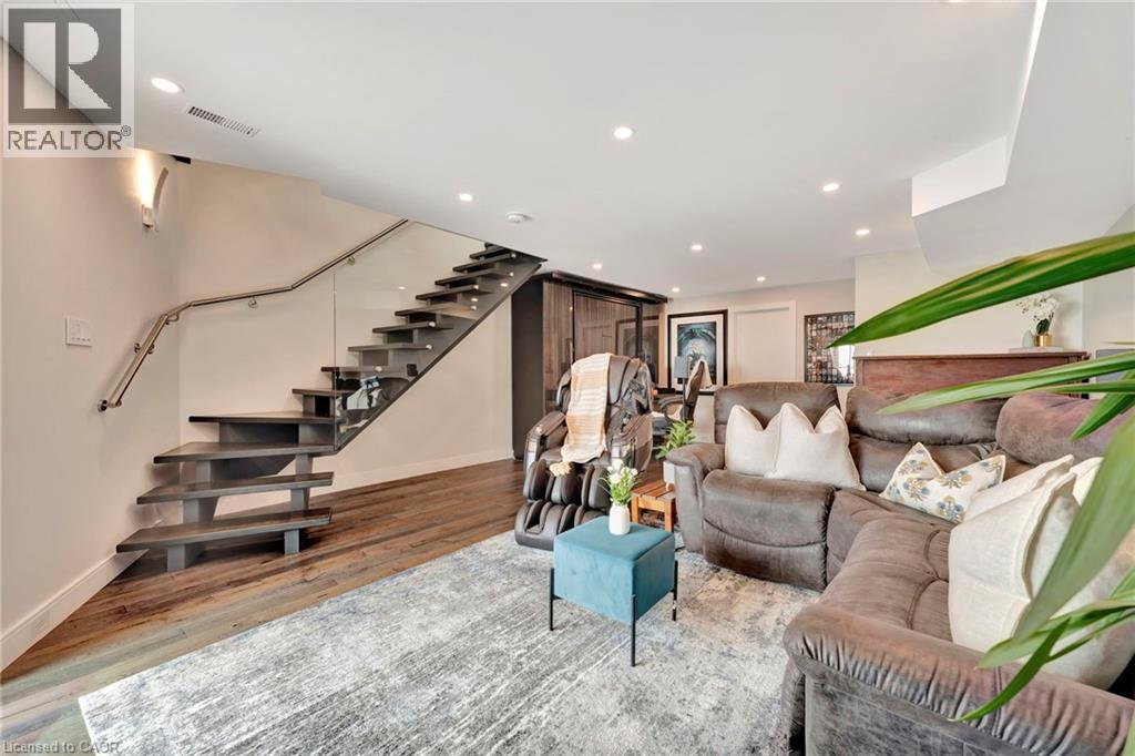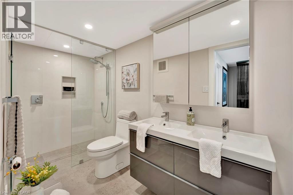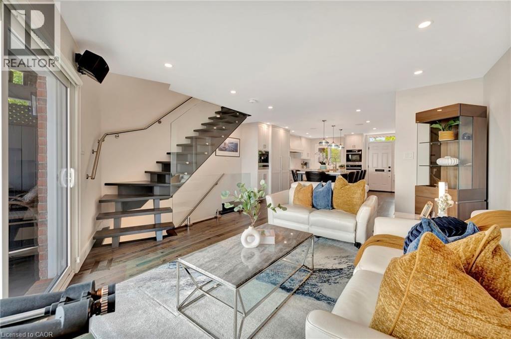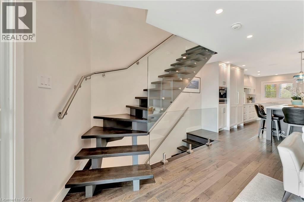 Welcome to the ultimate lakefront lifestyle. This fully renovated 3-level townhouse hass unobstructed, panoramic views of Lake Ontario so close to the water, you can practically dip your toes in. Located just 600 metres from downtown Burlington, this is a rare blend of tranquility and convenience. This 3-level townhouse (1,600 plus SF) has 1 bedrooms (potential for 2nd if you converted large walk-in closet back into a bedroom), 3 bathrooms (2 full, 1 powder) and 4 separate patio/terraces (huge 400 SF lower terrace at the water's edge). In 2020 this unit was completely gutted to the studs and rebuilt by the renowned Bespoke Home Solutions with a total renovation budget exceeding $500K . The gourmet kitchen has been masterfully crafted with designer finishes including: Insinkerator food waste disposal, hot water tank/dispenser, Porter & Charles warming drawer, Built in Miele Appliances (including a $7K plumbed in Coffee Machine), microwave/convection oven, Combi Steam Oven, Dacor Fridge & Freezer and Gravelle custom cabinetry throughout. The spacious primary suite is a true retreat, featuring a spa-inspired ensuite with heated floors, a two-person soaker tub, and a private balcony with stunning sunrise views over the lake. The second bedroom has been converted into a designer walk-in closet with custom cabinetry and a centre island (easily reverted to a bedroom if desired). Lower level family room has a full bathroom, ample storage and ability to have a guest suite with use of a murphy bed. Backwater valve in basement. Home is equipped with Sonos built in ceiling speakers with hooked up amplifiers and speaker selector options. Large 400 SF back terrace is fashioned with a BBQ gas line and has a hook up for a Hot Tub. (id:64974)
