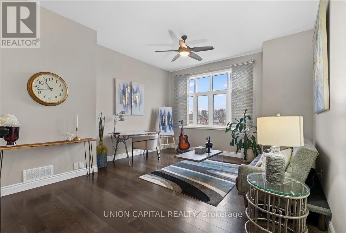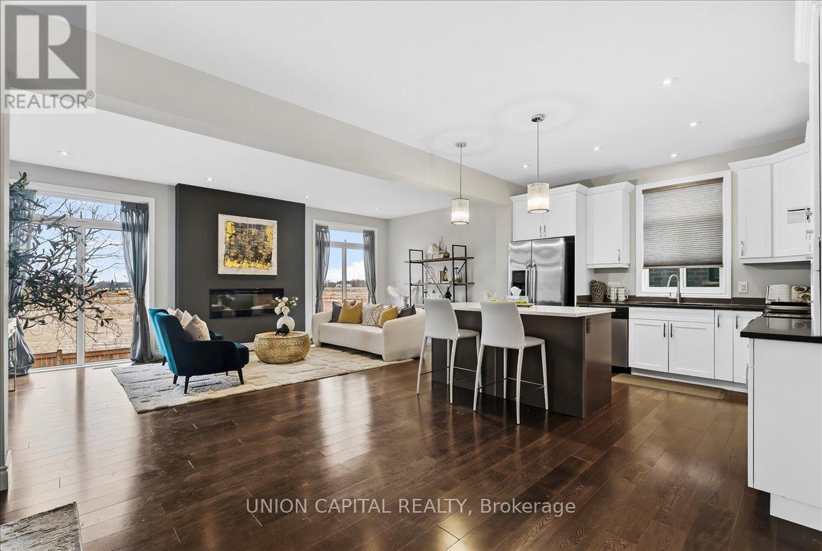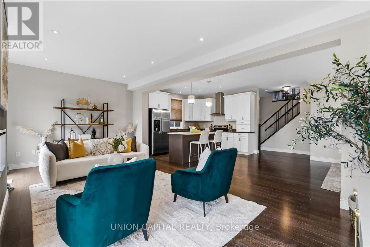 Built by Patrick Hazzard Custom Homes, this beautifully finished 2-storey home with a walkout basement is in Foxfield, one of North London's most desirable family communities. A bright, open concept main floor features hardwood throughout, a spacious great room with a fireplace, and a chef-inspired kitchen with white and black cabinetry, quartz countertops, crown molding, a chimney-style range hood, and a large island designed for entertaining. The dining area leads to a private raised deck that connects to a lower deck and backyard, creating seamless indoor outdoor living across multiple levels. Upstairs offers three generous bedrooms, a versatile bonus family room, second-floor laundry, and a primary suite with walk in closet and an ensuite with double sinks and glass tiled shower. The fully finished walkout basement adds valuable living space with direct backyard access, ideal for a rec room, home office, or extended family. Quartz counters throughout, ceramic in all wet areas, and solid wood stairs with metal spindles highlight the high level of craftsmanship. Situated minutes from top-rated schools, parks, walking trails, Masonville Mall, Western University, University Hospital, and quick access to Highway 402, this move-in-ready home delivers space, function, and location for today's growing family and is a must-see in Foxfield. (id:64974)