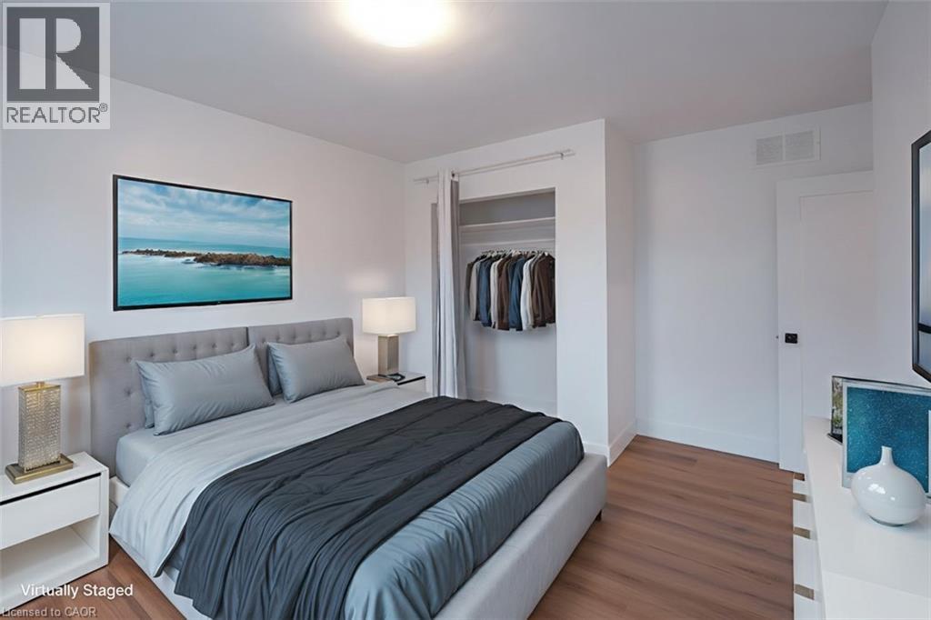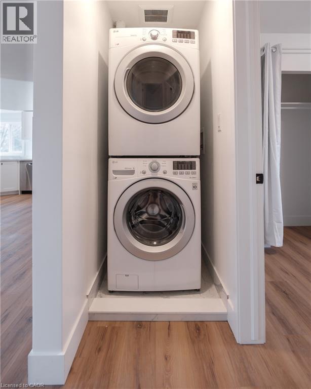 Beautiful +/- 1,100 sqft upper floor 3-bedroom, 1 bathroom apartment in desirable Burlington location. Fully renovated with modern finishes, updated flooring, fresh paint, and a bright, functional layout throughout. Kitchen features quartz countertops and modern appliances, including fridge, stove, dishwasher, and microwave. In-suite laundry. Separate A/C and soundproofed construction for added comfort and privacy. Additional fees for two tandem parking spaces and storage shed. Partial outdoor space (~160 sq ft, accessible via rear stairs to be built Spring 2026). Conveniently located close to GO Transit and bus route. (id:64974)