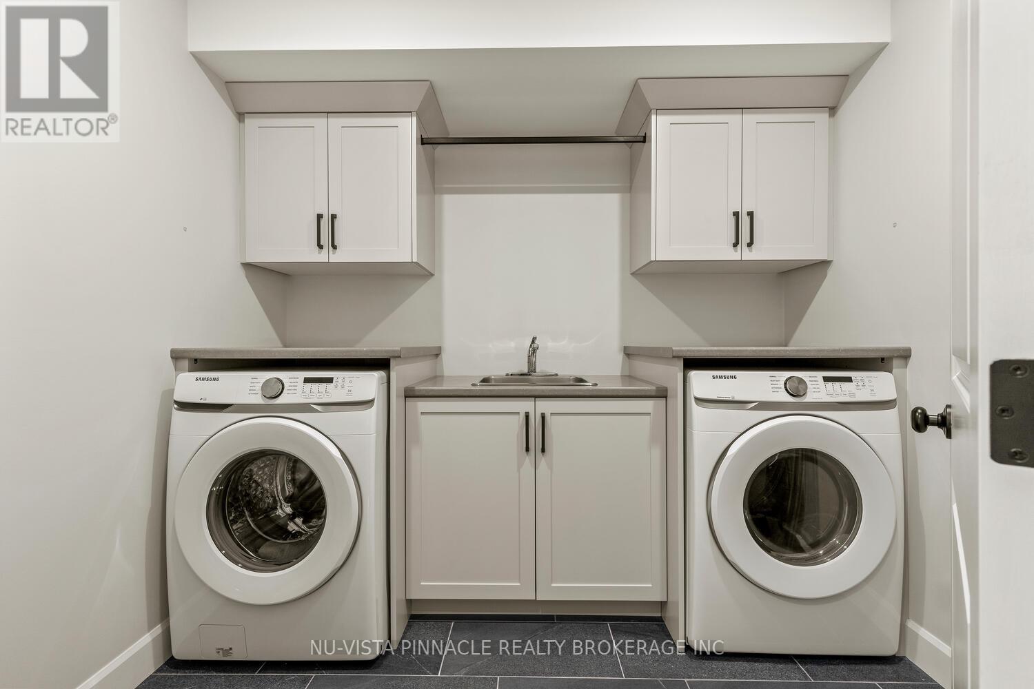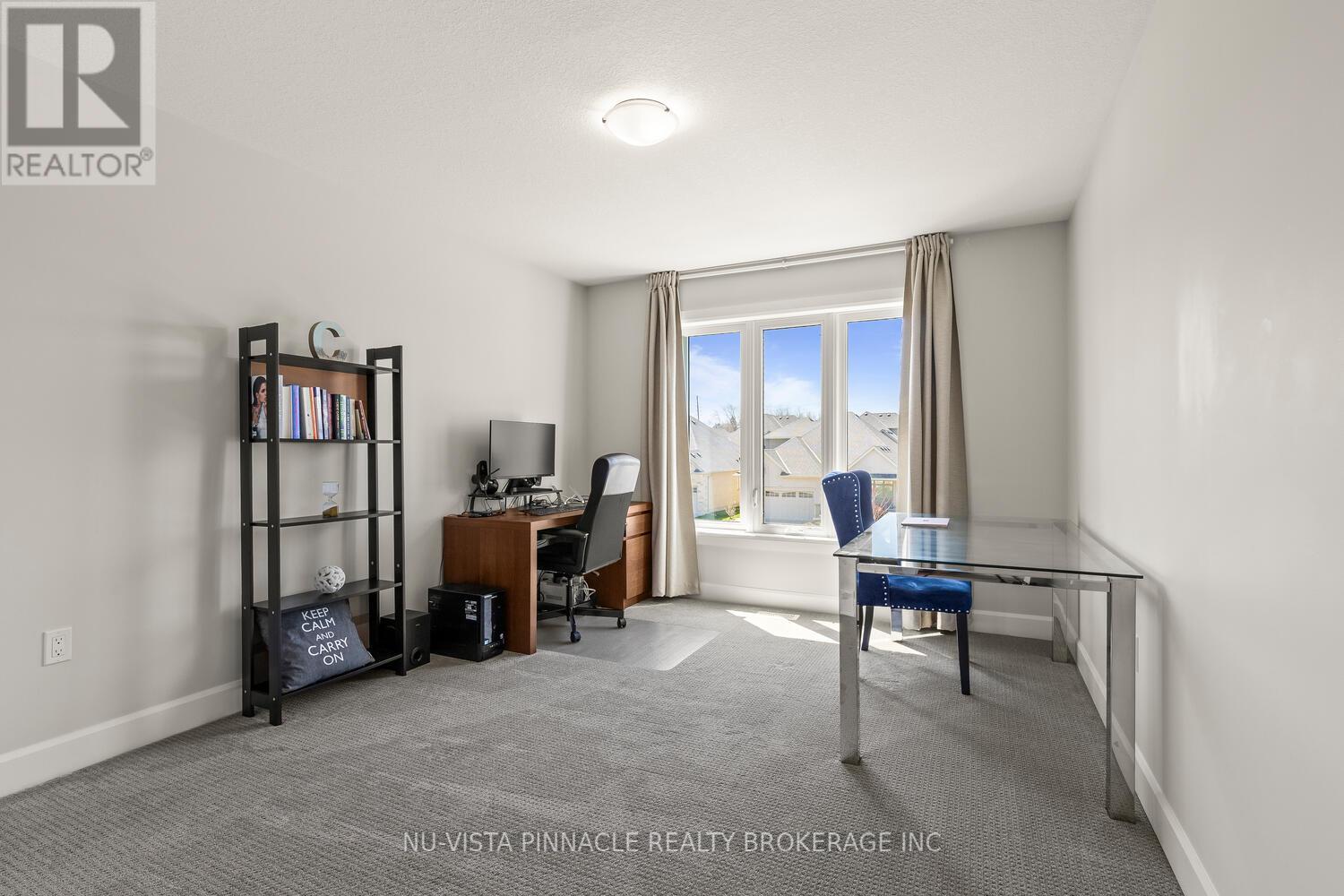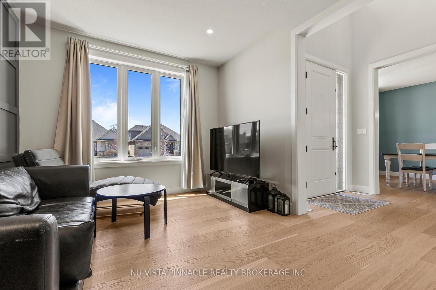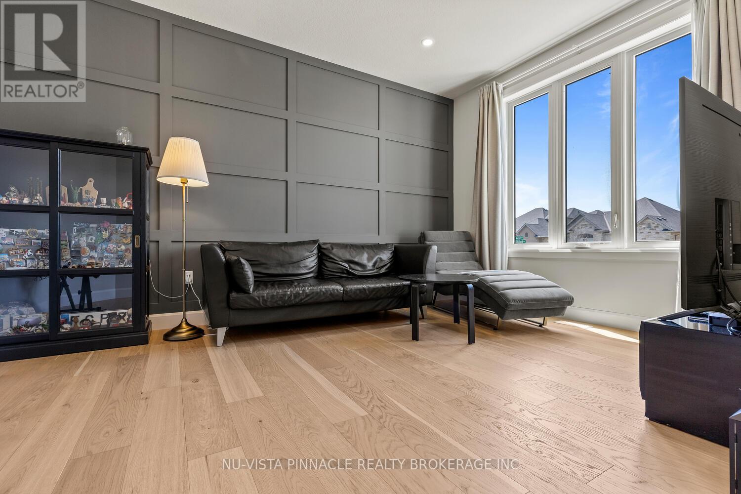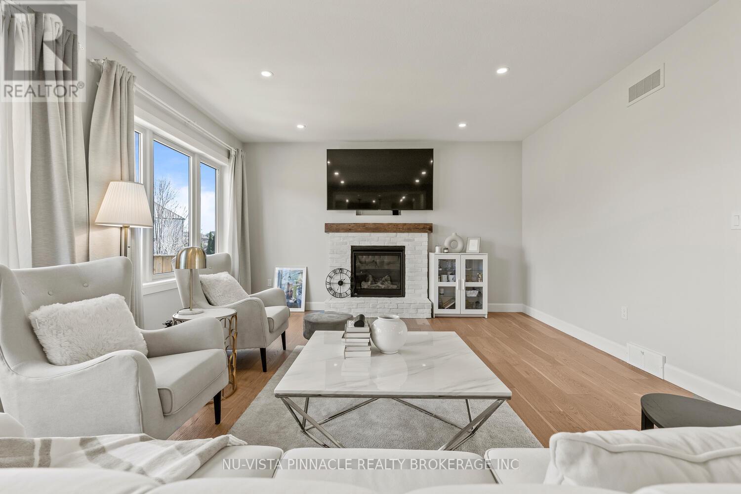 Prestigious Sunningdale West Wasko built home with over 3,300 sqft of immaculate living space with 9 foot ceilings. Meticulously crafted from the covered front porch, oversized front door, inviting open floor plan, engineered hardwood with extra large widows giving plenty of natural light. Office to the side for the executive with a unique accent wall. This home boasts the dream kitchen with extra tall cabinets to the ceiling, Silestone Quartz counter island 53"x76", crown moulding, back splash to the ceiling, high end appliances and a large walk in pantry. The dining room has a built in bar with a wine cooler for entertaining and complements with the family room with a centre point fireplace. The second floor has 4 bedrooms. Master bedroom with a walk in closet and a 5 pc ensuite, stand alone tub, custom made glass shower, and quartz vanity with dual sinks. Second large bedroom has a 3 pc ensuite. There are two more sizeable bedrooms. A 5 pc third bathroom on the second floor with quartz top. This home has the laundry on the second floor the perfect blend of comfort and functionality with quartz top and plenty of storage. Engineered hardwood on the stairs and the second floor hallway. Mudroom with a built in bench with more storage space. Extra wide hallway 46" from garage to kitchen. Additional 5'x19' of space in the garage for the gardening tools. The large enclosed backyard with oversized deck. Come and see the home to experience elegance and sophistication in every corner. Great home with walking distance to Sunningdale Golf and Country Club and a short distance to the beautiful Medway Valley Heritage Forest trails. (id:64974)