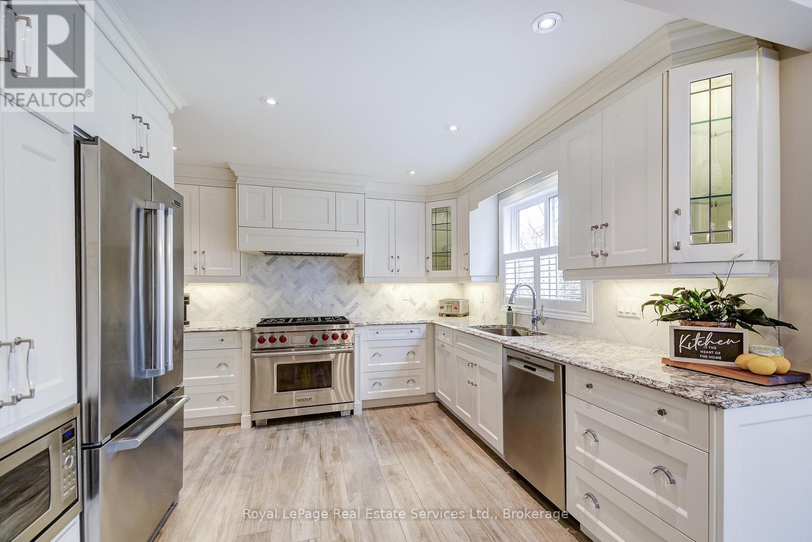 Welcome to 2139 Bray's Lane in the Glen Abbey area of N/W Oakville. The Chamberlain by Mattamy homes, a sought after model of approx 3160 Sq Ft. A winding walkway leads to the custom double front doors and into the roomy Foyer. To the left is the Formal Living Room with electric fireplace and a bay window. The separate Dining Room is large enough for a full dining suite.The eat-in Kitchen has been completely renovated with high end appliances including a Wolf six (6) burner stove, custom backsplash, porcelain tile flooring and upgraded fixtures and cabinets. To the right of the Foyer are the Laundry Room, Powder Room and convenient Den or Office. There is a wood burning fireplace , large bright window and wainscotting in the main floor Family Room. Four Bedrooms on second floor, including a large Primary Bedroom with spacious 5 piece ensuite Bathroom, cosy sitting area and large organized walkin closet. All 4 bathrooms have been completely renovated. There are heated floors in the two upper Bathrooms.Solid oak floors throughout the main and second floors and engineered hardwood in basement. California shutters throughout. Upgraded wood trim throughout the home: six inch baseboards, crown moulding and door frames. Partially finished basement with spacious Recreation Room, exercise room and plenty of storage. New Carrier heat pump and furnace. New garage doors, Pollard windows and entry doors have been installed. Walkout from Kitchen to private fenced garden, two tiered cedar deck of almost 400 sq. ft., mature trees, manicured landscaping, garden shed and inground irrigation system. Close access to schools, parks, trails, QEW and GO Train Station. (id:64974)