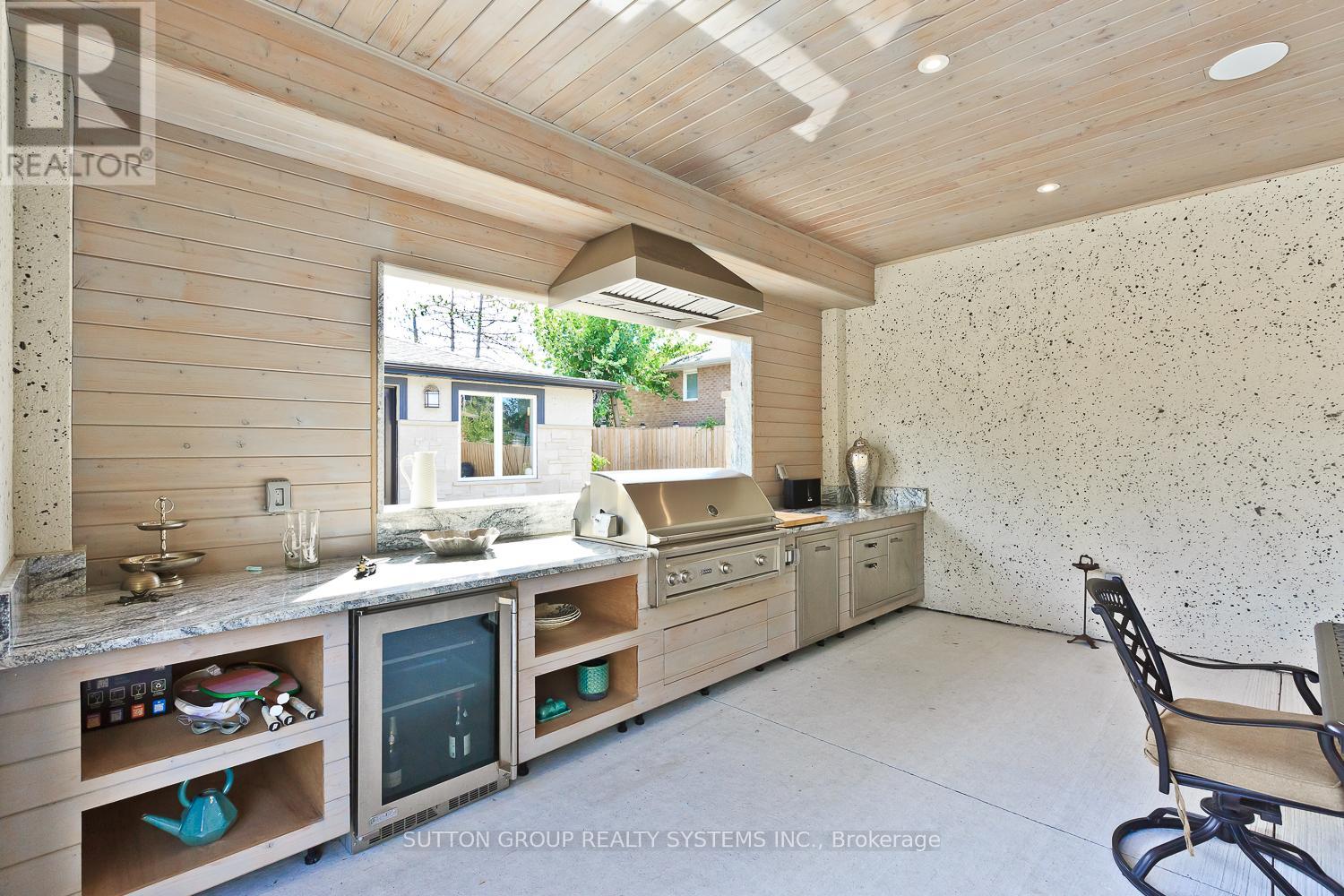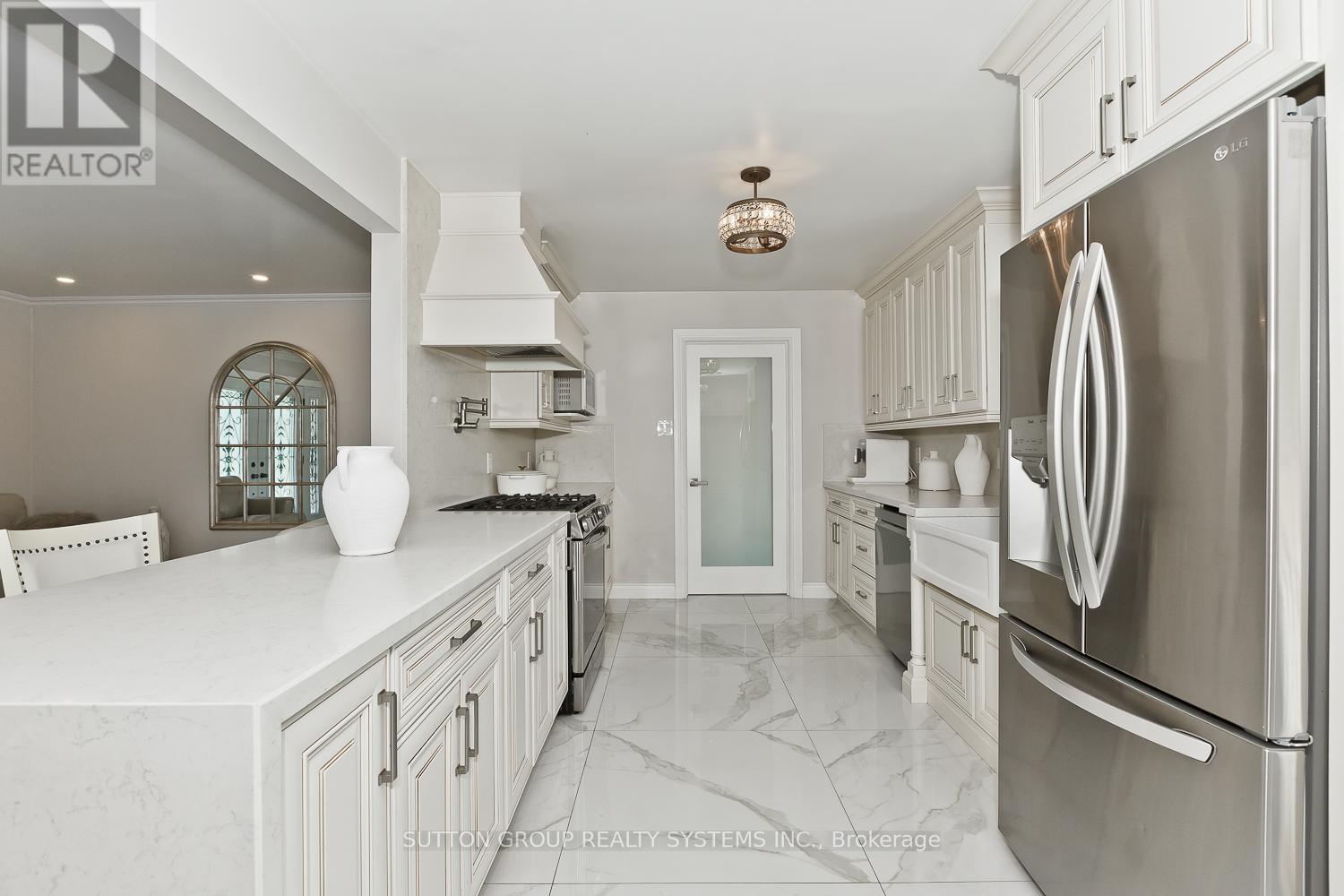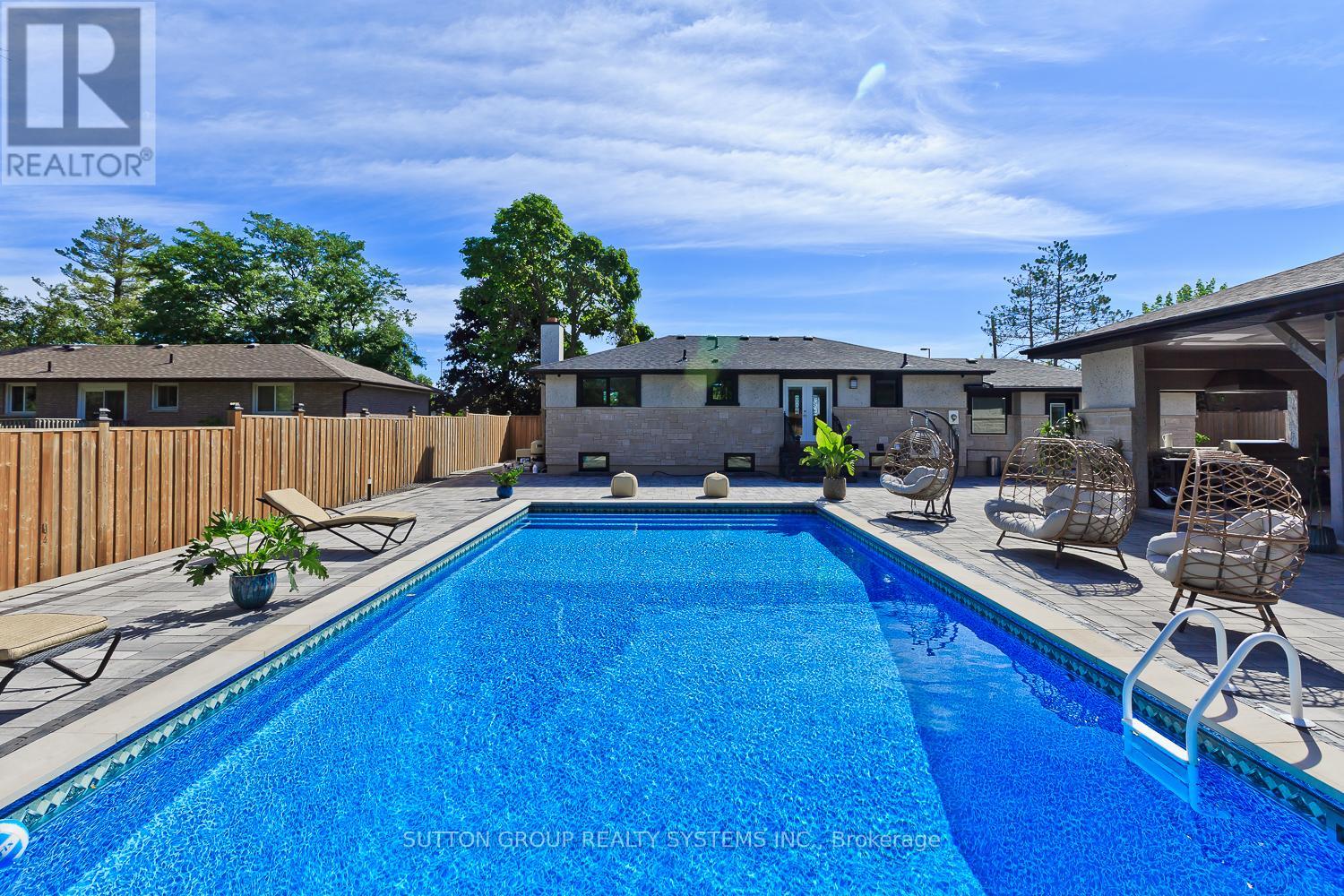 A Storybook Oasis in the Heart of the City. Once in a while, a property comes along that feels less like a house and more like a dream. 214 Ashford Drive, almost 2500 sqft of living space, is exactly that where every detail whispers luxury and family memories are waiting to be made.This fully renovated bungalow showcases over $600,000 in upgrades. Sunlight streams through new windows and doors, illuminating Italian porcelain, wide-plank hardwood, and a custom wood kitchen with quartz counters and premium appliances. Two main-floor bedrooms feature private ensuites, plus a powder room for guests. A separate entrance leads to a stunning in-law suite with two bedrooms, luxury bath, and a full second kitchen perfect for extended family or rental income.Step outside to a 100x150 ft resort-style lot. At its center, a 40 x 20 massive pool with 8-foot deep end and professional equipment sparkles under the sun. Beside it, a 600+ sq. ft. pavilion boasts appliances, a Bose sound system, and a 75 outdoor TV ideal for lazy afternoons or unforgettable gatherings.The grounds impress with a 7,000 sq. ft. interlock driveway for 8+ cars, a 25 x 16 storage building, 20 x 16 heated/insulated shed, lush landscaping, sprinkler system, and a secure fence ensuring privacy. Every upgrade has been thoughtfully added roof, soffits, limestone veneer, Lennox furnace, A/C, tankless water heater, central vacuum, and more offering comfort and peace of mind.Tucked in South East Barrie, you're minutes from schools, parks, shopping, the library, and the GO Train convenience meets community in a family-friendly setting.More than a home, this is a private resort, family retreat, and investment opportunity in one. Why drive to a cottage when you can live it daily? 214 Ashford Drive isn't just a place to live it's where you dream, entertain, and belong. Your oasis is waiting... (id:64974)