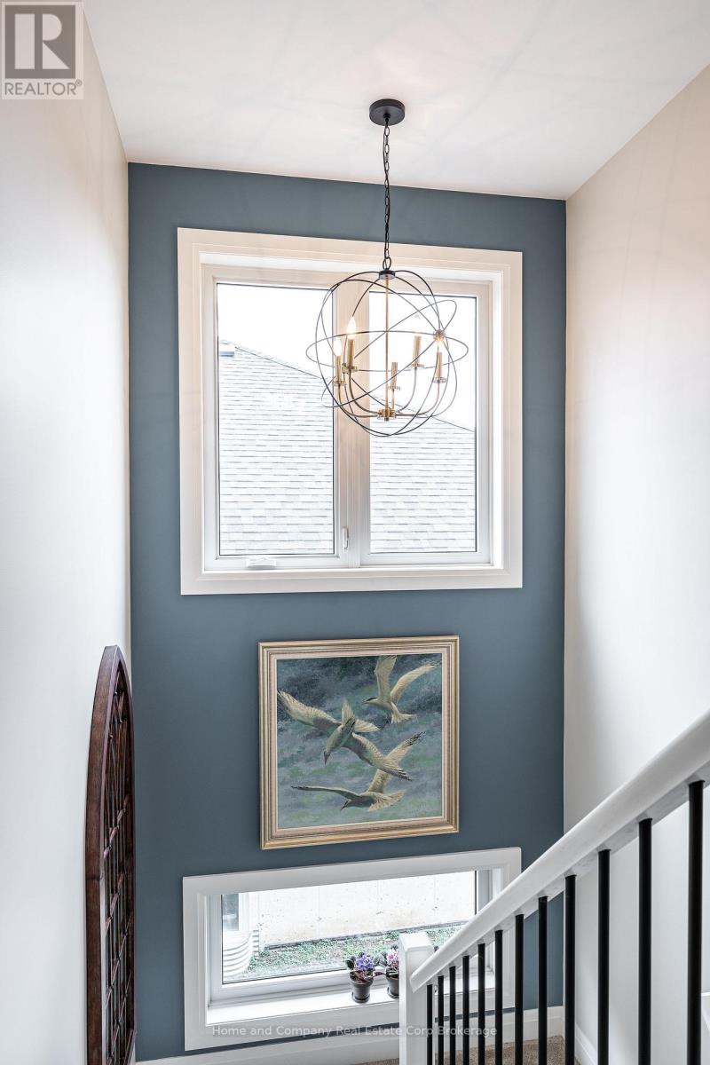 Welcome to 214 St. Maria St, in charming St. Marys. This stunning semi-detached bungaloft is located in walking distance to town centre amenities for shopping and dining, trails and the beautiful Thames River. The timeless craftsman style exterior of this home leads to a welcoming modern and open floor plan, with everything you need on the main floor. You are greeted by a lovely covered porch and spacious foyer. The kitchen showcases an abundance of storage and counter space, with a quartz top sit up island and walk-in pantry. The dining room is versatile and leads to the generous living room with vaulted ceiling and incredible views of the backyard. There are 2 wonderful options for primary suites, with a large main floor bedroom with walk-in closet, leading to a semi ensuite 4-piece bathroom, with double vanities. Head on up to your loft where you will find a sitting area, perfect for office or hobbies and the second primary bedroom option with 4-piece ensuite. The basement is partially finished, with an additional 3-piece bathroom, bedroom, family room with lots of possibilities as well as plentiful storage. Outside, you will find a private deck, fully fenced backyard and incredible views of the greenspace and pond. You don't want to miss the opportunity to call this one home. For more information or to set up a private viewing, contact your favourite REALTOR today. (id:64974)