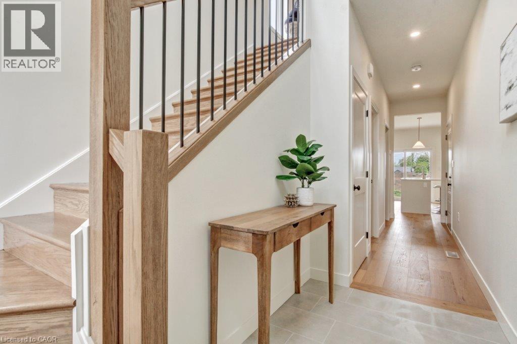 This brand-new 2-storey townhome offers modern design in a welcoming community. With 1,548 sq. ft., the main floor features a bright open concept kitchen, dining, and living area with a large island, custom cabinetry, and new stainless steel appliances. A powder room, walk-in closet/pantry, and access to the covered porch and private backyard complete the level. Upstairs you’ll find a primary suite with 3-piece ensuite and walk-in closet, two more generous bedrooms, a full 4-piece bath, and a laundry room with washer and dryer. This model is carpet free with hardwood floor throughout. An attached garage, paved driveway, and Tarion warranty round out this thoughtfully finished home. First time home buyers can now qualify for additional HST rebates on new builds. Pictures are of a similar model for illustration purposes only. Taxes not yet assessed. (id:64974)