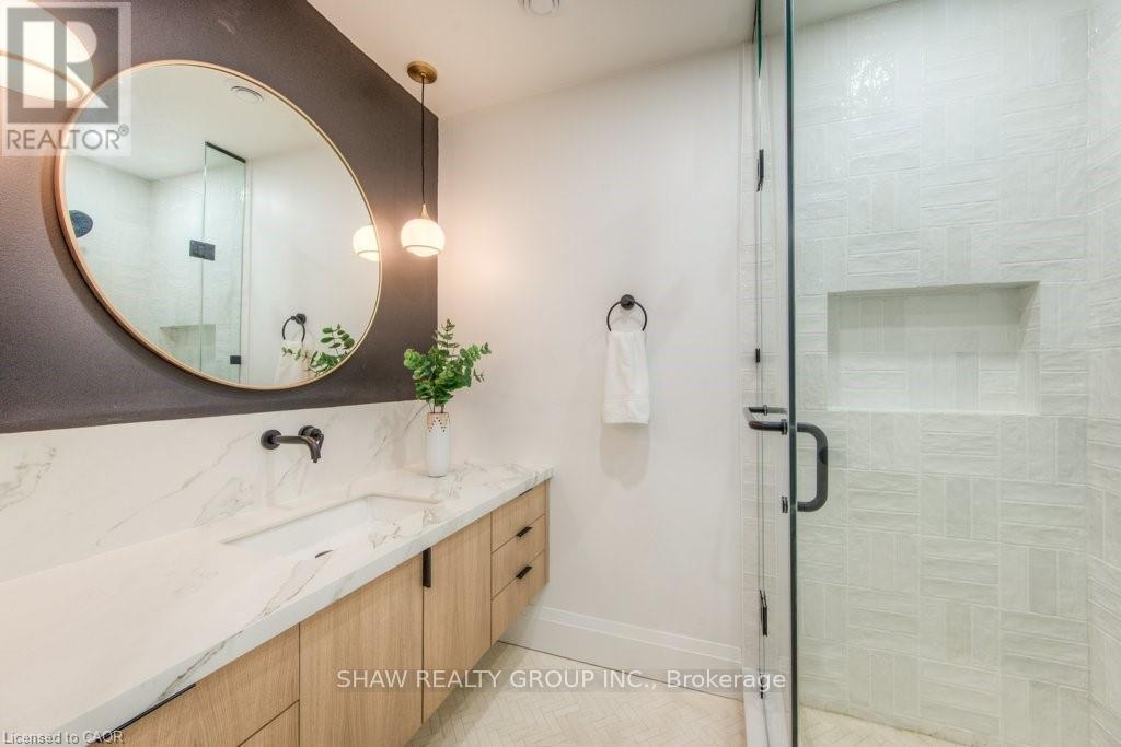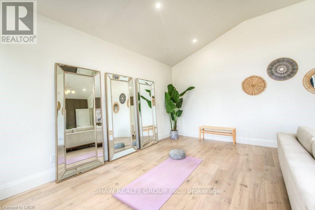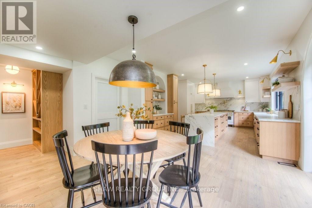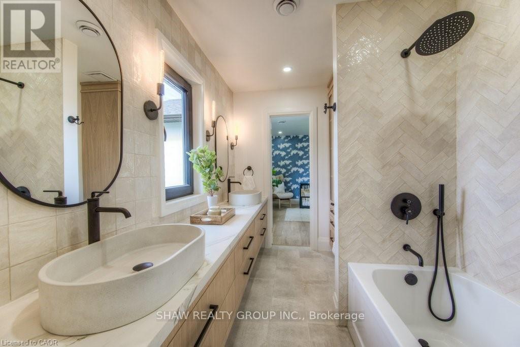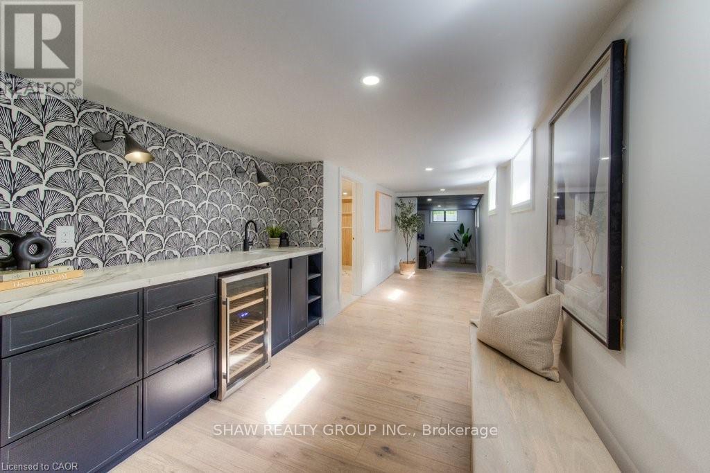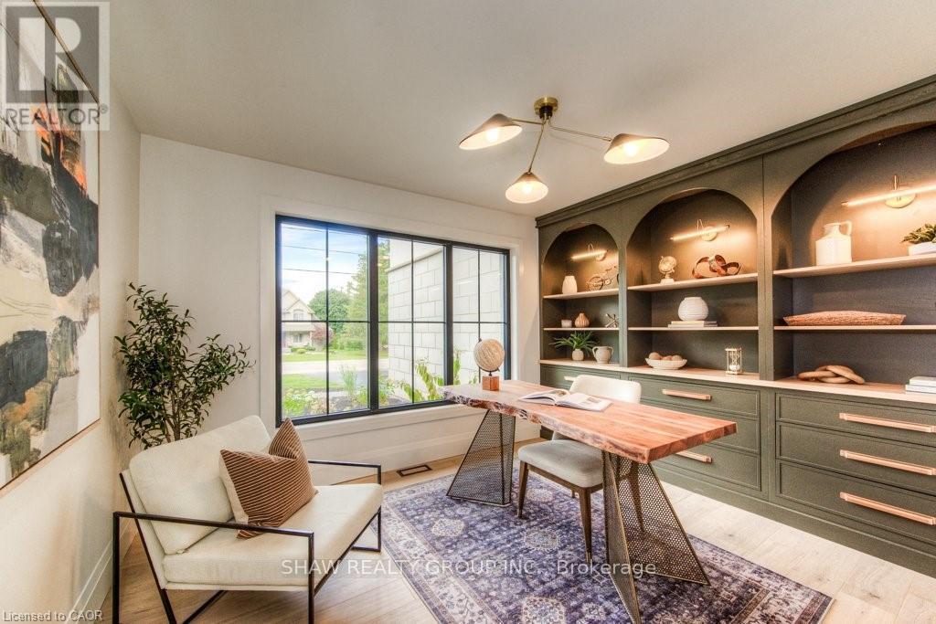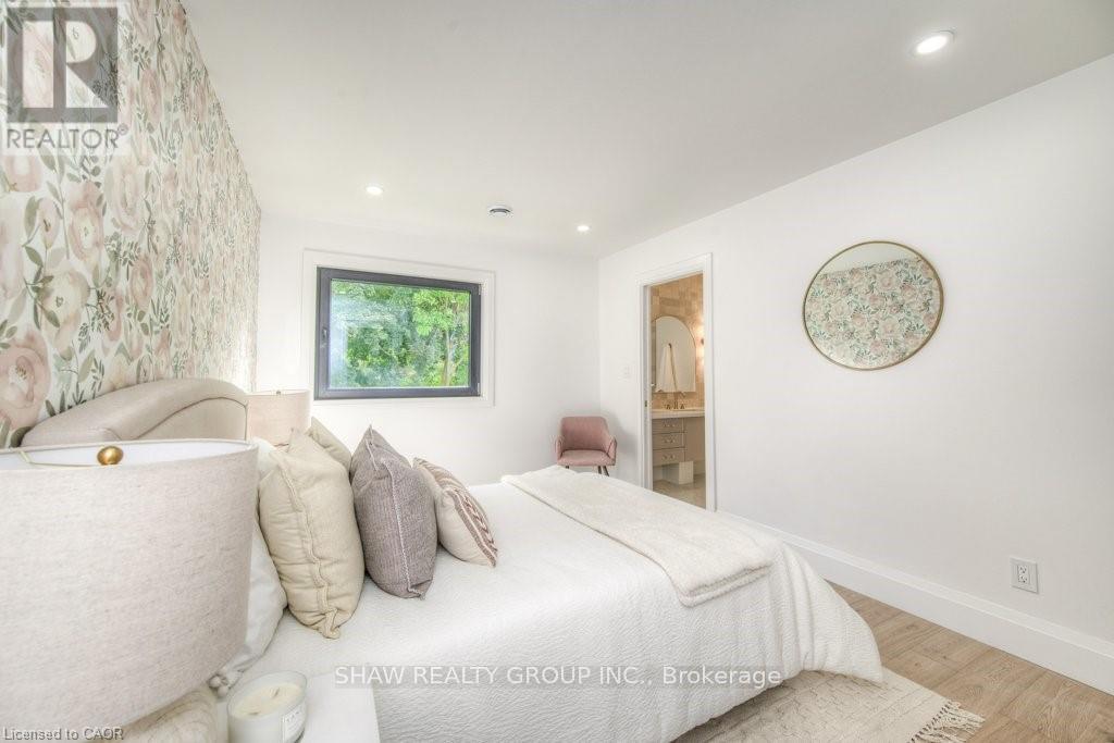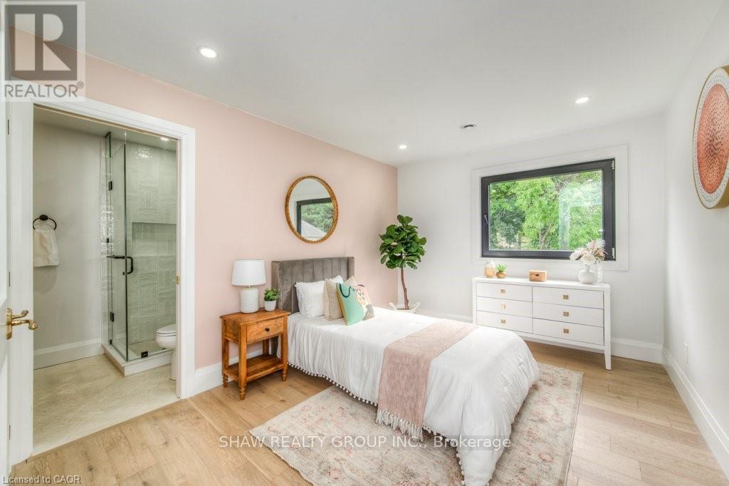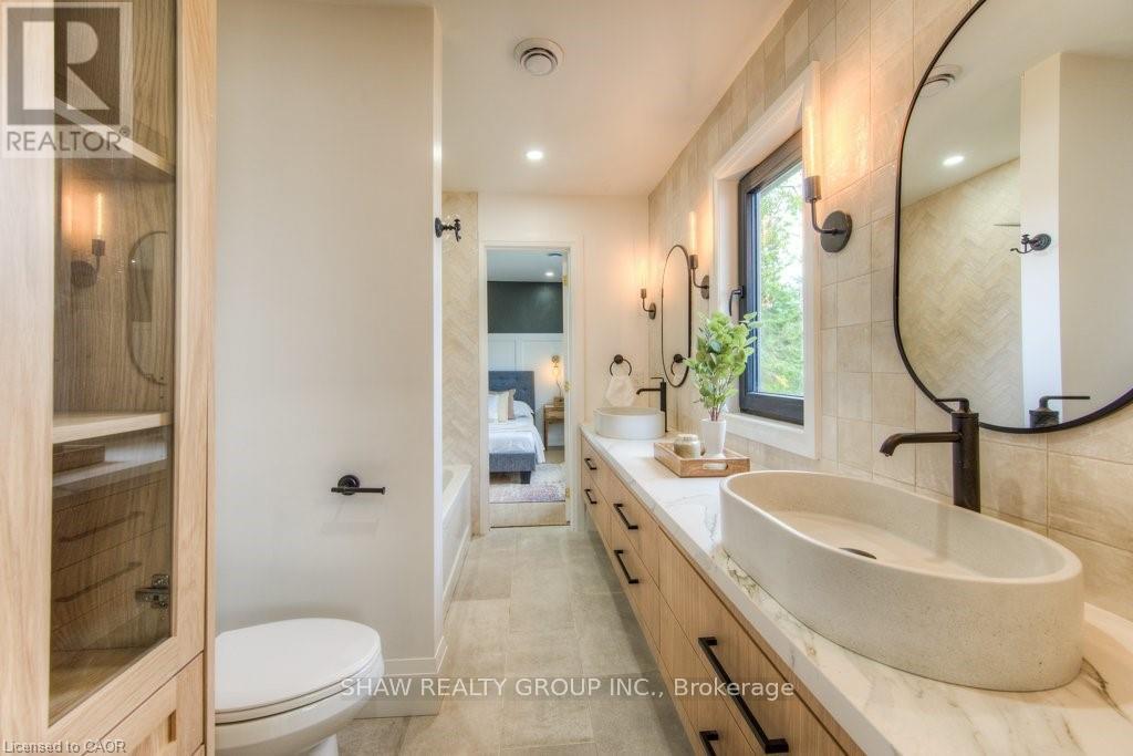 Welcome to a newly constructed luxury estate with over 6,500 sq ft of professionally designed space on a rare 107 146 ft private lot, minutes from Kitchener-Waterloo. Built in 2023 and curated by Lush Designs, this architectural residence blends timeless European-inspired design with modern family functionality - delivering a level of craftsmanship and scale rarely available in the region. From the moment you enter, soaring ceilings, expansive sightlines, and oversized triple-glazed European windows create an atmosphere of light, openness, and luxury. The main level is designed for both elegant entertaining and everyday living, featuring a grand open-concept layout anchored by a striking double-sided Roman clay fireplace connecting the living and dining spaces. The chef's kitchen is a showpiece, complete with custom white oak cabinets, a 10-ft double waterfall porcelain island, paneled high-end appliances, walk-in prep pantry, and a designer range - seamlessly blending beauty with performance. Upstairs, the home offers a spacious and thoughtfully designed second level with five large bedrooms, each with ensuite access, a luxurious primary retreat featuring cathedral ceilings, fireplace, spa-like ensuite, and a generous walk-in closet. A bonus flex living area provides space for a family lounge, home gym, or office. The fully finished lower level adds over 1,600 sq ft of additional space, including a media zone, wet bar, guest area, and flexible recreation spaces - ideal for multi-generational living/entertaining. Set on a premium lot with a long private driveway, double garage, and room for outdoor amenities such as a pool or cabana, this property offers a combination of estate-style privacy with unmatched proximity to urban conveniences, minutes from Highway 7/8, shopping, universities, and Waterloo's tech hub. A truly exceptional offering for buyers seeking space, design excellence, and long-term value in one of the region's most desirable locations. (id:64974)