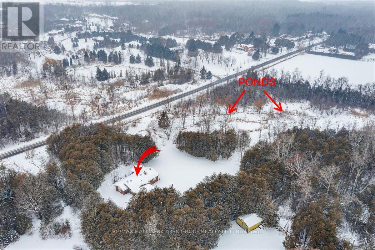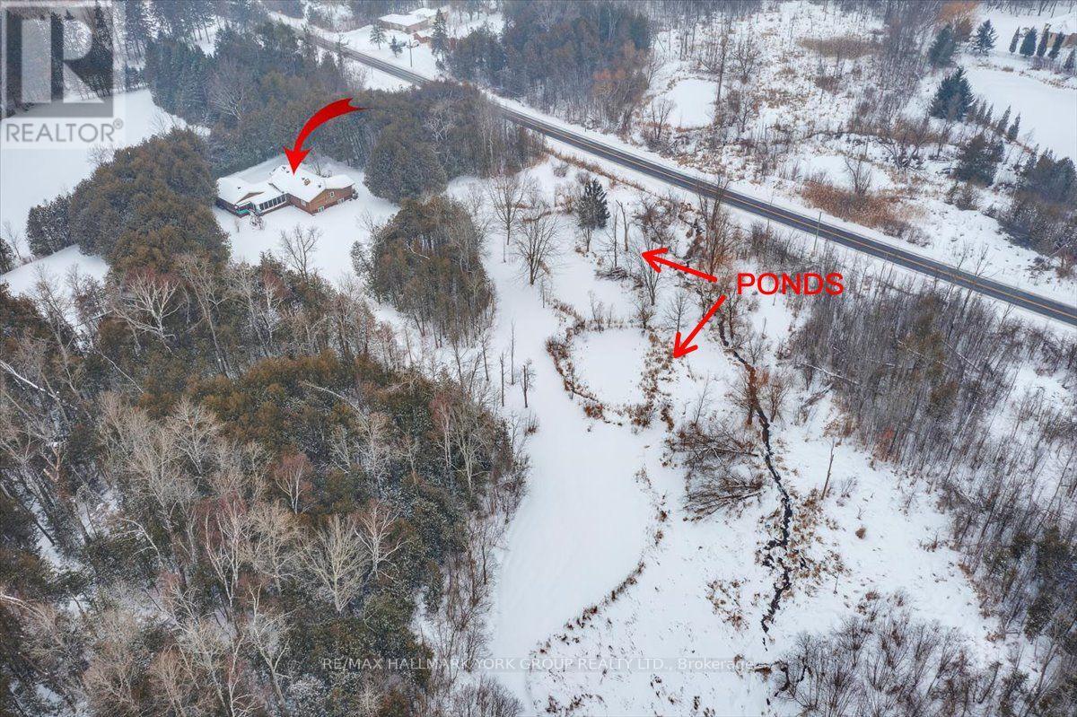 Experience peaceful country living on this exceptional 5.2-acre property offering ultimate privacy, yet conveniently located just minutes to Keswick, Newmarket, and Highway 404. This 4+2 bedroom, 2.5 bath raised bungalow features 1,988 sq. ft. of above-grade living space and multiple walkouts to a covered porch overlooking a beautiful forested setting with two serene ponds. The fully finished and updated lower level boasts large above-grade windows, two additional bedrooms, a spacious family room with a charming brick fireplace, and a rec room with picturesque pond views. Additional highlights include an attached double-car garage with an adjoining utility room, plus a 20' x 30' detached metal shop with concrete floors-ideal for hobbyists, storage, or a home-based workshop. If you've been searching for the perfect blend of privacy, nature, and convenience, this rare country opportunity is not to be missed. Come see it today! (id:64974)
