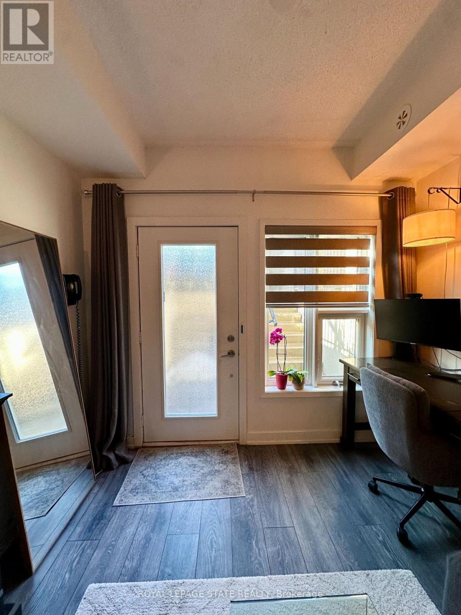 Bright and modern lower-level stacked townhouse located in Burlington's desirable Aldershot neighbourhood. This 1 bedroom, 1 bathroom home features high ceilings, large windows, and an open-concept living and dining area with contemporary finishes throughout. Positioned so it does not face other units, the home offers added privacy compared to many in the complex. The unit includes a functional kitchen, spacious living area, and convenient in-suite washer and dryer. One designated underground parking space is included and is ideally located just steps from the parking entrance for easy access, along with visitor parking for guests. Conveniently located near Aldershot GO Station shopping, parks, and schools, with quick access to Highways 403, QEW, and 407, making it an excellent location for commuters. Available May 1st. (id:64974)
