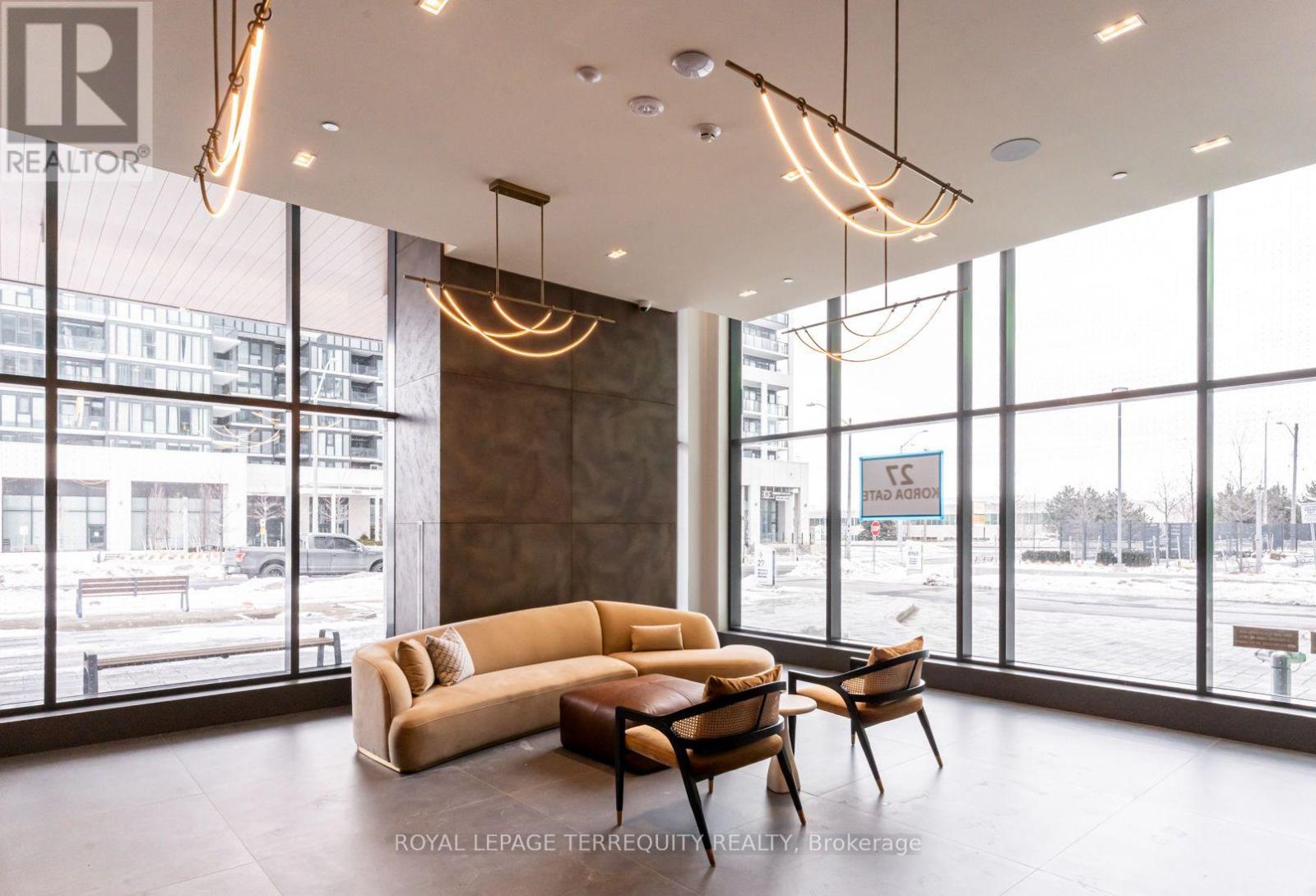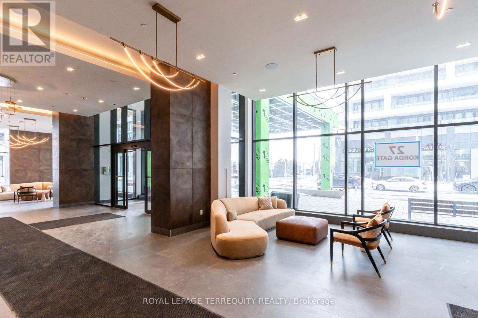 Be the first to live in this brand new, never-lived-in 750 sq ft 1-bedroom + den, 2-bath condo suite at 27 Korda Gate in the heart of Vaughan's vibrant Jane & Rutherford corridor. Thoughtfully designed with a spacious primary bedroom and a versatile den-perfect for a home office or guest space. Two full bathrooms offer added comfort and flexibility, including one with a relaxing soaker tub and the other with a separate shower. Bright open-concept living and dining area with walk-out to a large private terrace. Modern kitchen with seating at the centre island and full-size stainless-steel appliances. Floor-to-ceiling windows and engineered hardwood flooring throughout, with porcelain tile in the foyer and bathrooms. Includes one underground parking space. Minutes to Hwy 400/407/401, Vaughan Mills, restaurants, YRT transit and the Vaughan Metropolitan Centre subway. A refined blend of space, comfort and convenience-book your private viewing today. (id:64974)
