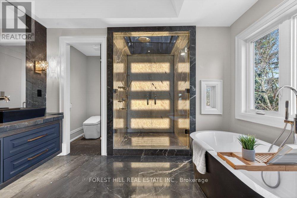 A Home Has Everything You Need! 215 Elmhurst Avenue - An Impeccably Crafted, South-facing C/B Home Offers Total Of 6000 Sqft Luxurious Living Space! Executed With Premium Materials and Artisan Millwork, This Home Delivers Refined Modern Living Across An Intelligently Designed Footprint. A Dramatic 14' Heated Marble Flr Foyer Welcomes You With Warmth and Presence. **Soaring Ceiling Height: 14' Library,10 Main, 9' 2nd Flr, 12'bsmt. The Open-plan Main Level is Bathed in Southern Light, Rich Finishes Marble Surranding Fireplace Transforming Living Spaces Into Cozy Retreats W/meticulous Detailing. **Floor-to-ceiling Backlit Onyx Wine Display-an Arresting, Custom Feature That Instantly Captivates.*gourmet Chef's Kitchen, the Home's Refined Centerpiece: A Stylish Marble Island, Elegant Rarity Calacatta Stone Backsplash( Kitchen & Familyrm Shelf), Fully Bespoke Cabinetry With Integrated Storage, and Top-tier Appliances-designed for Consummate Everyday Function, Effortless, Sophisticated Entertaining. All Designed for Flawless Everyday Function and Effortless, Sophisticated Entertaining.*A Stylish Office/library Featuring High Ceiling and Integrated Bookcases and Heated Marble Flr **2nd Flr Offers a Breathtaking Master Bedroom, Boudoir W/I Closet, a Sumptuous Heated Flr Spa-like7 Pcs Ensuite, Plus Three Additional Bedrooms Include Their Own Ensuite. 2nd Flr Large Laundry.**the Lower Level Offers Versatile Living - Perfect for Recreation, Media, Guest Accommodation or a Gym - Private Outdoor Setting Perfectly Suited to Al-fresco Entertaining.exceptionally Located for Convenience - Close to Transit, Hwy 401, Top-Ranked Private Schools, Parks & Urban Amenities. A Turnkey, High-Calibre Custom Residence for Discerning Buyers. Absolutely A Gem! Don't Miss This Best Deal! (id:64974)