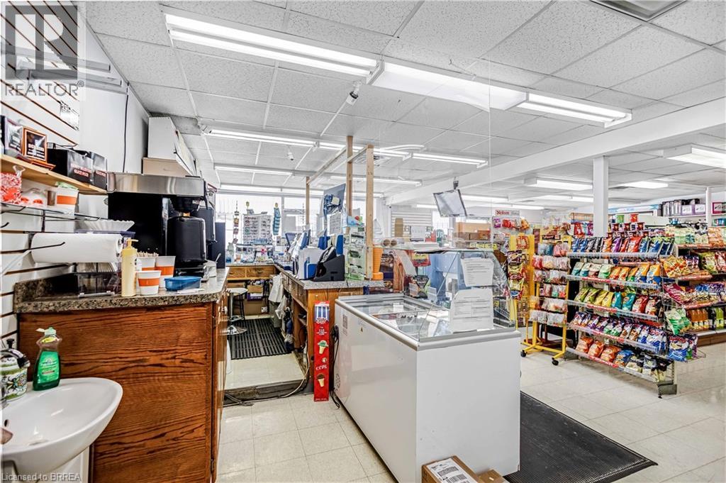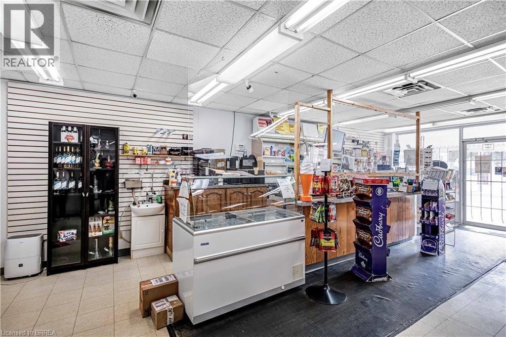 215 Grand River Avenue : Well-established convenience store in Brantford is for sale. Located in a high-traffic residential neighborhood with excellent visibility and steady walk-in customers. Surrounded by fully developed housing communities, condo building, industrial area, This convenience store enjoys strong weekly sales and consistent income from multiple revenue streams. Excellent business with good sales, New long term lease available and huge growth potential. Convenience Store Weekly Sales: Approx. $ 5,800.00 (not including lottery or HST), Tobacco Sales portion: Approx. 14.5%, Other Sales Portion: Approx. 85.5%, LCBO licensed, alcohol sales: about $7,350.00/mth. Lotto Commission: Average approx. $1,200.00/mth - $1,400.00/mth. Rent including TMI & HST: about $2,655.00/m. Seller is the building owner, Lease could be Term: 5+ 5 years. Store Area: about 1600 sq ft. Large storage ar rear of store has great potential to expand and introduce more services like ATM & Bitcoin ATM, U-Haul to increase revenue further. Surrounded by rental apartment new residential growth and featuring rear parking, the location supports both commercial and residential uses. There is also potential for future expansion, including building upward, subject to municipal approvals. Whether you’re looking to launch a business, generate rental income, or develop in a growing area, 215 Grand River Avenue offers outstanding potential and long-term value. Property is also for sale see: MLS#:40808721 (id:64974)