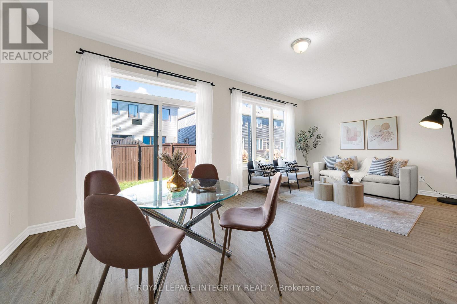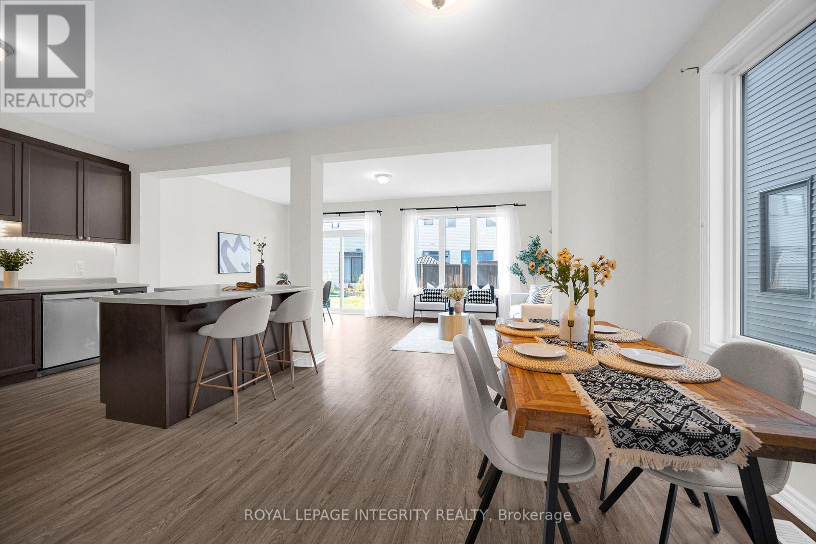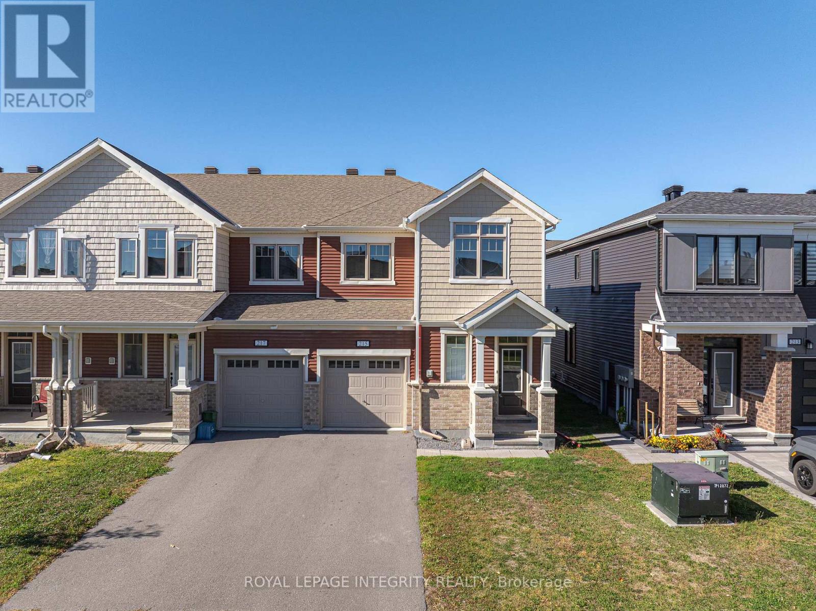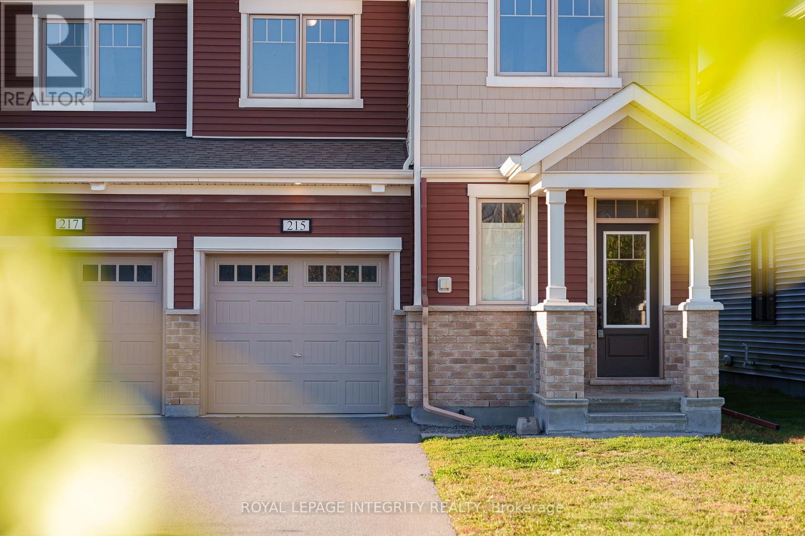 Welcome to the stunning Majestic End model by Mattamy Homes, ideally located in the heart of Half Moon Bay, one of Ottawa's most sought-after family communities. This end-unit townhome combines space, comfort, and modern design, featuring a layout that maximizes natural light and functionality.The main floor showcases an open-concept design with 9-foot ceilings, a foyer closet, convenient stop/drop built-in shelving, and a powder room adjacent to the inside entry. The kitchen offers abundant cabinet space, a breakfast bar, and an eat-in area, while the spacious living and dining rooms provide the perfect setting for relaxation or entertaining guests. Upstairs, the primary bedroom features a walk-in closet and a 4 piece ensuite, while the two additional bedrooms are generously sized and share a full bath and laundry room on the same floor.What truly sets this home apart is its location: directly across from a beautiful park, providing serene views, and just a 5-minute drive to the soon-to-open Food Basics, Minto Recreation Complex, and Half Moon Bay Public School putting everything your family needs within easy reach. With its thoughtful layout, high-quality finishes, and access to excellent community amenities, 215 Merak Way is more than just a home its a lifestyle, perfect for growing families or anyone seeking a vibrant, welcoming neighborhood. (id:64974)