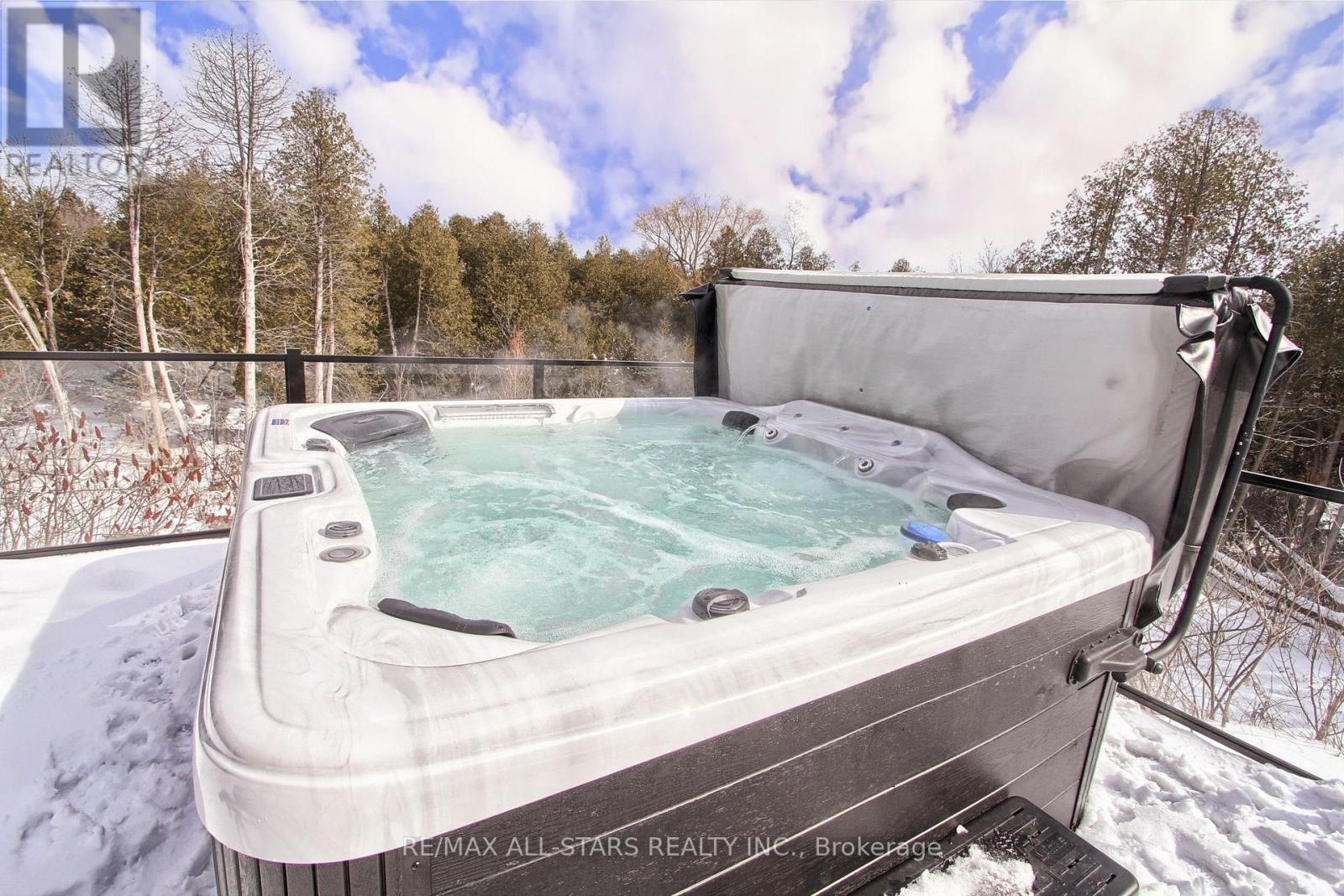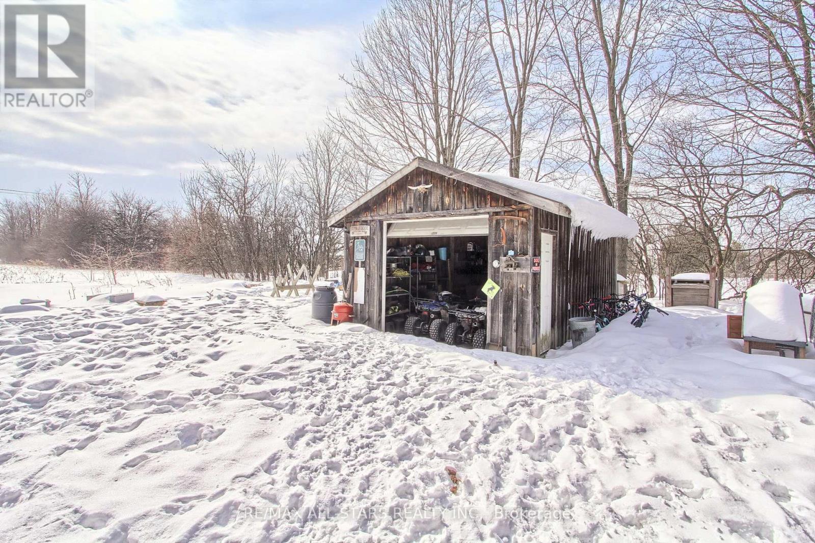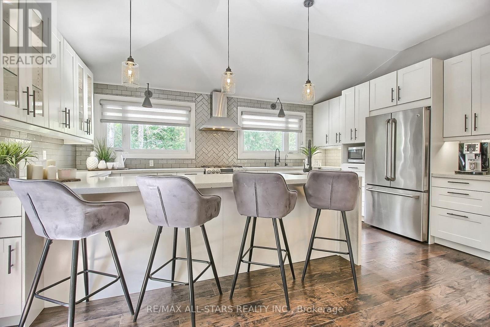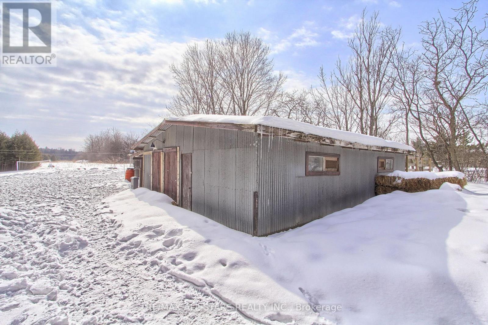 Drive thru your gated tree lined driveway to 10 acres of natures beauty- Generous sized 3 bedroom bungalow with a walk out basement. Beautifully designed with an open concept layout and multiple walkouts to a wrap around deck. This north facing home features custom barn door enclosed closets, hardwood thru out, custom window treatments, electric light fixtures, fancified washrooms with a floating vanity and hexagon tile work, live edge b/in cabinets and wood and stone feature walls. Breathtaking views from every window. Renovated kitchen with quartz countertops, seating for 4 at the breakfast bar and overlooking the dining room. Ideal for entertaining. Double sided fireplace!!! Fishing worthy creek on the east side and forest walking trails..Barn with water and electricity is ideal to house horses, donkeys, goats, chickens and sheep. Work shop is the ideal man/handyman cave. New Detached triple car garage 35 x 37 feet with car port.All this only 4 minutes from town, 407, Go Station and amenities. New WIndows, All new electricity running to the barn. (id:64974)
