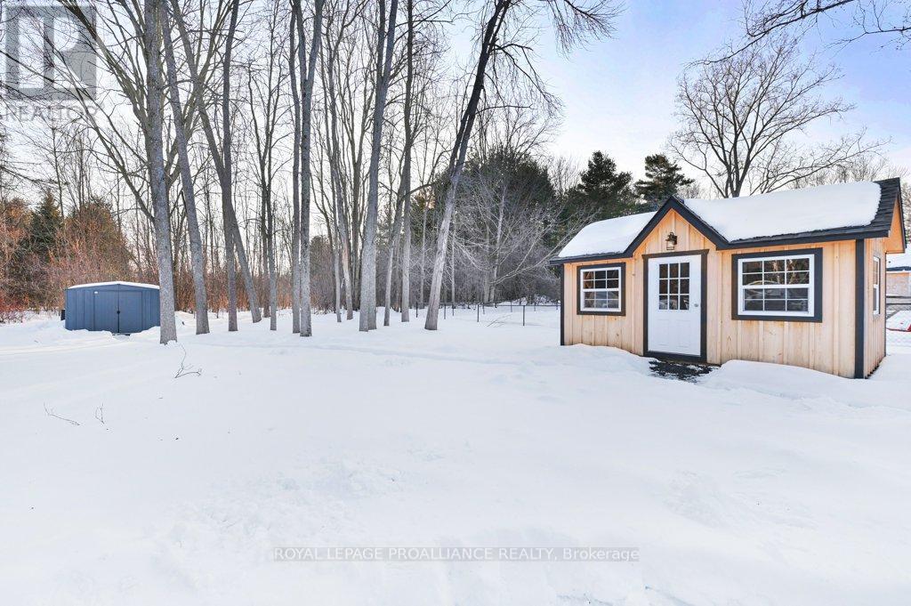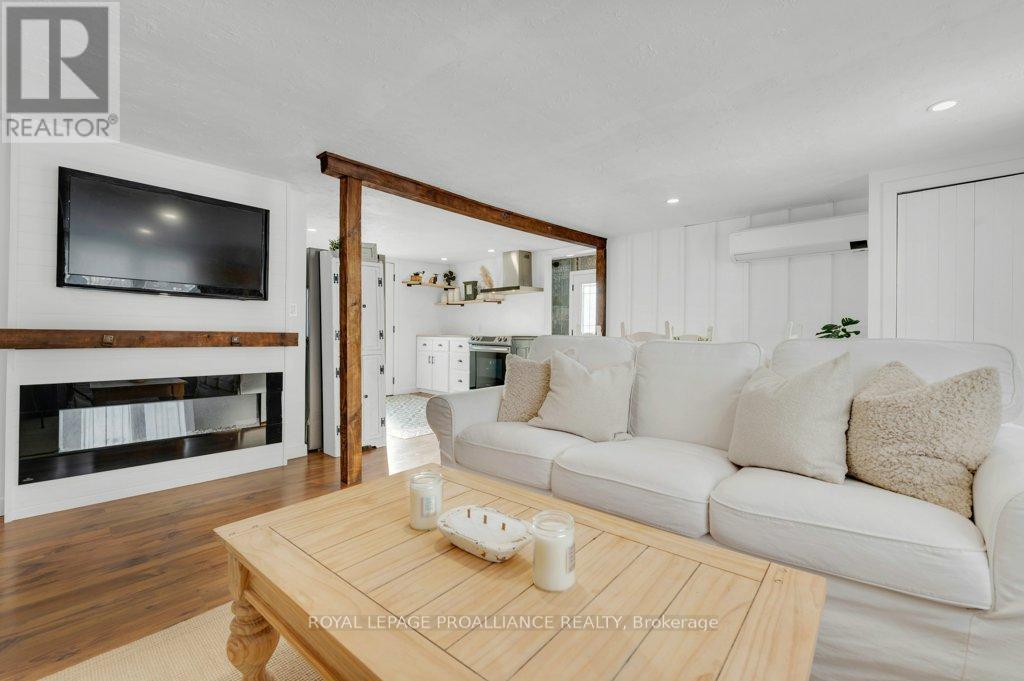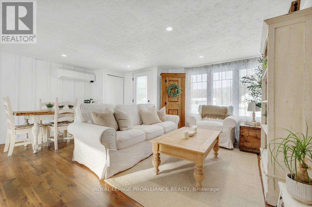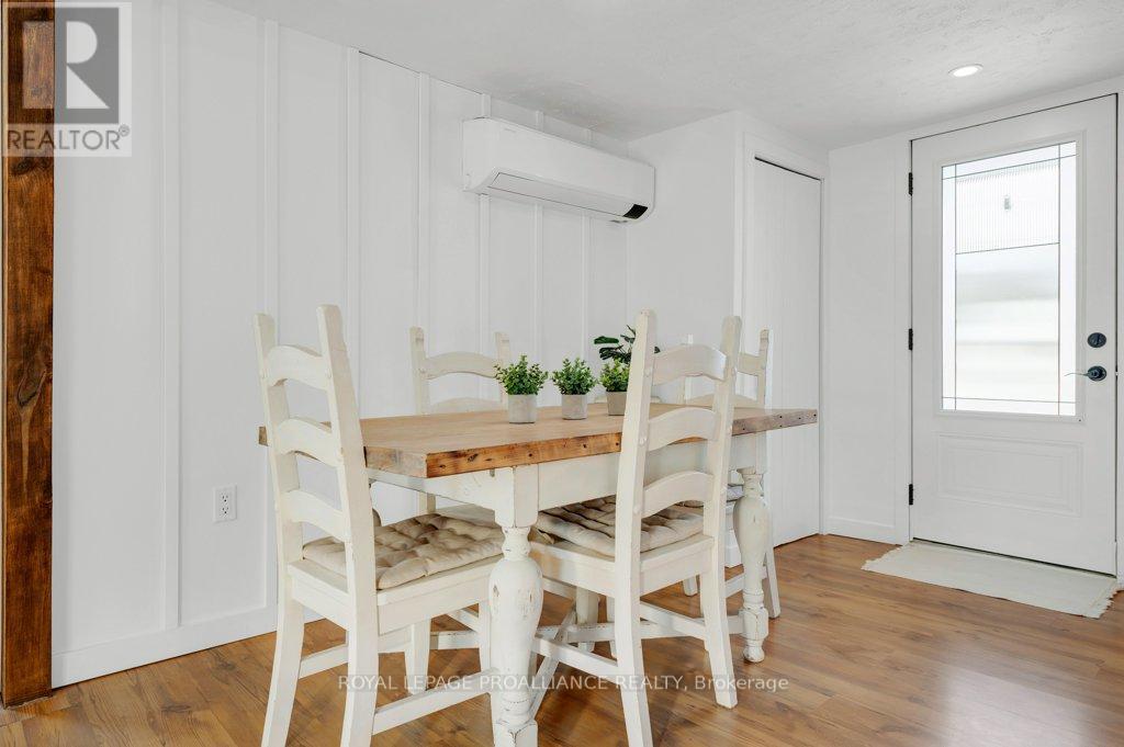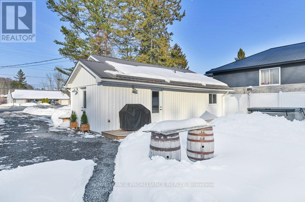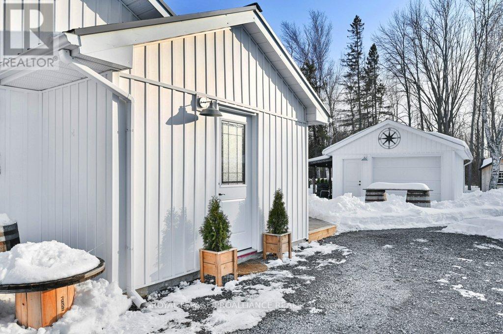 Super trendy, super cute, and beautifully updated-this turn-key bungalow sits in the heart of Prince Edward County, celebrated for its culinary excellence, award-winning wineries, beaches, and relaxed County lifestyle. Ideally located just 15 minutes to Highway 401 and 10 minutes to CFB Trenton, it offers peaceful County living with outstanding convenience for commuters and military families. A heated 1.5 car garage with workshop pairs perfectly with a stunning, fully insulated bunky with hydro, ideal for guests, studio use, or year-round creative space. Exterior upgrades include a metal roof, new maintenance-free vertical vinyl siding with artificial stone veneer, and brand-new windows and doors. Inside nearly all major components have been updated within the last two years, including HVAC, bathroom, plumbing, spray-foam insulation in the crawl space, appliances, and a newer sump pump. The interior offers 2 bedrooms, a 3-piece bath, main-floor laundry, municipal water, and a new septic system. Stylish features-rustic cabinetry, tough sink, electric fireplace, barn doors, laminate flooring a a ductless split/heat pump-create a warm and efficient living space. Outside, the property includes a fantastic patio, fire pit, garden shed, deck, and a designated area for a hot tub (tub negotiable). A private, treed setting completes the relaxed County vibe. Within approximately 5 km, enjoy some of PEC's best attractions, including Sandbanks Provincial Park (with Outlet Beach, Dunes Beach and Lake-shore Beach) and North Beach Provincial Park, along with local restaurants, wineries, cafes, markets, and essentials. An exceptional opportunity for first-time buyers, downsizers, or those seeking a fully renovated and affordable home or investment property in PEC. Flexible possession available. (id:64974)