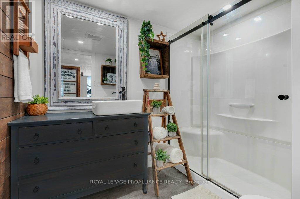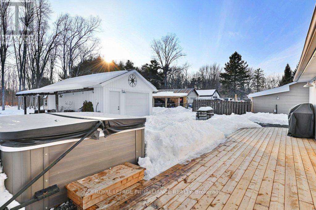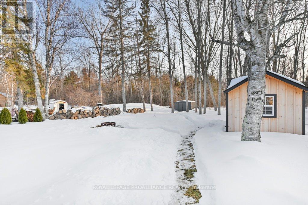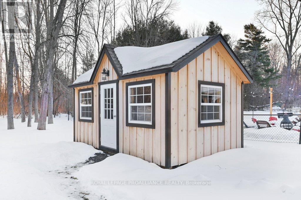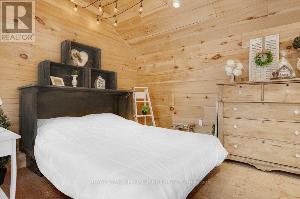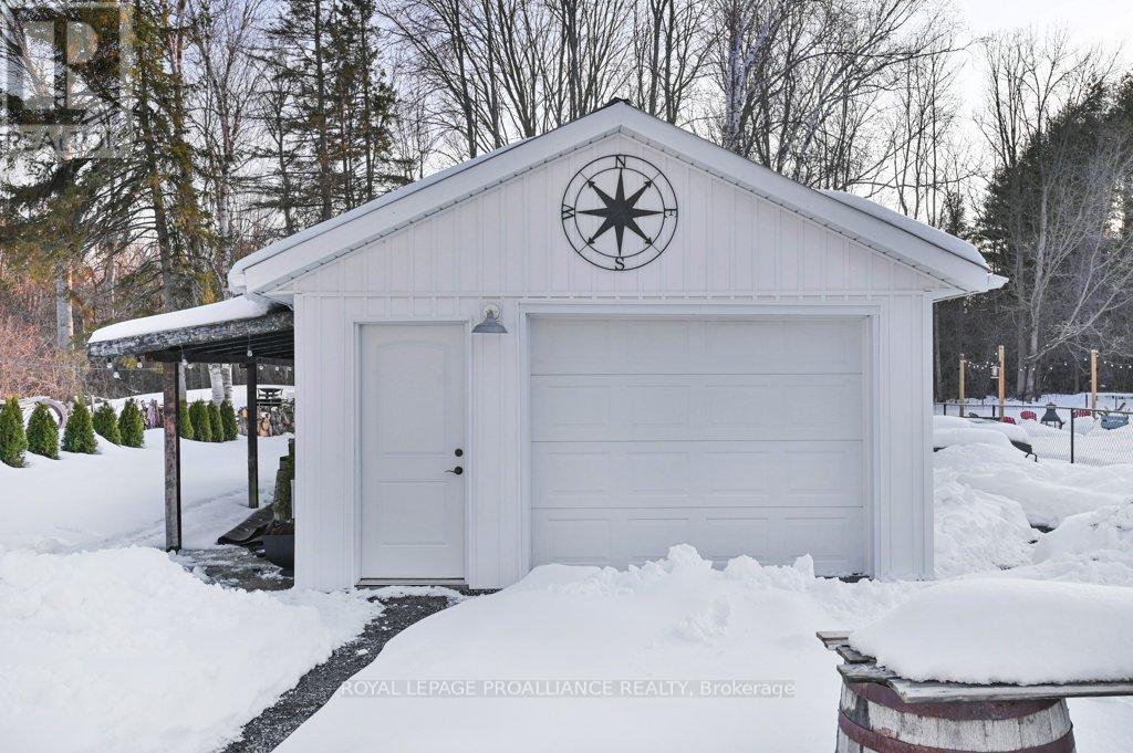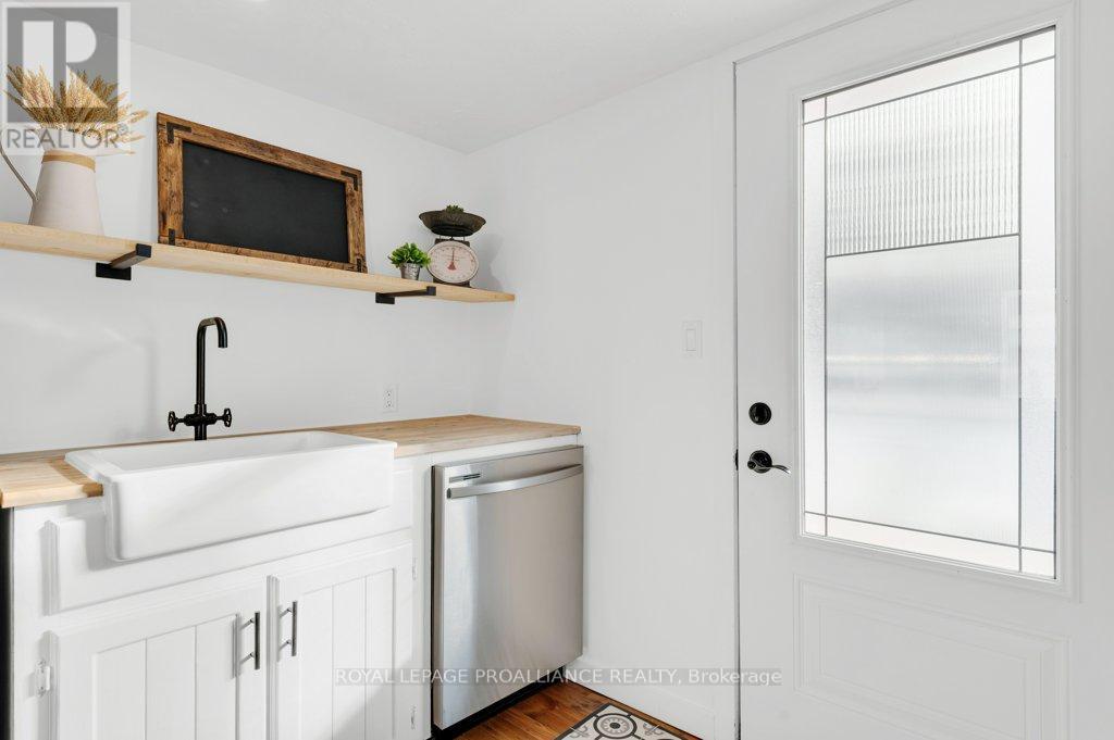 Super trendy, super cute, and beautifully updated-this turn-key bungalow sits in the heart of Prince Edward County, celebrated for its culinary excellence, award-winning wineries, beaches, and relaxed County lifestyle. Ideally located just 15 minutes to Highway 401 and 10 minutes to CFB Trenton, it offers peaceful County living with outstanding convenience for commuters and military families. A heated 1.5 car garage with workshop pairs perfectly with a stunning, fully insulated bunky with hydro, ideal for guests, studio use, or year-round creative space. Exterior upgrades include a metal roof, new maintenance-free vertical vinyl siding with artificial stone veneer, and brand-new windows and doors. Inside nearly all major components have been updated within the last two years, including HVAC, bathroom, plumbing, spray-foam insulation in the crawl space, appliances, and a newer sump pump. The interior offers 2 bedrooms, a 3-piece bath, main-floor laundry, municipal water, and a new septic system. Stylish features-rustic cabinetry, tough sink, electric fireplace, barn doors, laminate flooring a a ductless split/heat pump-create a warm and efficient living space. Outside, the property includes a fantastic patio, fire pit, garden shed, deck, and a designated area for a hot tub (tub negotiable). A private, treed setting completes the relaxed County vibe. Within approximately 5 km, enjoy some of PEC's best attractions, including Sandbanks Provincial Park (with Outlet Beach, Dunes Beach and Lake-shore Beach) and North Beach Provincial Park, along with local restaurants, wineries, cafes, markets, and essentials. An exceptional opportunity for first-time buyers, downsizers, or those seeking a fully renovated and affordable home or investment property in PEC. Flexible possession available. (id:64974)