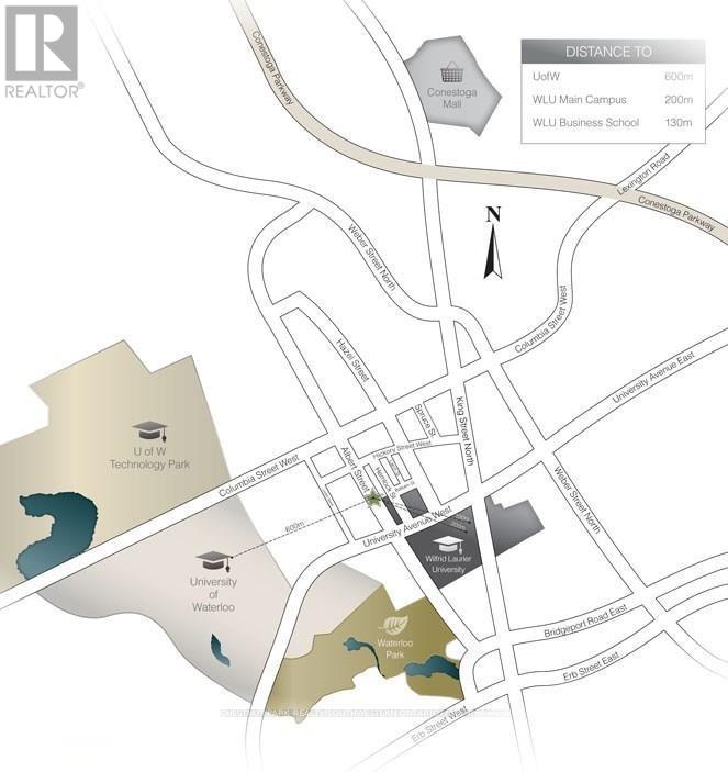 Discover premium off-campus living at Ivy Towns, located at 253 Albert Street in the heart of Waterloo's university district. Just a five-minute walk to both Wilfrid Laurier University and the University of Waterloo, this stylish One-bedroom plus Den, two-bathroom condo offers approximately 739 sq. ft. of thoughtfully designed space. The bright, open-concept layout is highlighted by floor-to-ceiling windows that fill the unit with natural light, while modern finishes such as granite countertops, stainless steel appliances, and convenient in-suite laundry create a comfortable and contemporary atmosphere. Residents can also enjoy excellent on-site amenities, including a rooftop patio and garden-perfect for studying, relaxing, or socializing during warmer months. Ideal for students or young professionals seeking a prime location and quality living. (id:64974)
