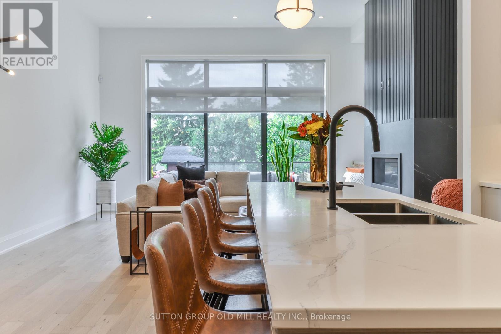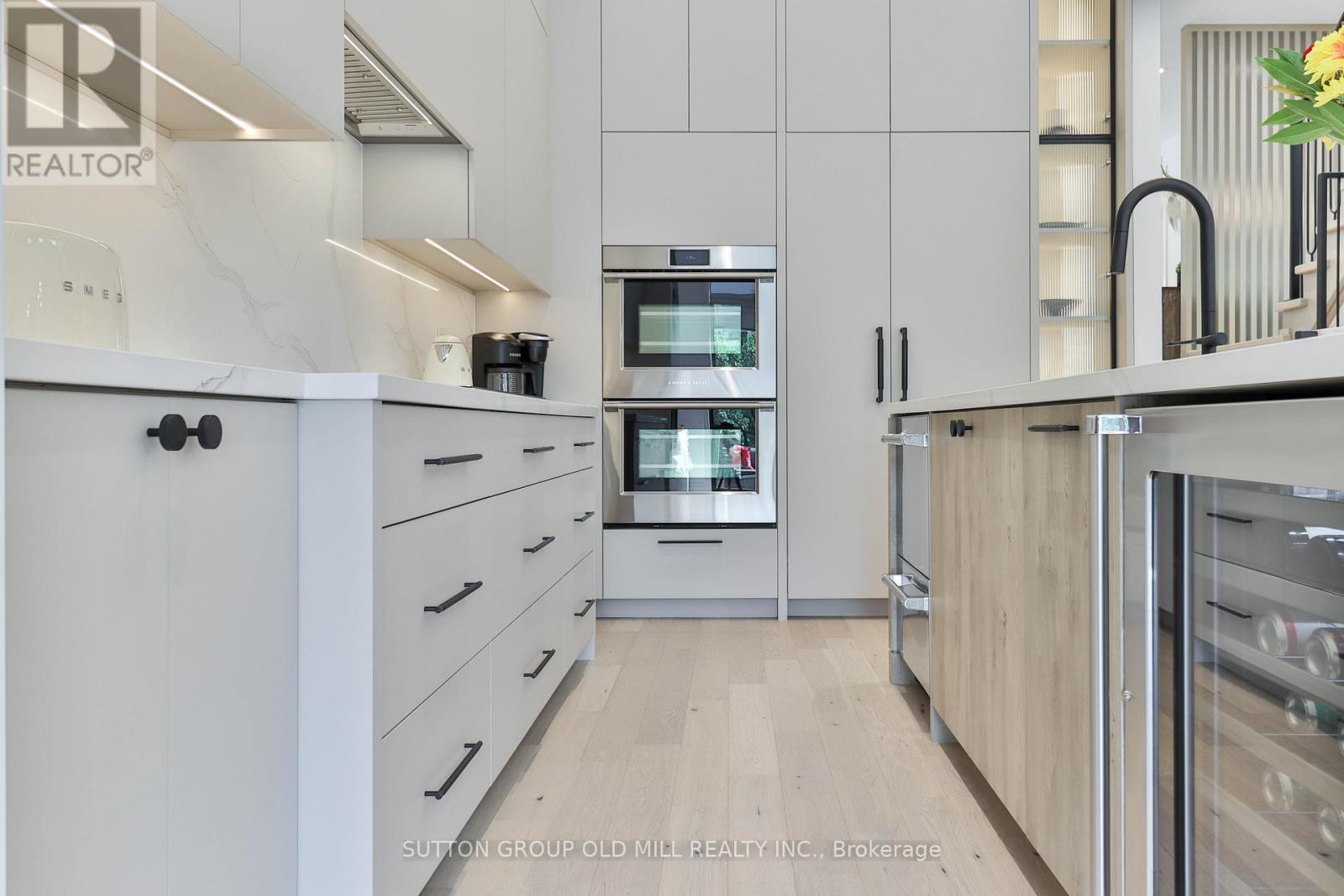 Luxury living in the heart of Etobicoke. This meticulously crafted residence showcases elevated design and exceptional attention to detail throughout. Soaring ceilings create an immediate sense of space, while the inviting living area is anchored by a cozy fireplace-perfect for relaxing winter evenings. Elegant Kentwood hardwood flooring flows throughout the home, beautifully complemented by striking white oak feature walls. The chef-inspired kitchen by Cameo Kitchens is the true centerpiece, blending style with modern functionality. It features sleek European cabinetry, premium Fisher & Paykel appliances, a 42-inch integrated fridge, double wall ovens, and an induction cooktop. Dishwasher drawers are seamlessly integrated into the island, creating a streamlined space ideal for both everyday living and entertaining. The sun-filled dining area offers an expansive setting for hosting family and friends. Upstairs, the primary suite serves as a private retreat, complete with a coffered ceiling, a cozy sitting area, custom dressing room, and a spa-inspired ensuite featuring a soaker tub, double vanity, oversized rain shower, and heated floors. A convenient second-floor laundry room adds to the home's thoughtful design. Smart home technology enhances daily living with integrated speakers, Google Nest climate control, and security cameras for added peace of mind. The lower level offers a refined basement retreat perfect for entertaining, while the backyard oasis is designed for unforgettable gatherings. Situated on a quiet, family-friendly street in desirable South Etobicoke, this home offers quick access to major highways, transit, parks, excellent schools, and the lakefront. A rare blend of luxury, comfort, and cutting-edge design-this is truly a one-of-a-kind place to call home. (id:64974)