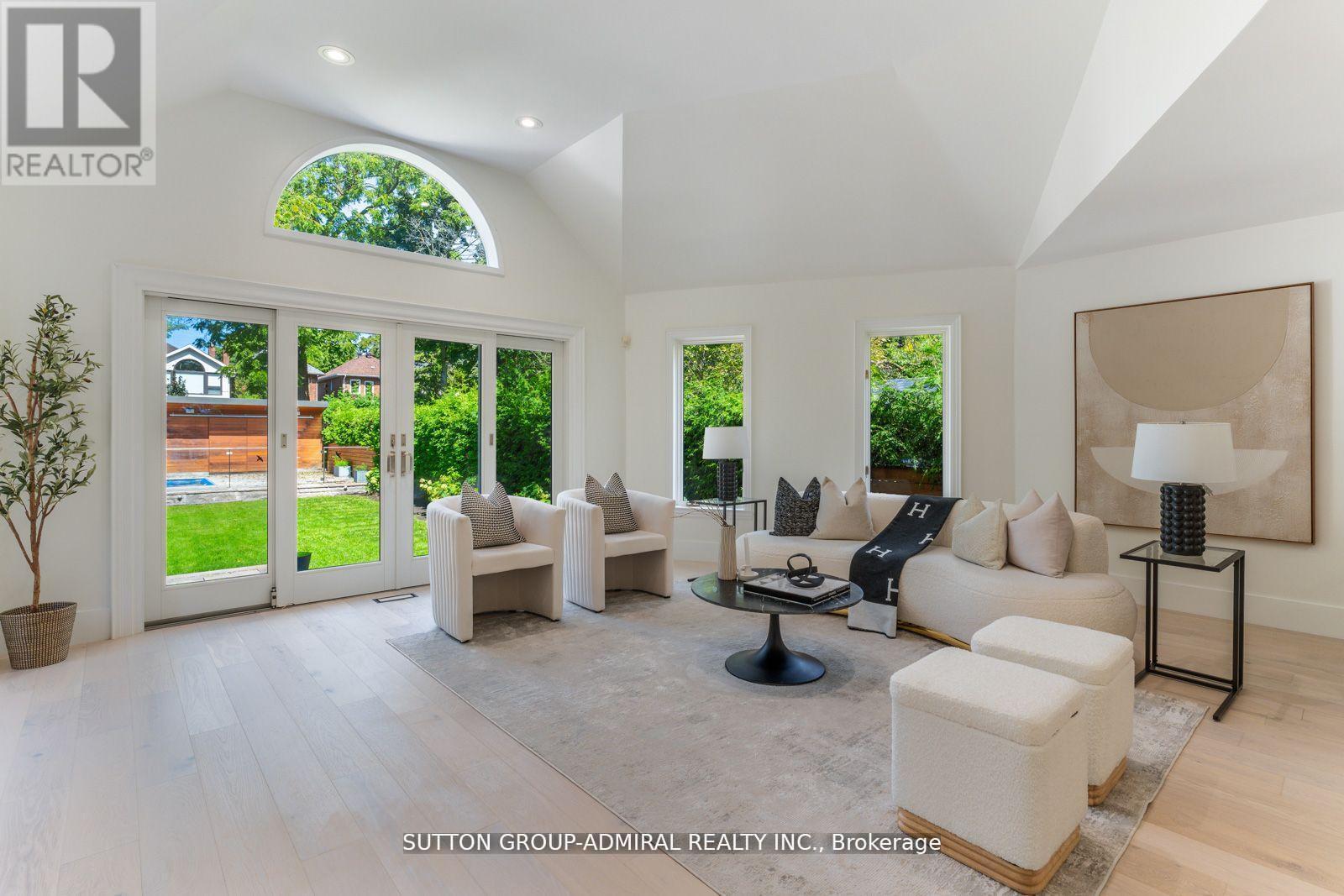 Welcome to this exceptional Lytton Park residence, gracefully set on a rare 50' x 174' deep lot, where timeless elegance meets refined family living. Designed for both everyday comfort and sophisticated entertaining, this home features a stunning saltwater pool, expansive principal rooms, and a chef-inspired kitchen complete with a butler's pantry. The breathtaking great room is highlighted by soaring vaulted ceilings and wrap-around windows, creating an airy, light-filled ambiance. The main floor showcases newly renovated hardwood floors, elegant pot lighting, a wine cellar room, and fresh designer paint, along with a private office or optional fourth bedroom. Upstairs, the home continues to impress with updated flooring and beautifully appointed spa-inspired bathrooms. The lower level offers generous additional living space with outstanding potential for further customization. A private driveway and double garage complement the home's presence on a picturesque, tree-lined street in one of Toronto's most prestigious neighbourhoods. This is a rare opportunity to enjoy a remarkable home as-is or tailor it to your vision. Ideally located just steps to Yonge Street, with access to top-tier restaurants, cafés, parks, the North Toronto Tennis Club, and some of the city's most sought-after schools, including Havergal and John Ross. (id:64974)