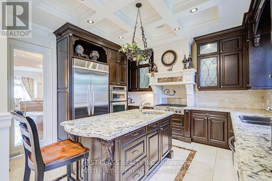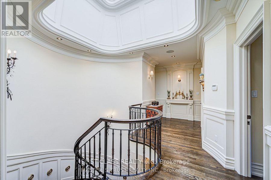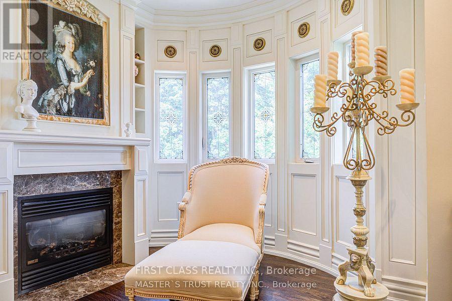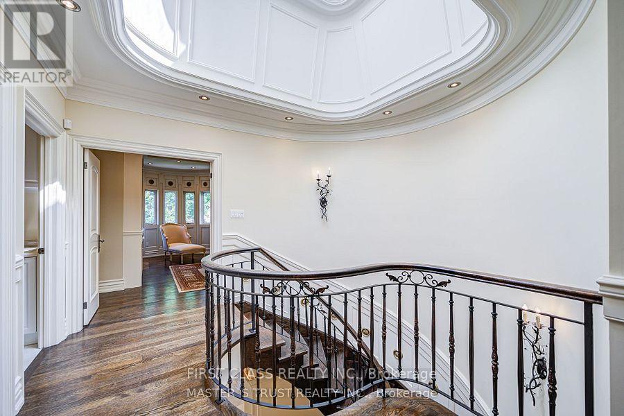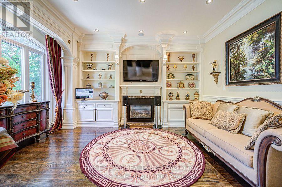 A True Architectural Masterpiece! An extraordinary residence that epitomizes refined luxury and exceptional craftsmanship. This European-inspired estate showcases a breathtaking architectural presence. Crafted with meticulous attention to detail, this home boasts premium finishes, unparalleled workmanship, and a thoughtfully designed layout ideal for elegant living and entertaining.Two Grand Primary Suites one overlooking the tranquil backyard.complete with a private balcony, gas fireplace, luxurious 6-piece spa-inspired ensuites with freestanding soaking tubs, a steam shower, makeup vanity, another facing south, flooded with natural light. Stunning Spiral Staircase, A central design element that radiates elegance, framed by refined trim work and architectural finishes that create a dramatic visual impact.Chefs Dream Kitchen granite countertops, central island, flooring, draped lighting, and an array of high-end appliances that inspire any culinary enthusiast.Family Room Overlooks backyard with oversized picture windows, waffle ceilings, and a cozy gas fireplace.Executive Library Designed with custom millwork, floor-to-ceiling panelled walls, and waffle ceilings, perfect in a timeless space.Walk-Out Basement Fully finished with a wet bar, home theatre, recreation area, and nanny/in-law suite,Cedar Roof With an impressive 30-50 year lifespan, feature offers 2-3 times the durability of standard roofing materials.4 gas fireplaces throughout the home.Skylights providing abundant natural light.Custom wood detailing and premium finishes throughoutThis exceptional property is a rare offering that blends luxury and lifestyle seamlessly.This is not just a home.It's a legacy of refined living in one of most prestigious neighbourhoods.The original 5B is converted to 4B (id:64974)