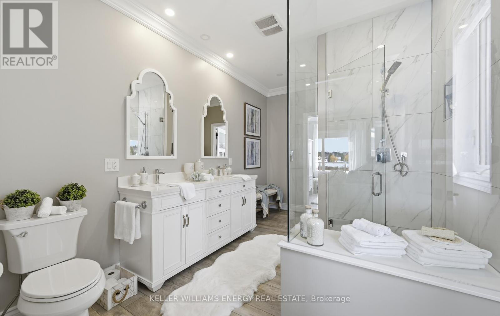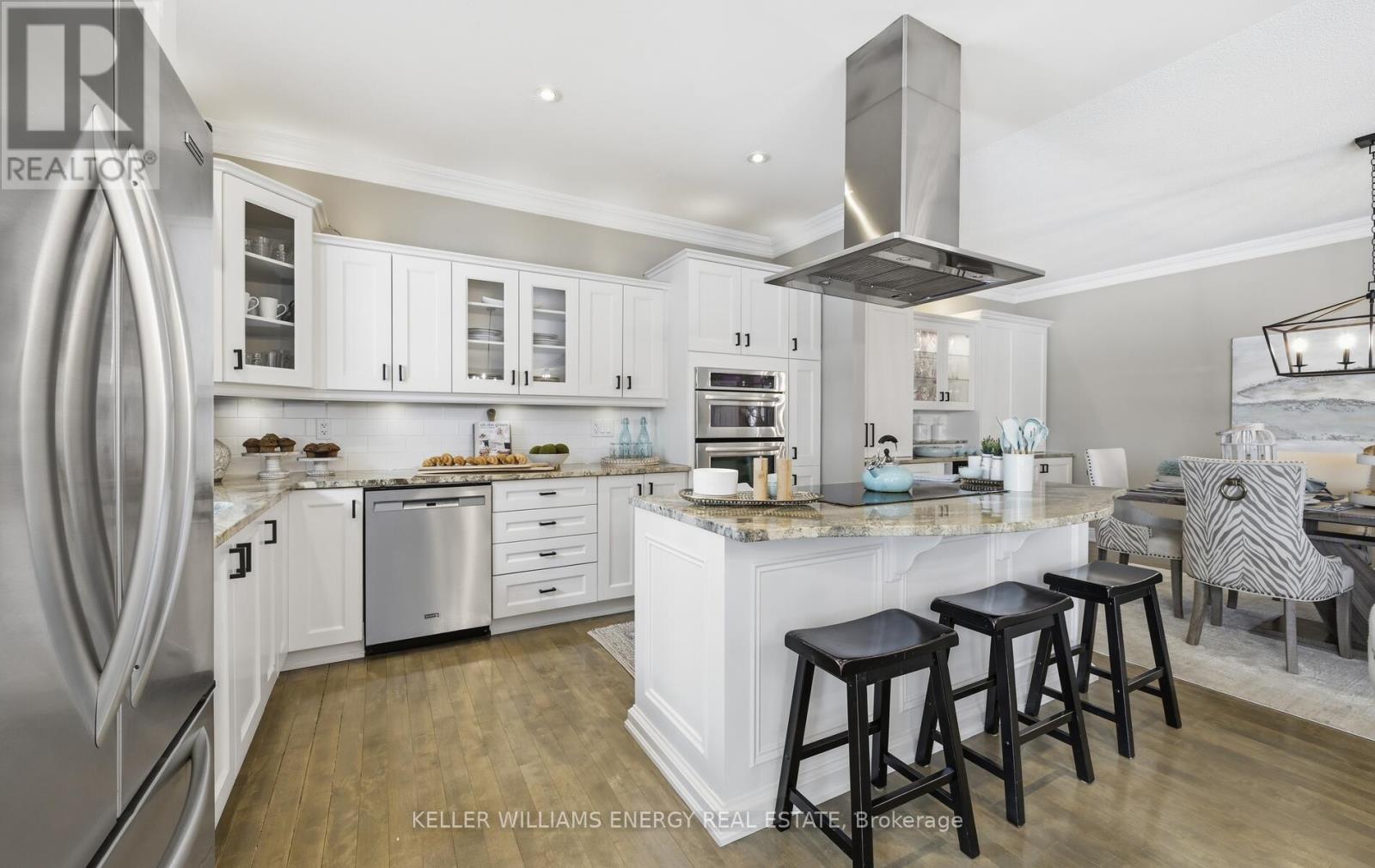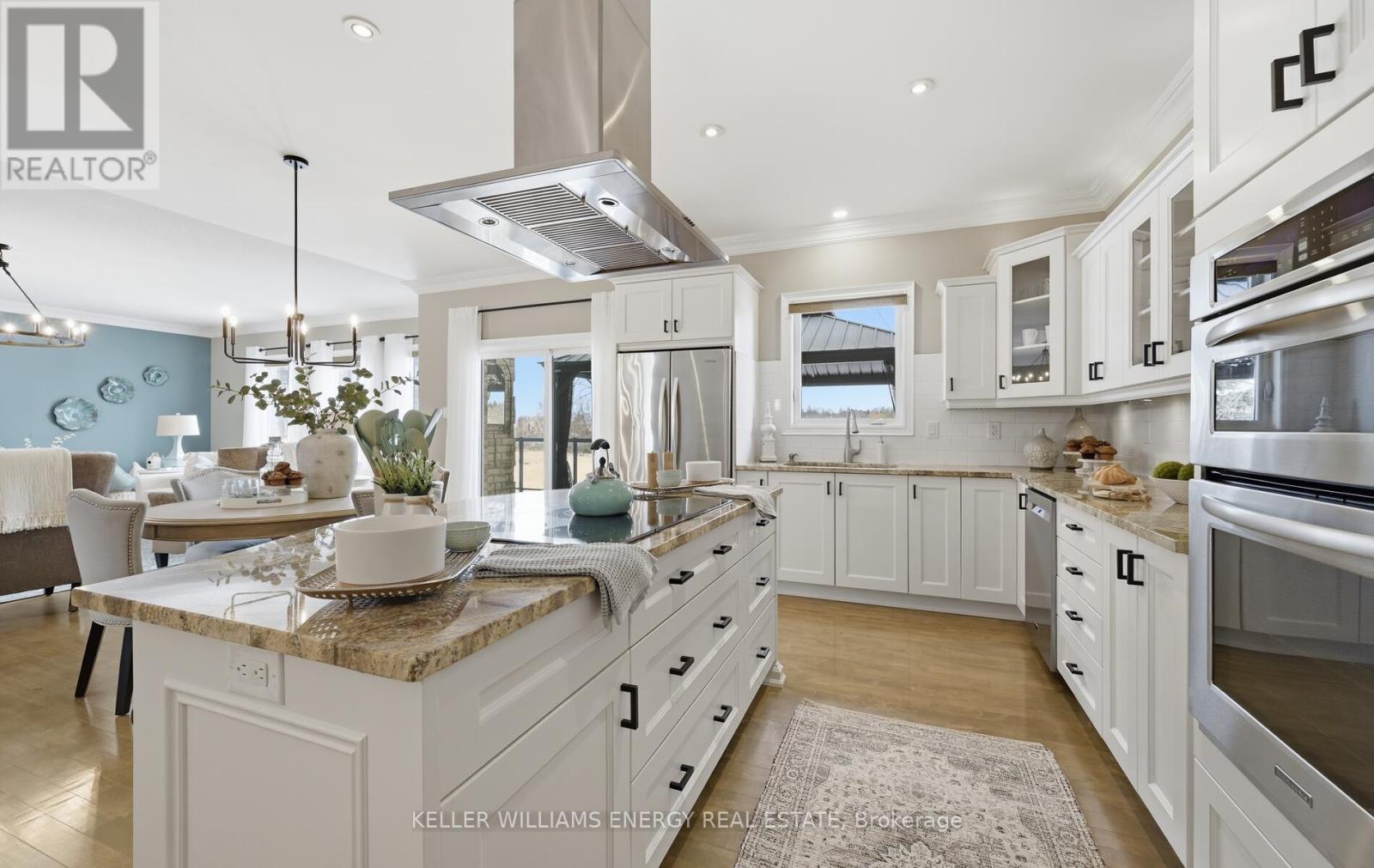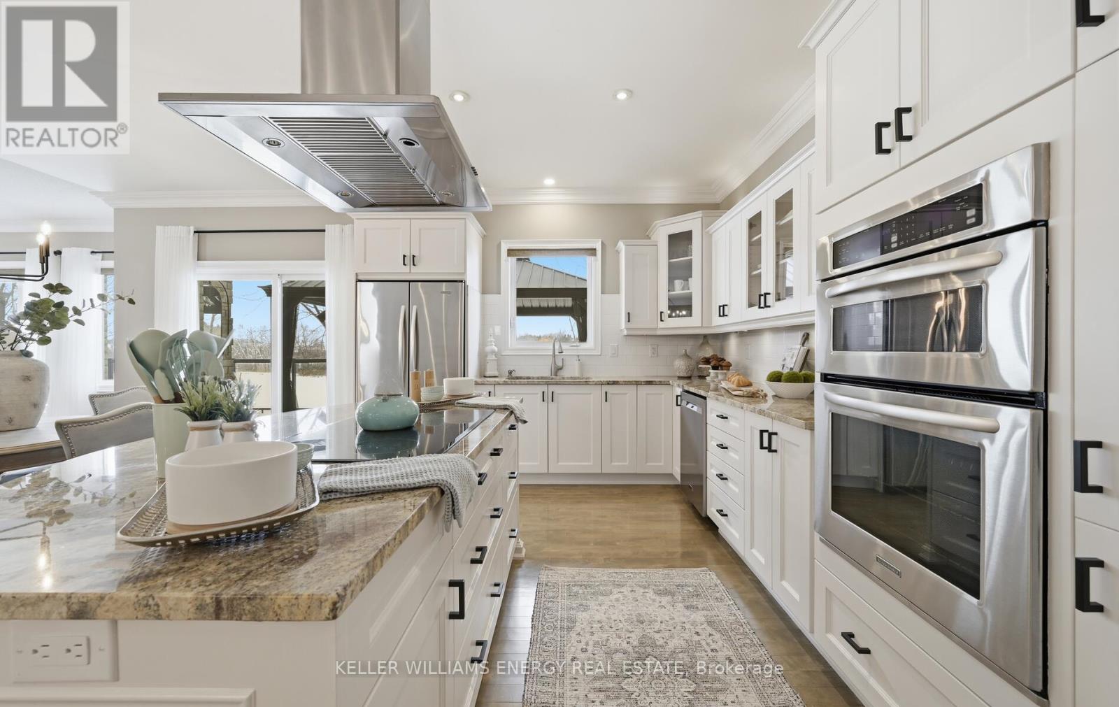 Located in the prestigious Kings Bay enclave, nestled between Lake Scugog and the Nonquon River, this extensively renovated executive bungalow offers refined country living just minutes to Port Perry, the hospital, and major commuter routes. Set on a 73 x 130 ft lot, this 2+1 bedroom, 3 bath home distinguishes itself with a fully finished walkout basement and rare 9-foot ceilings on both levels. The open-concept main floor is designed for modern living and seamless entertaining. A custom kitchen anchors the space with stone countertops, under-cabinet lighting, a large center island with breakfast bar, induction cooktop and island hood. Birch hardwood flooring, oak railings, detailed trim, wide baseboards, and pot lighting create a cohesive, upscale finish throughout .The fully renovated primary suite features new flooring, an oversized walk-in closet, and a spa-inspired ensuite with heated floors, dual vanities, and integrated laundry. An 8-foot patio door with electric blinds provides abundant natural light and direct access. The walkout lower level offers 9-foot ceilings, large above-grade windows, heated floors, an additional bedroom, and a full bath ideal for guests, extended family, or recreation. Outdoors, enjoy a custom 50-foot composite deck with privacy screening, western exposure and sunsets, a 12 x 16 gazebo, stone steps to a lower patio, interlock pathways, and extensive perennial gardens. Interlock stonework enhances the front porch and patio, creating polished curb appeal. A rare turnkey bungalow offering scale, quality, and complete interior and exterior investment in one of Seagrave's most desirable communities. (id:64974)