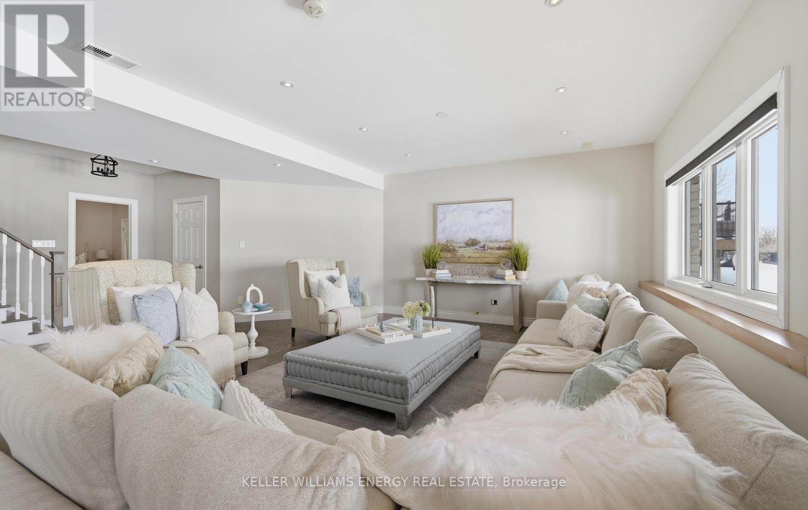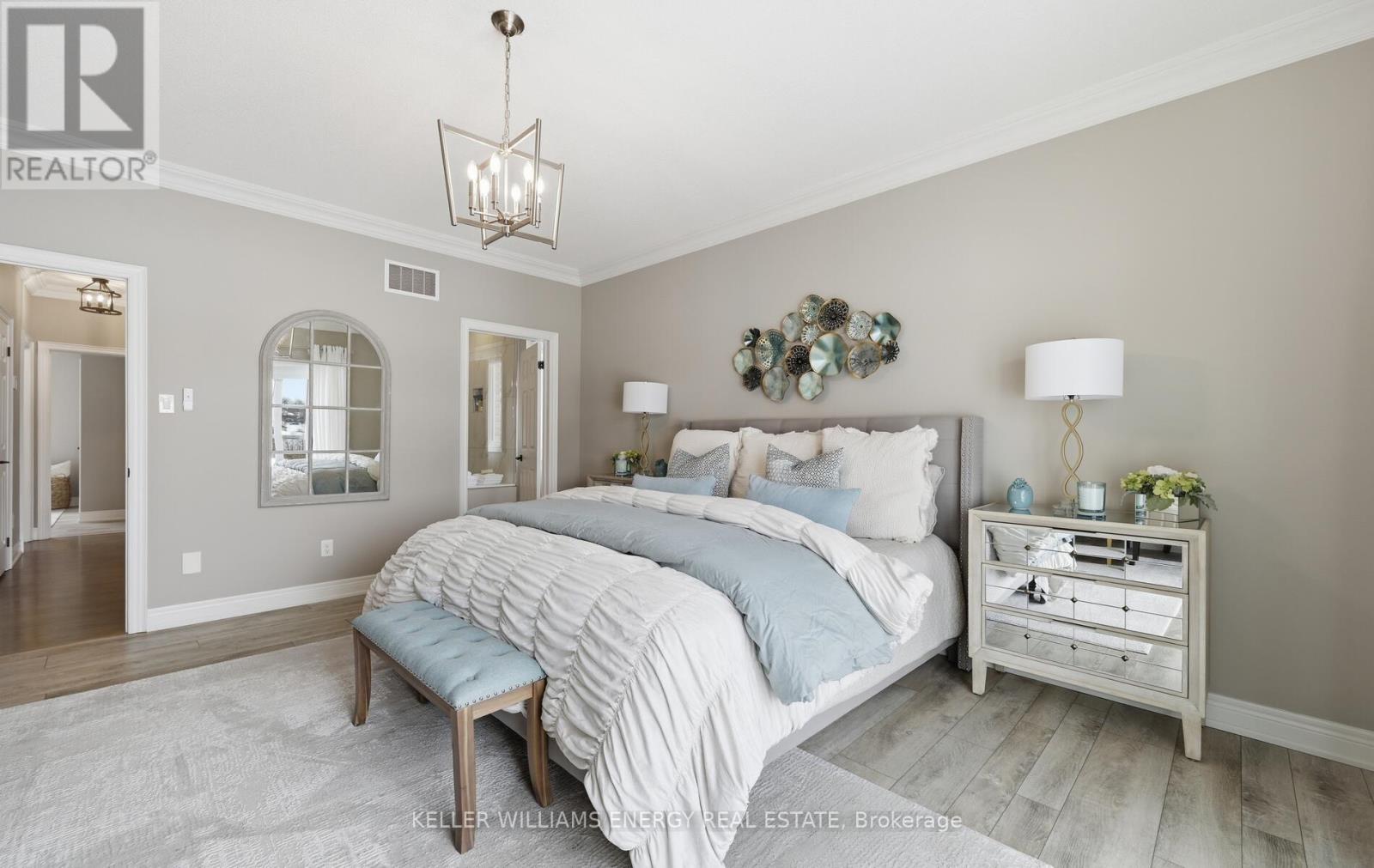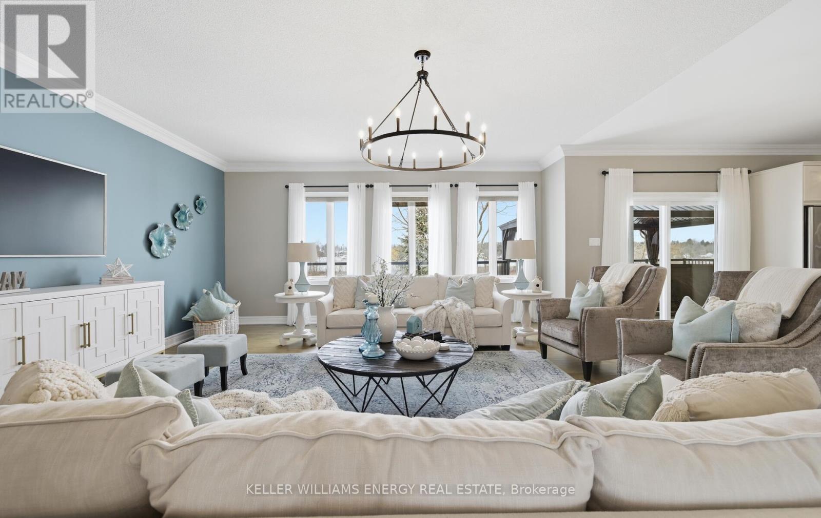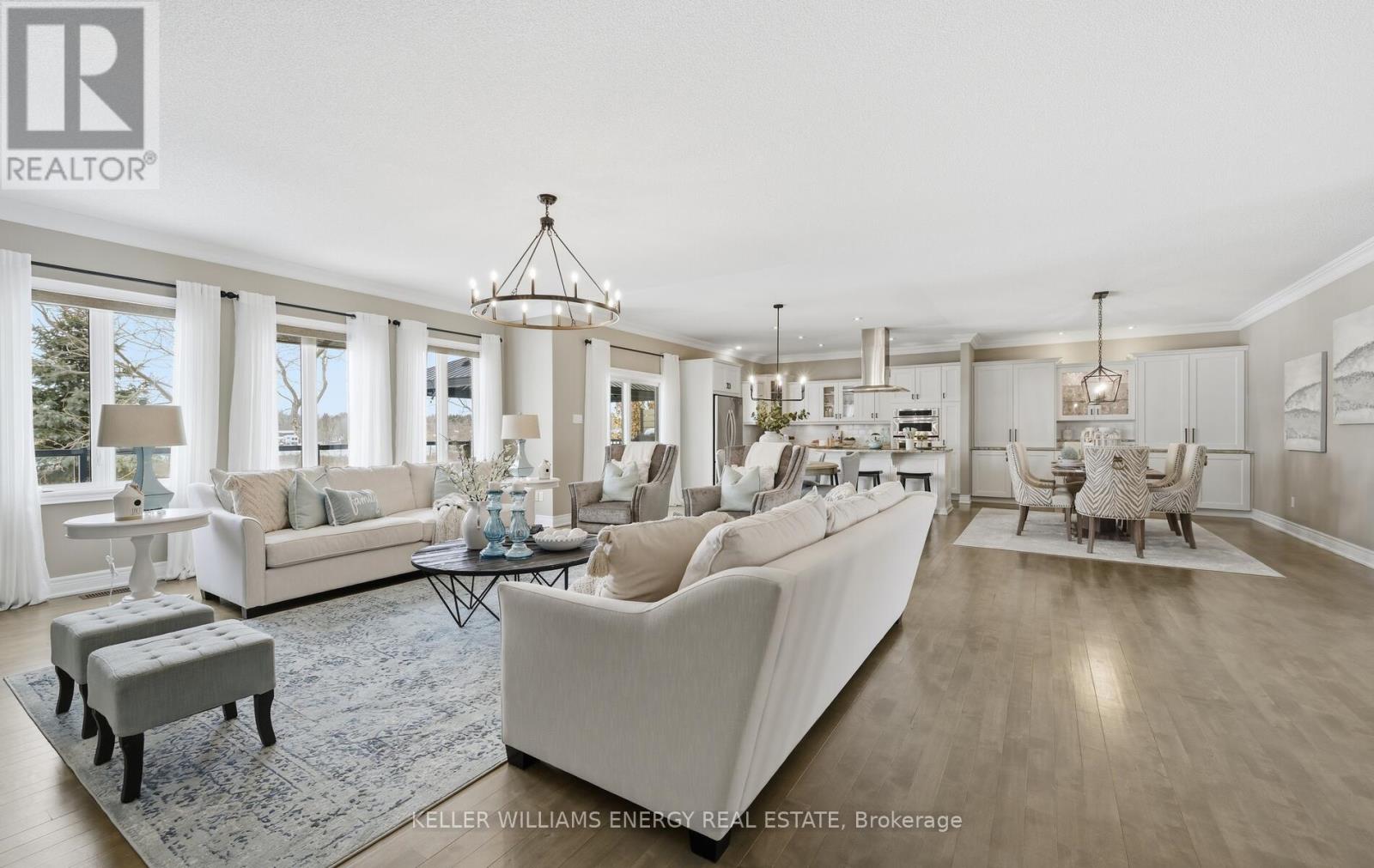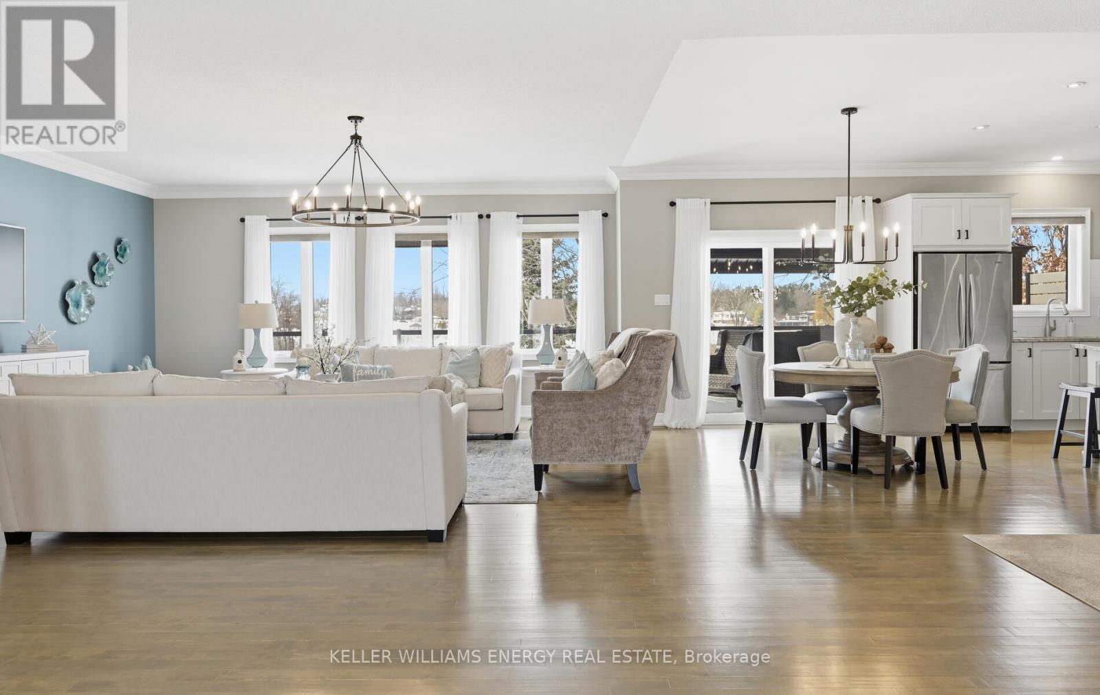 Located in the prestigious Kings Bay enclave, nestled between Lake Scugog and the Nonquon River, this extensively renovated executive bungalow offers refined country living just minutes to Port Perry, the hospital, and major commuter routes. Set on a 73 x 130 ft lot, this 2+1 bedroom, 3 bath home distinguishes itself with a fully finished walkout basement and rare 9-foot ceilings on both levels. The open-concept main floor is designed for modern living and seamless entertaining. A custom kitchen anchors the space with stone countertops, under-cabinet lighting, a large center island with breakfast bar, induction cooktop and island hood. Birch hardwood flooring, oak railings, detailed trim, wide baseboards, and pot lighting create a cohesive, upscale finish throughout .The fully renovated primary suite features new flooring, an oversized walk-in closet, and a spa-inspired ensuite with heated floors, dual vanities, and integrated laundry. An 8-foot patio door with electric blinds provides abundant natural light and direct access. The walkout lower level offers 9-foot ceilings, large above-grade windows, heated floors, an additional bedroom, and a full bath ideal for guests, extended family, or recreation. Outdoors, enjoy a custom 50-foot composite deck with privacy screening, western exposure and sunsets, a 12 x 16 gazebo, stone steps to a lower patio, interlock pathways, and extensive perennial gardens. Interlock stonework enhances the front porch and patio, creating polished curb appeal. A rare turnkey bungalow offering scale, quality, and complete interior and exterior investment in one of Seagrave's most desirable communities. (id:64974)