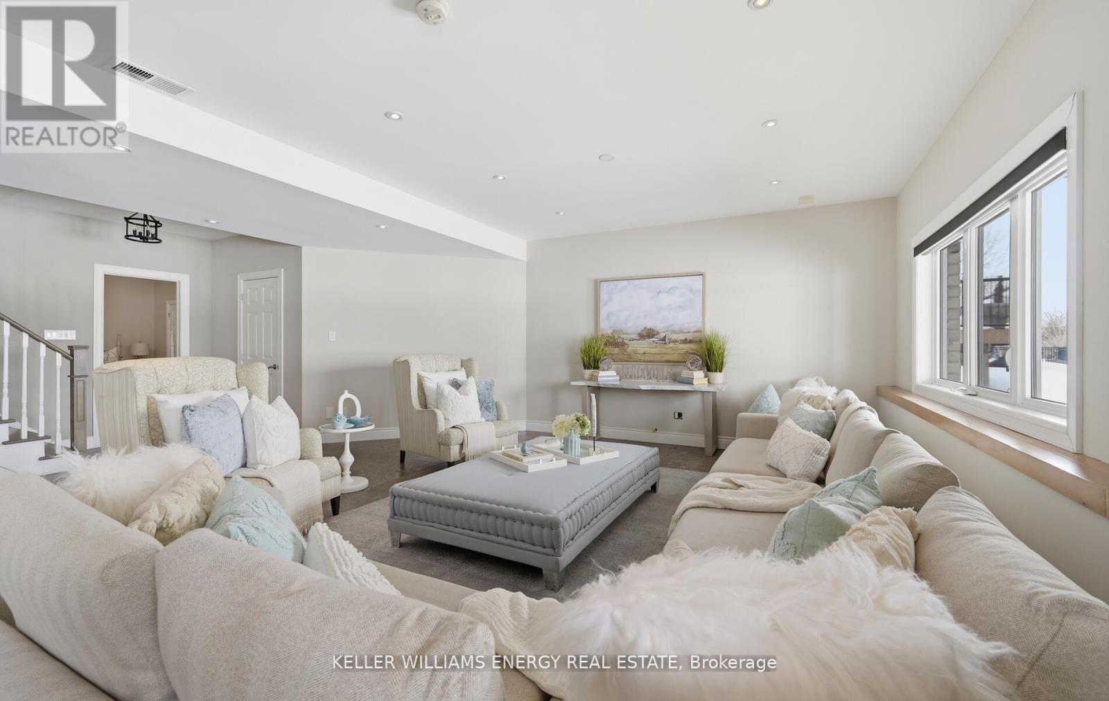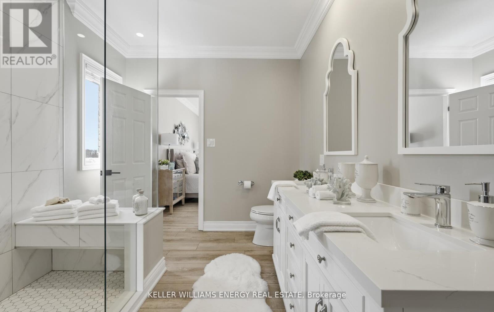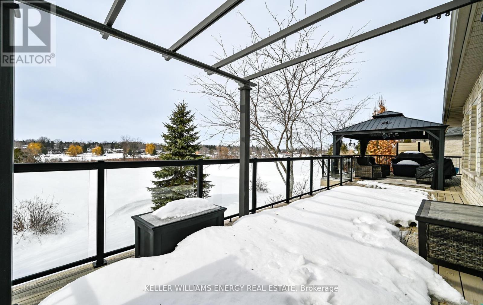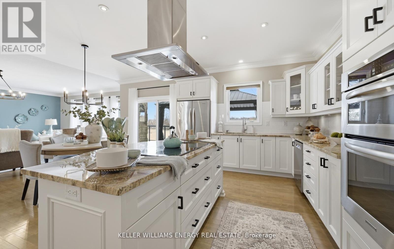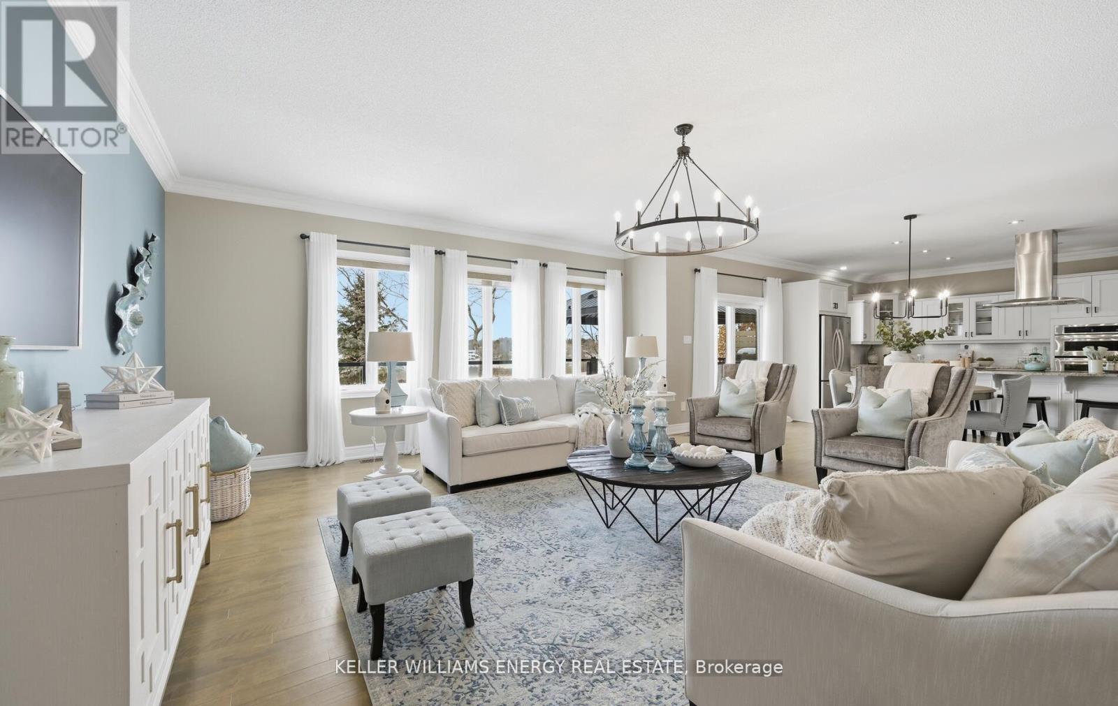 Located in the prestigious Kings Bay enclave, nestled between Lake Scugog and the Nonquon River, this extensively renovated executive bungalow offers refined country living just minutes to Port Perry, the hospital, and major commuter routes. Set on a 73 x 130 ft lot, this 2+1 bedroom, 3 bath home distinguishes itself with a fully finished walkout basement and rare 9-foot ceilings on both levels. Oversized Double Car Garage With Additional Four Feet Of Depth. Ideal For Extra Storage , Larger Vehicles Or A Work Shop Set Up. The open-concept main floor is designed for modern living and seamless entertaining. A custom kitchen anchors the space with stone countertops, under-cabinet lighting, a large center island with breakfast bar, induction cooktop and island hood. Birch hardwood flooring, oak railings, detailed trim, wide baseboards, and pot lighting create a cohesive, upscale finish throughout .The fully renovated primary suite features new flooring, an oversized walk-in closet, and a spa-inspired ensuite with heated floors, dual vanities, and integrated laundry. An 8-foot patio door with electric blinds provides abundant natural light and direct access. The walkout lower level offers 9-foot ceilings, large above-grade windows, heated floors, an additional bedroom, and a full bath ideal for guests, extended family, or recreation. Outdoors, enjoy a custom 50-foot composite deck with privacy screening, western exposure and sunsets, a 12 x 16 gazebo, stone steps to a lower patio, interlock pathways, and extensive perennial gardens. Interlock stonework enhances the front porch and patio, creating polished curb appeal. A rare turnkey bungalow offering scale, quality, and complete interior and exterior investment in one of Seagrave's most desirable communities. (id:64974)