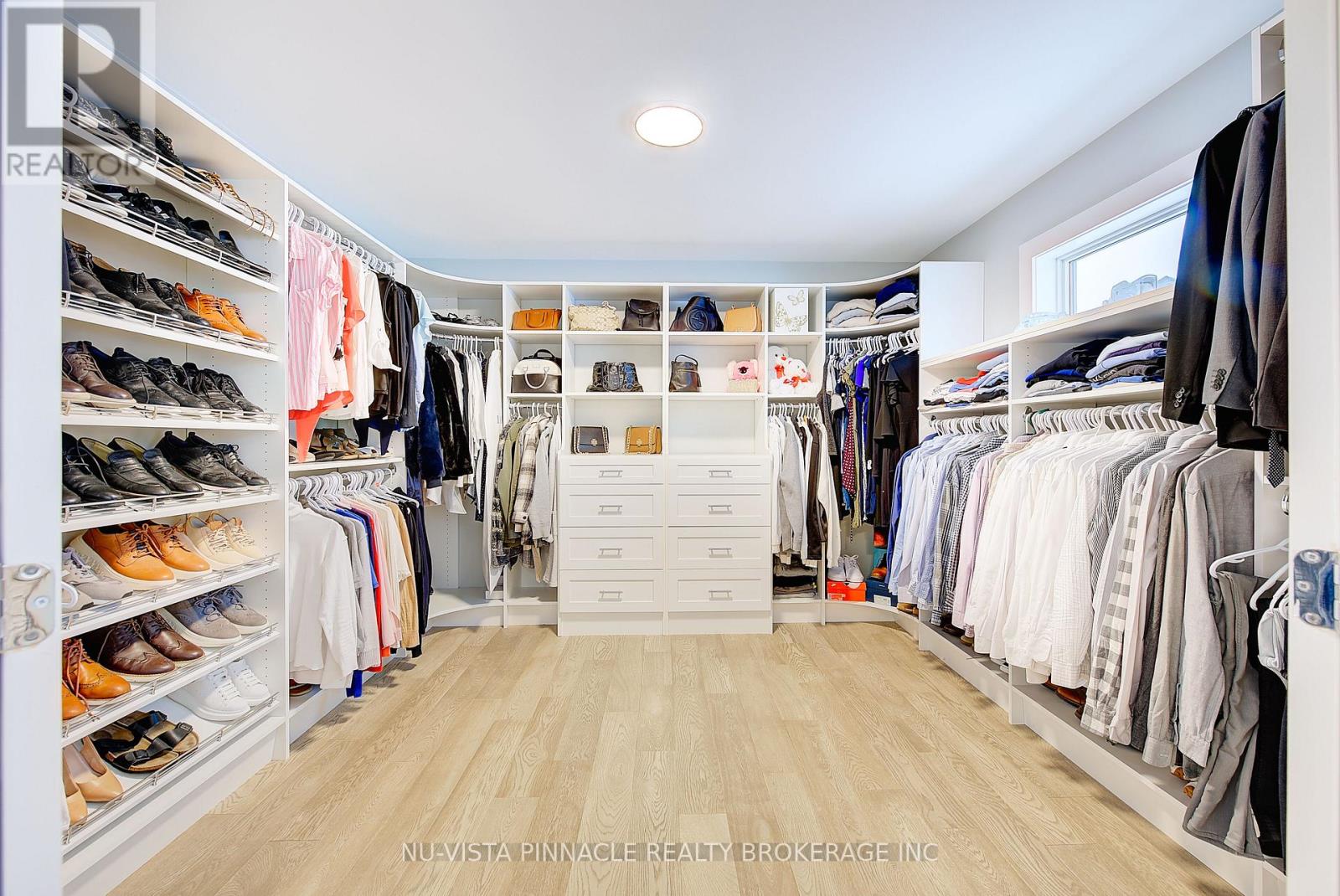 Exceptional Luxury Residence Backing Onto Boler Mountain Greenspace Offering over 4400 sq. ft. of finished space, with 1,120 sq. ft. of fully finished lower-level living space, this remarkable home delivers uncompromising quality with five bedrooms and six bathrooms, each thoughtfully designed for comfort and privacy. At the heart of the home is a show-stopping, chef-inspired luxury kitchen, featuring a premium, high-end appliance package with professional-grade appliances, ideal for serious cooking and elevated entertaining. The space is enhanced by quartz countertops throughout, custom cabinetry, and a generous walk-in pantry, blending exceptional design with everyday functionality. The primary suite is a private retreat, complete with a spa-like ensuite showcasing a large tiled glass shower, soaker tub, and a custom walk-in closet with built-in organizers. Each of the three additional upper-level bedrooms offers its own walk-in closet and private ensuite, while the basement bedroom also includes a full ensuite-perfect for guests or extended family. The finished lower level offers excellent potential to be easily separated, allowing for the possibility of a future private or separate entrance (subject to approvals), making it ideal for multigenerational living, guests, or additional living flexibility. Backing onto the protected greenspace of Boler Mountain, this home enjoys spectacular views, exceptional privacy, and a tranquil natural setting rarely found in luxury properties. Additional features include tinted windows front and back, Wolf range with indoor BBQ, Zebra blinds throughout. Ultra-private, impeccably finished, and designed for the most discerning buyer - a truly exceptional must-see home. (id:64974)