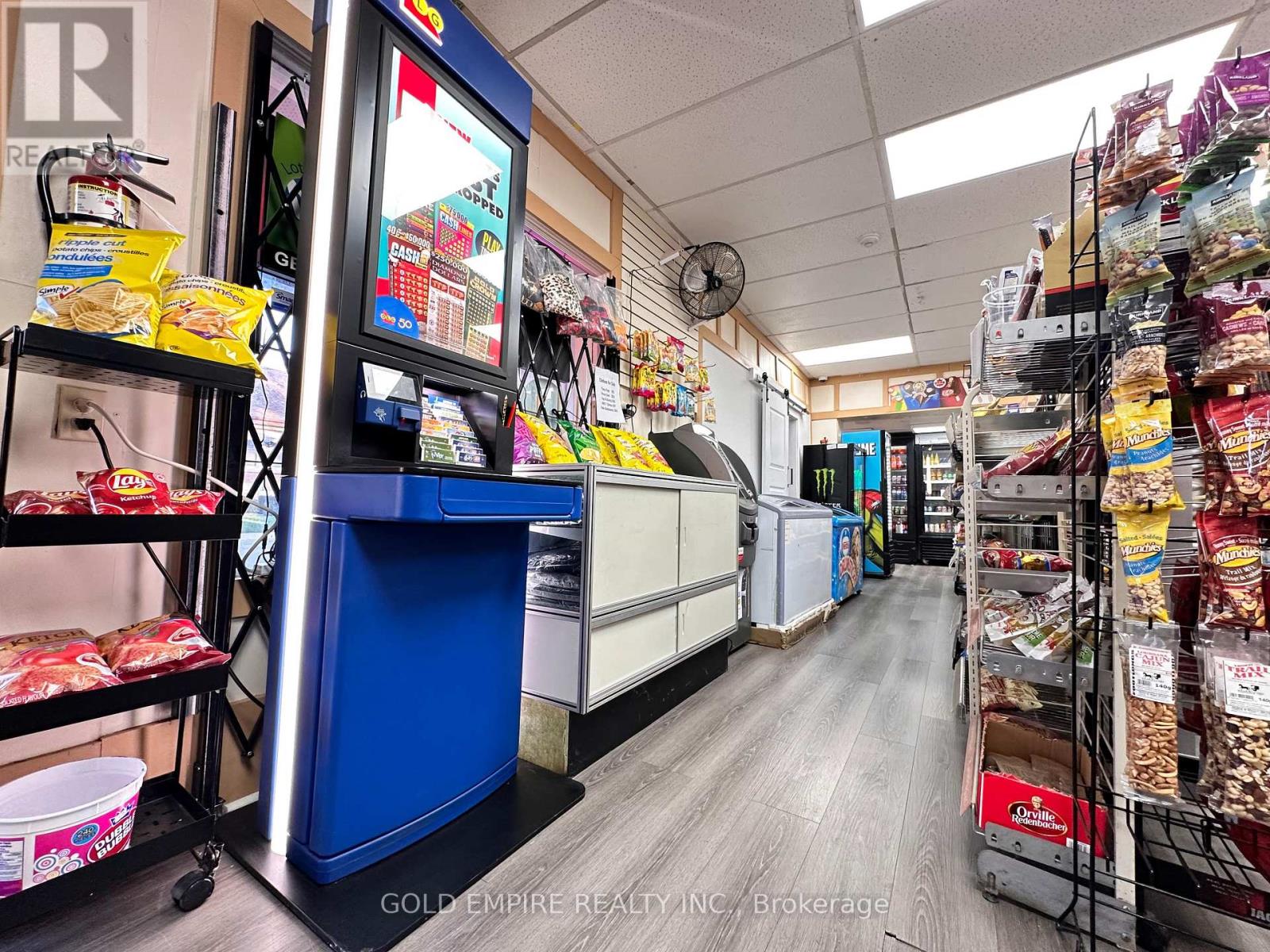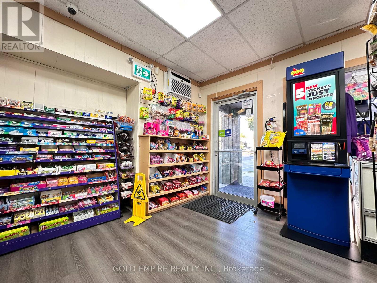 Excellent opportunity to own a well-established convenience store in a prime residential neighborhood in London, ON. Located at the busy intersection of Emery St E and Cathcart St, this longstanding business benefits from strong visibility and steady walk-in traffic. Offered at $95000, the store features wine, beer, lottery, cigarettes, groceries, ATM services, and more, providing a reliable revenue mix. With low rent of only $1,700/month (including TMI & HST) and potential to add a vape section for additional income, this turnkey operation is ideal for an owner-operator or investor seeking a profitable business in a high-demand location. (id:64974)