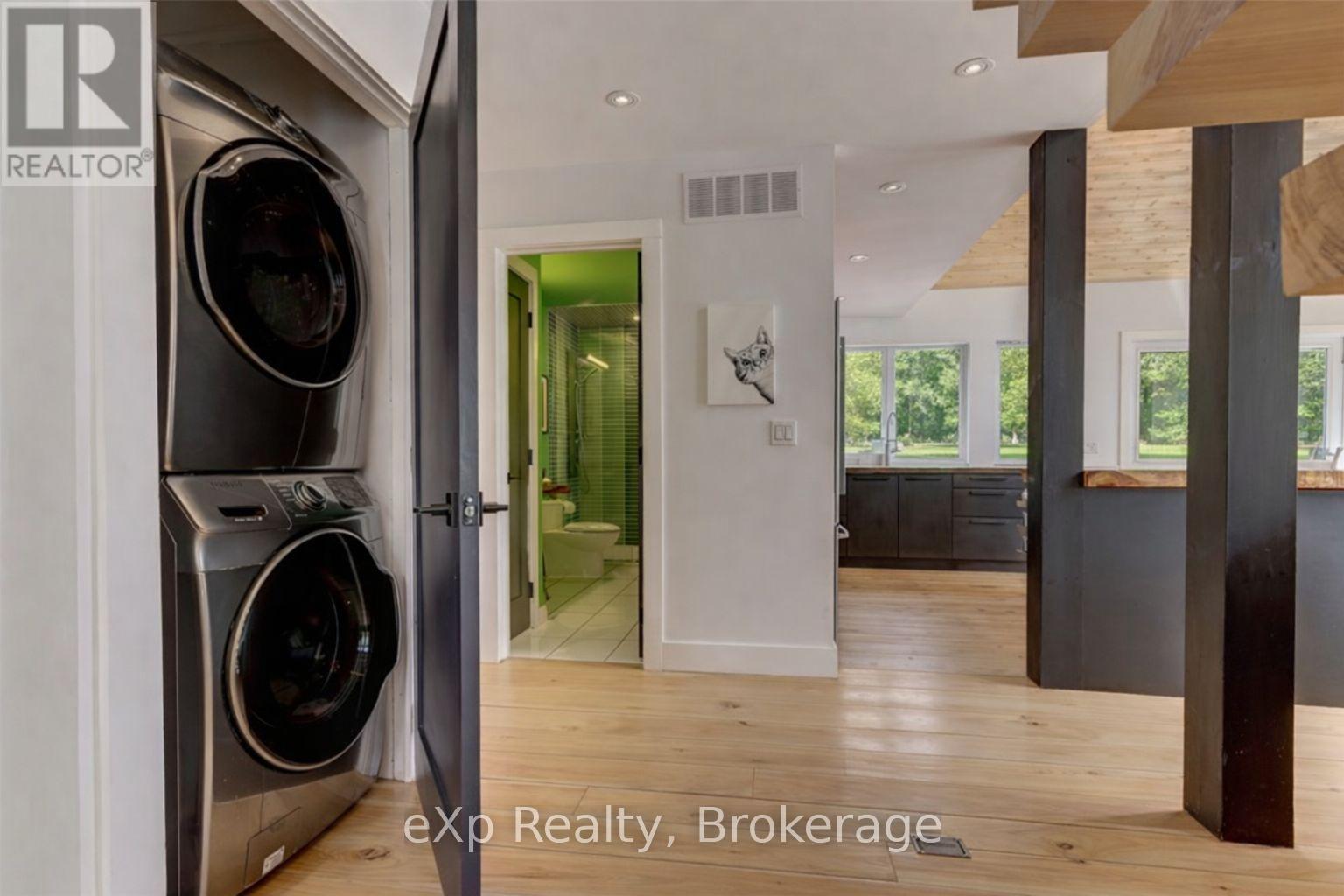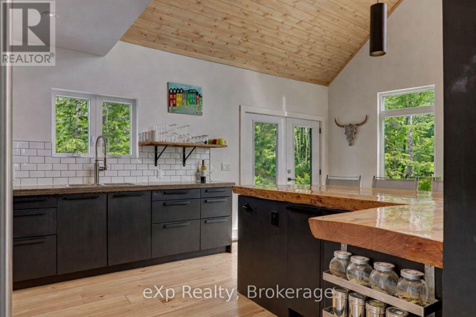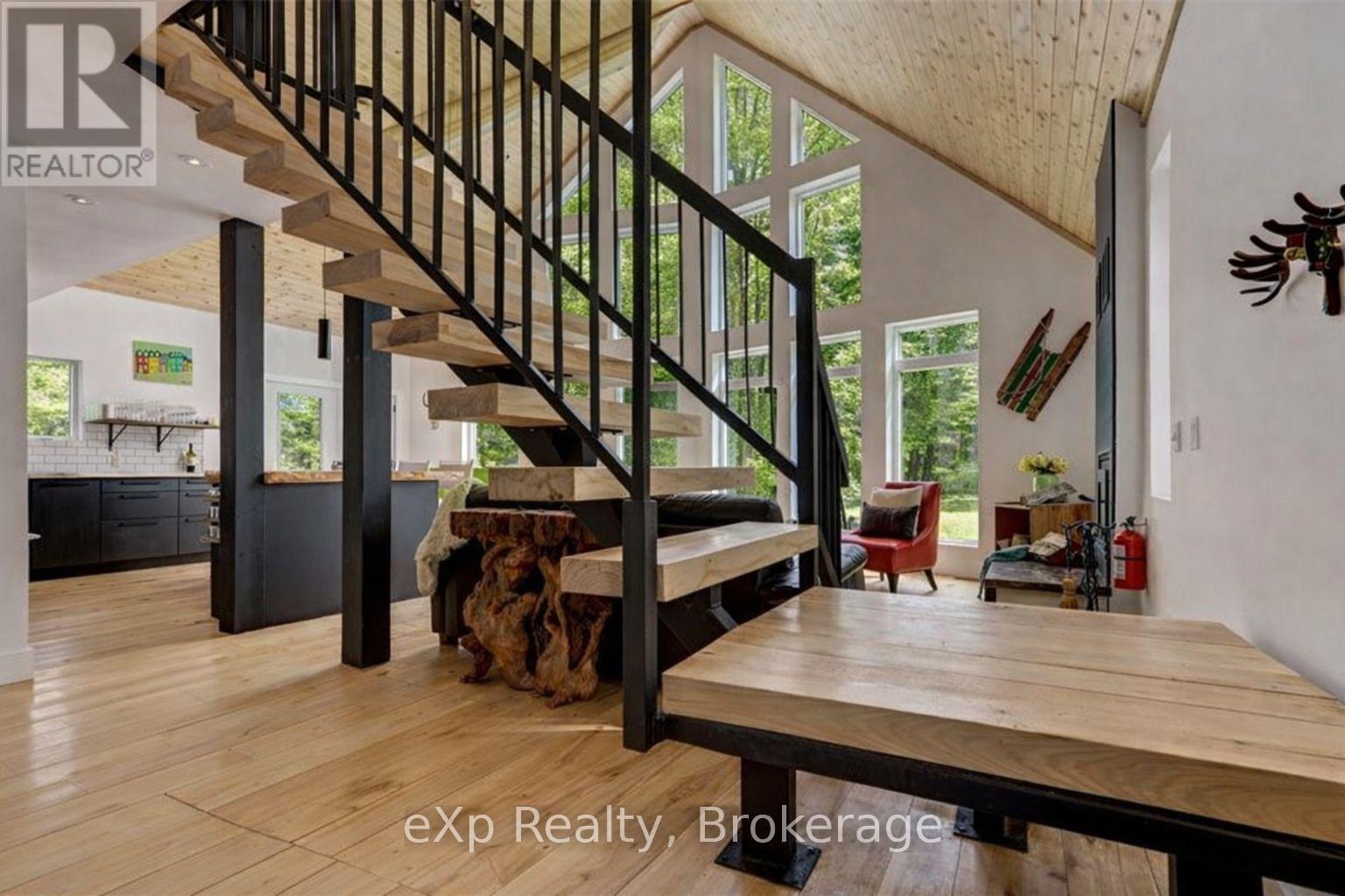 Experience the rare luxury of complete privacy and natural beauty with this exceptional custom-built 3-bedroom residence set on over 137 acres of pristine landscape. Thoughtfully designed to blend comfort with nature, the home features expansive windows that flood the interior with natural light while highlighting the rich hickory hardwood flooring and spacious open-concept design. At the heart of the home, the beautifully crafted kitchen showcases local natural ledgerock countertops paired with a stunning live edge island, creating a warm and inviting space perfect for both everyday living and entertaining. Spa-inspired touches elevate the home's comfort, including in-floor heating in the main floor bathroom and heated towel racks in both bathrooms, offering everyday indulgence during every season. Step outside and immerse yourself in the serenity of your private estate. After exploring the extensive trails that wind throughout the property, relax beneath the night sky in the outdoor hot tub, or retreat indoors to the inviting wood-burning fireplace for cozy evenings surrounded by nature.The property also features impressive outbuildings designed for versatility and lifestyle. A 24' x 24' detached double-car fully insulated garage with a heated loft offers endless possibilities for a studio, workspace, or guest overflow. A charming insulated bunkie with engineered floors and a wood burning fireplace provides additional accommodations for family and friends, while the 24' x 32' barn-equipped with water and hydro-offers incredible potential as a workshop, hobby barn, or additional garage.Additional features include central air conditioning, main floor laundry, generator-ready wiring for peace of mind, and energy-efficient LED lighting throughout.This extraordinary property offers a rare opportunity to own a private countryside retreat where luxury, comfort, and nature exist in perfect harmony. (id:64974)