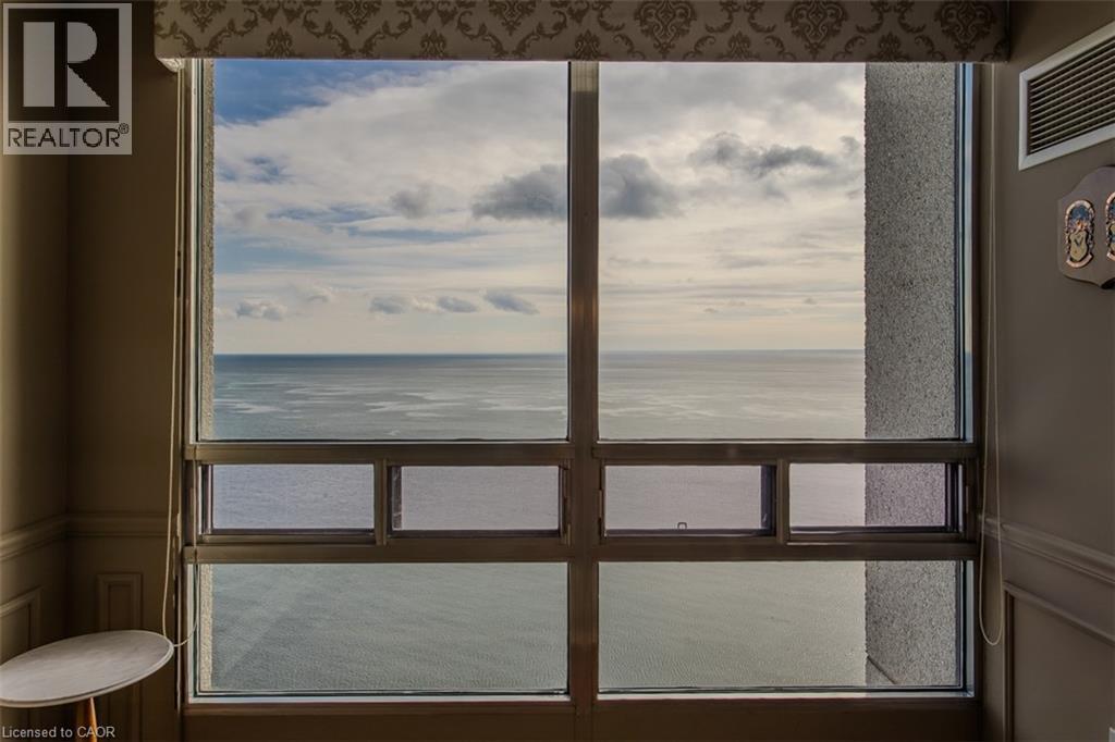 Wake up to breathtaking, unobstructed views of Lake Ontario from this sun-drenched corner residence, ideally positioned in one of Bronte's most sought-after waterfront communities. Perfectly tailored for discerning downsizers, this home offers the rare opportunity to simplify without sacrificing space, comfort, or lifestyle-delivering a true resort-inspired experience steps from the harbour, marina, charming shops, restaurants and picturesque walking trails. A gracious entryway with tray ceiling sets the tone, leading into an elegant interior finished with wainscoting, high ceilings and hardwood flooring throughout. The spacious kitchen is both functional and refined, featuring granite countertops, tile backsplash, valence lighting and stainless steel appliances, flowing seamlessly into the open-concept eating area and main living space. Walls of floor-to-ceiling windows frame breathtaking, unobstructed views of Lake Ontario, filling the home with natural light throughout the day. Step onto the private balcony-large enough for lounging and dining-and take in panoramic lake and marina vistas that feel like a permanent getaway. A second living area, also wrapped in floor-to-ceiling windows, and a formal dining room provide flexibility for entertaining or quiet relaxation. The primary suite is a serene retreat with stunning lake views and a spa-inspired five-piece ensuite featuring dual vanities, a glass walk-in shower and a deep soaker tub. A generous second bedroom, a stylish three-piece bath with walk-in shower, and a dedicated in-suite laundry room complete the layout. Residents enjoy an exceptional array of resort-like amenities including an indoor pool, hot tub, sauna, fitness centre, tennis and squash courts, golf practice area, games and media rooms, library, art and woodworking studios, organized social activities, a lakefront clubhouse, car wash and 24-hour security. An unparalleled opportunity to embrace refined, low-maintenance waterfront living. (id:64974)