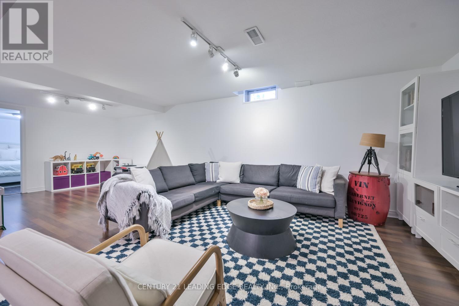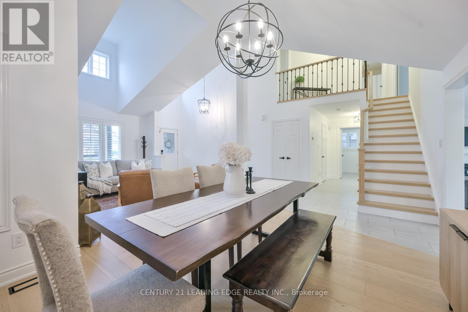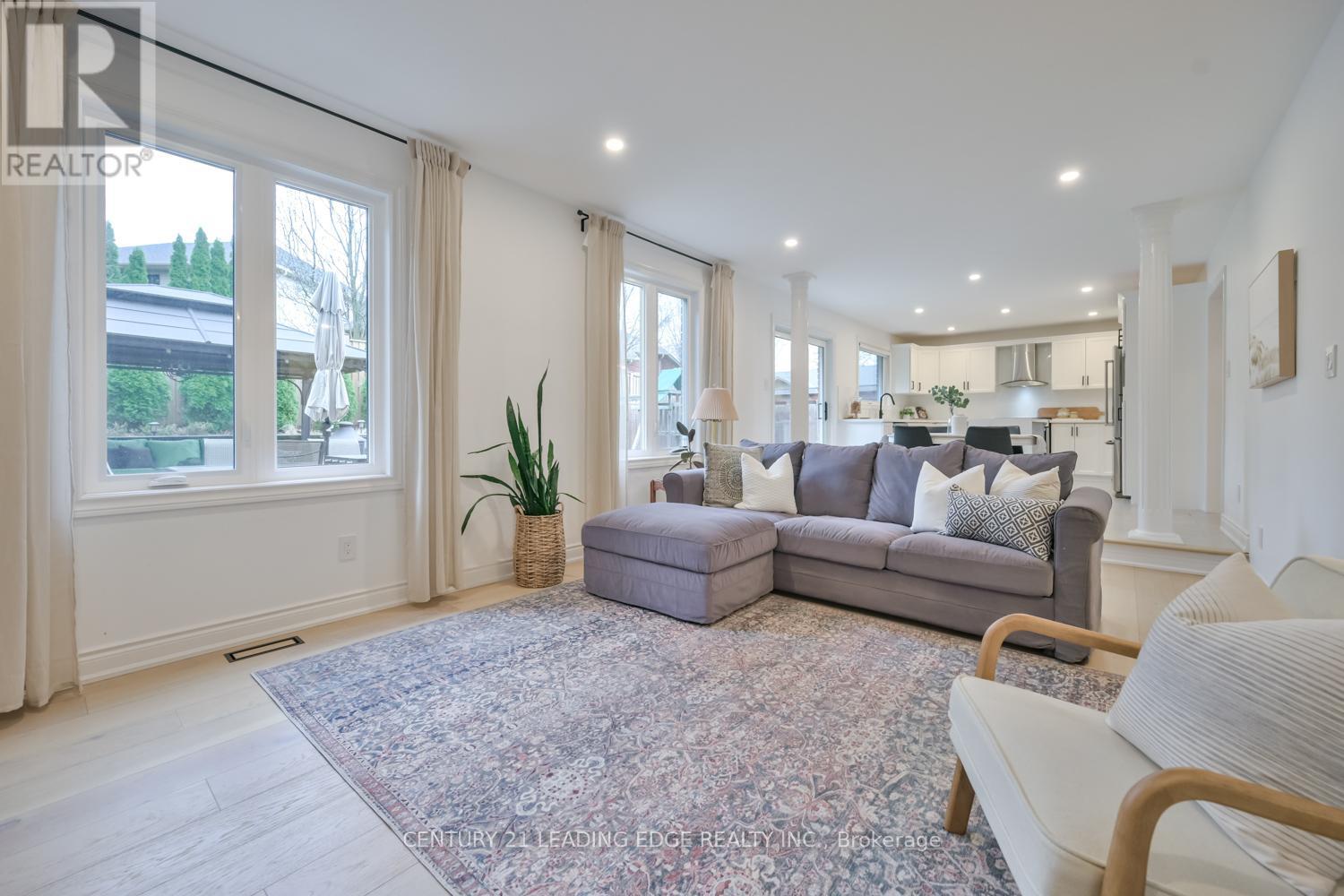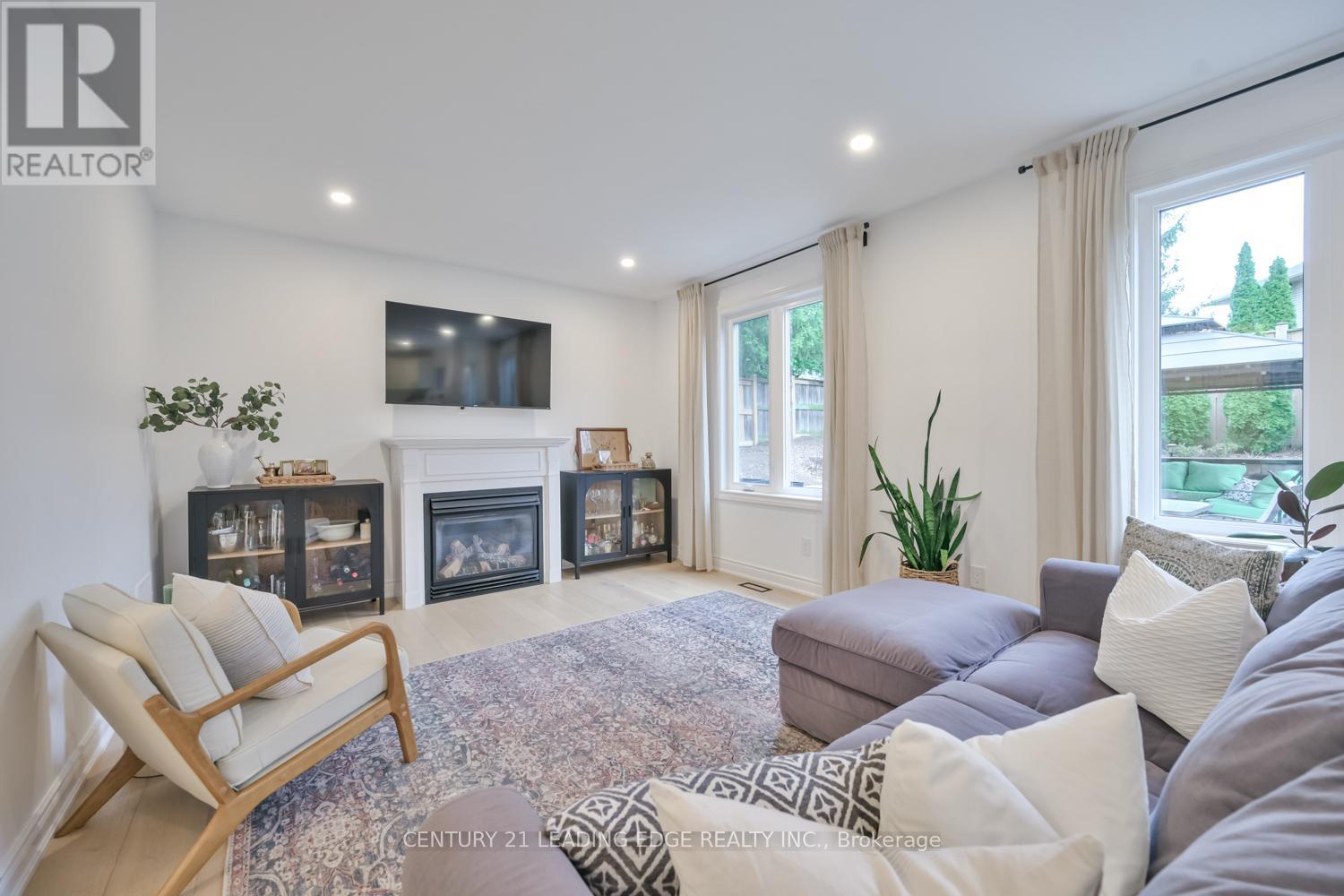 Welcome to this beautifully updated home in the highly sought-after Headon Forest community. Full of charm and curb appeal, this property features a wraparound front porch with sleek glass railings and elegant stone steps. The extra-wide lot provides ample parking with a three-car driveway and two-car garage. Inside, thoughtful updates over the past five years include hardwood floors and stairs with modern metal spindles, newer windows in most rooms, and a new sliding door. The open-concept living and dining area impresses with vaulted ceilings and large windows that fill the space with natural light, creating an ideal setting for gatherings and everyday living. At the rear, enjoy a warm, inviting family space anchored by an updated eat-in kitchen overlooking the cozy sunken family room. A main floor laundry room with garage access and a walk-in closet adds everyday convenience. Upstairs, you will find three generous bedrooms, including a primary retreat with a walk-in closet and a spa-inspired ensuite featuring a walk-in shower and a standalone tub. The finished basement offers incredible versatility with an open recreation and games area, an office or bonus room, a gym, and a three-piece bathroom, perfect for family fun or hosting guests. Step outside to your private backyard oasis, complete with a retaining wall and garden beds, a stone patio, and a gas line for barbecuing, creating the perfect space for outdoor entertaining. Ideally located close to parks, schools, shopping, and everyday amenities, this magnificent move-in-ready home offers comfort, style, and exceptional spaces inside and out for relaxing and entertaining. It is waiting for its next family to enjoy. (id:64974)