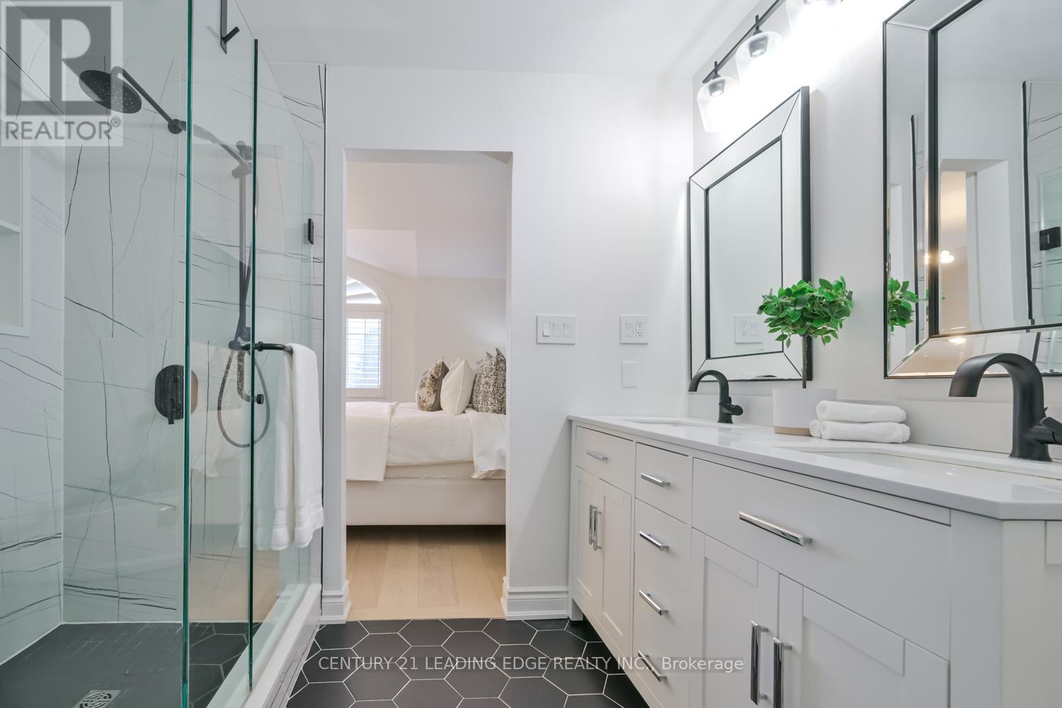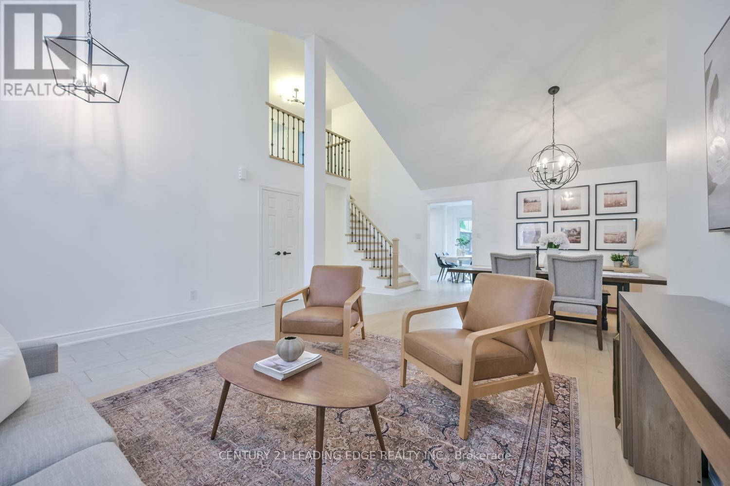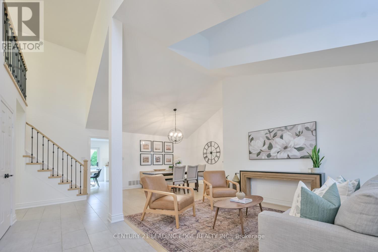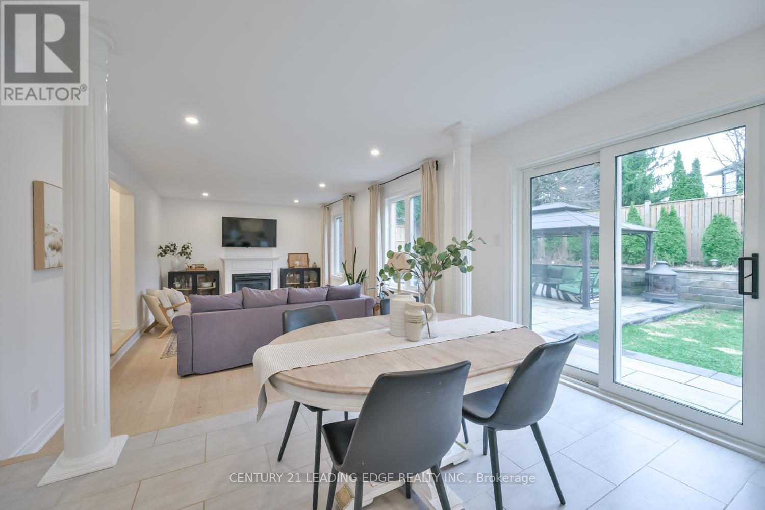 Welcome to this beautifully updated home in the highly sought-after Headon Forest community. Full of charm and curb appeal, this property features a wraparound front porch with sleek glass railings and elegant stone steps. The extra-wide lot provides ample parking with a three-car driveway and two-car garage. Inside, thoughtful updates over the past five years include hardwood floors and stairs with modern metal spindles, newer windows in most rooms, and a new sliding door. The open-concept living and dining area impresses with vaulted ceilings and large windows that fill the space with natural light, creating an ideal setting for gatherings and everyday living. At the rear, enjoy a warm, inviting family space anchored by an updated eat-in kitchen overlooking the cozy sunken family room. A main floor laundry room with garage access and a walk-in closet adds everyday convenience. Upstairs, you will find three generous bedrooms, including a primary retreat with a walk-in closet and a spa-inspired ensuite featuring a walk-in shower and a standalone tub. The finished basement offers incredible versatility with an open recreation and games area, an office or bonus room, a gym, and a three-piece bathroom, perfect for family fun or hosting guests. Step outside to your private backyard oasis, complete with a retaining wall and garden beds, a stone patio, and a gas line for barbecuing, creating the perfect space for outdoor entertaining. Ideally located close to parks, schools, shopping, and everyday amenities, this magnificent move-in-ready home offers comfort, style, and exceptional spaces inside and out for relaxing and entertaining. It is waiting for its next family to enjoy. (id:64974)