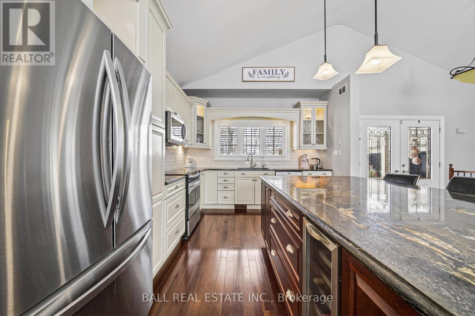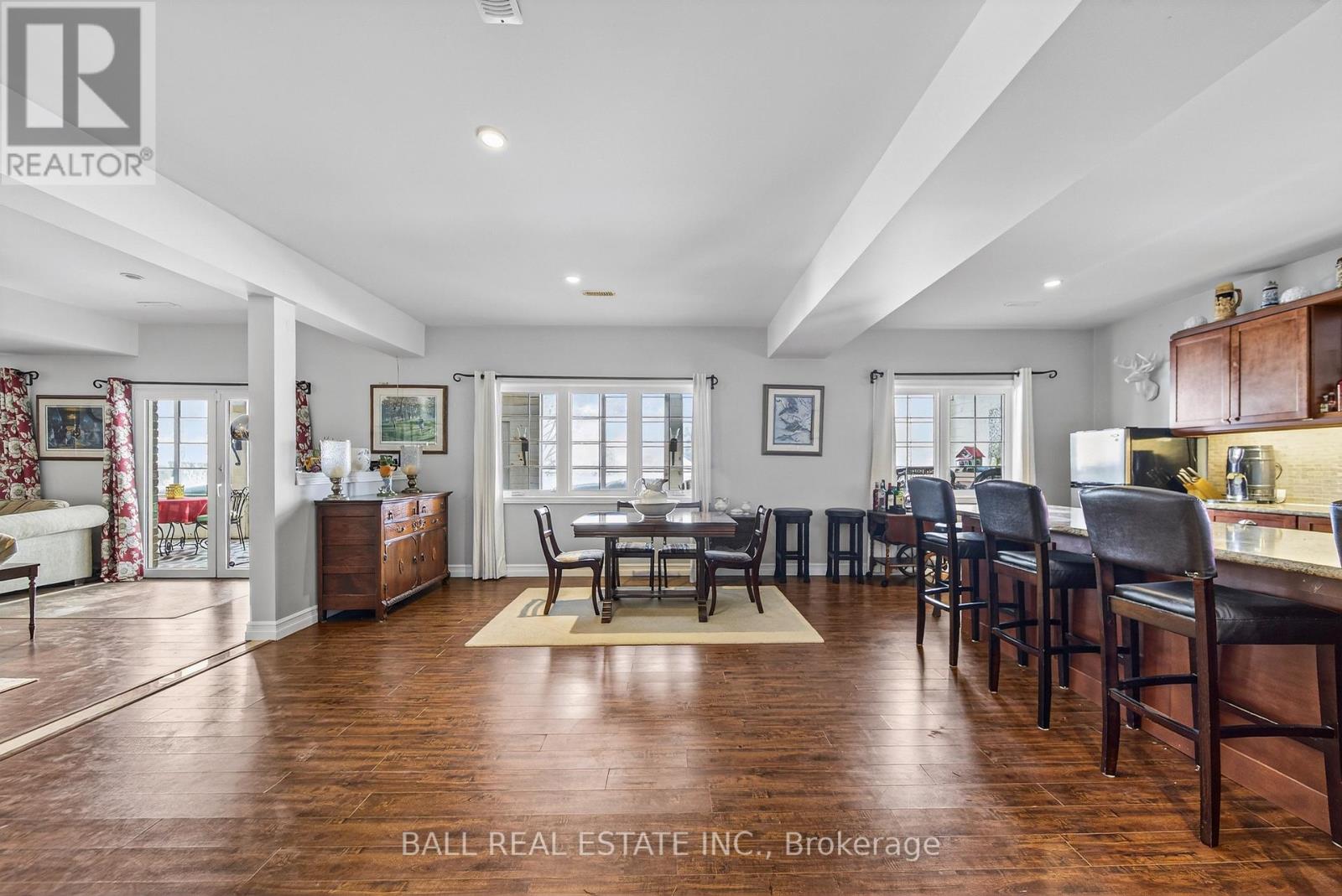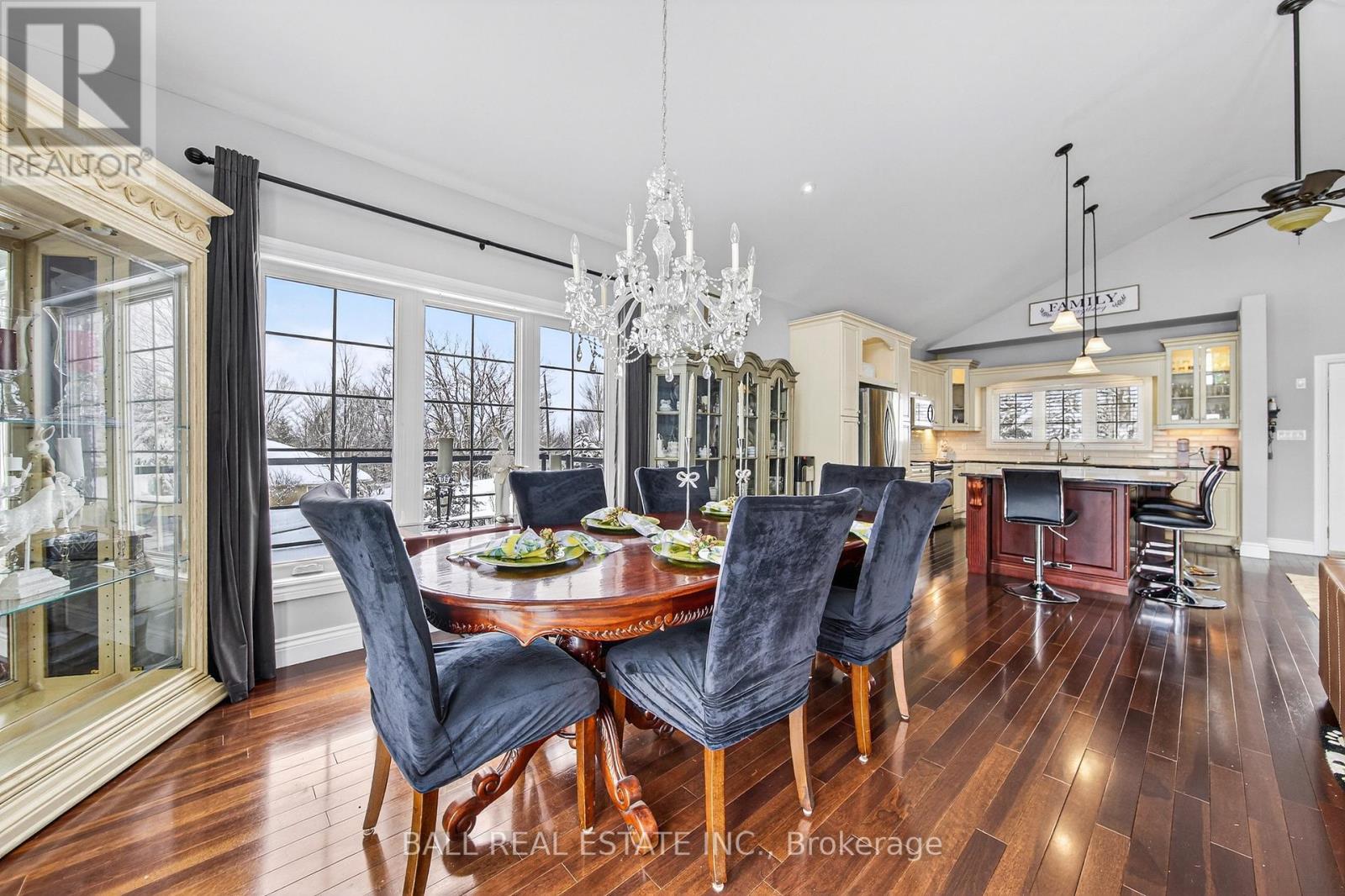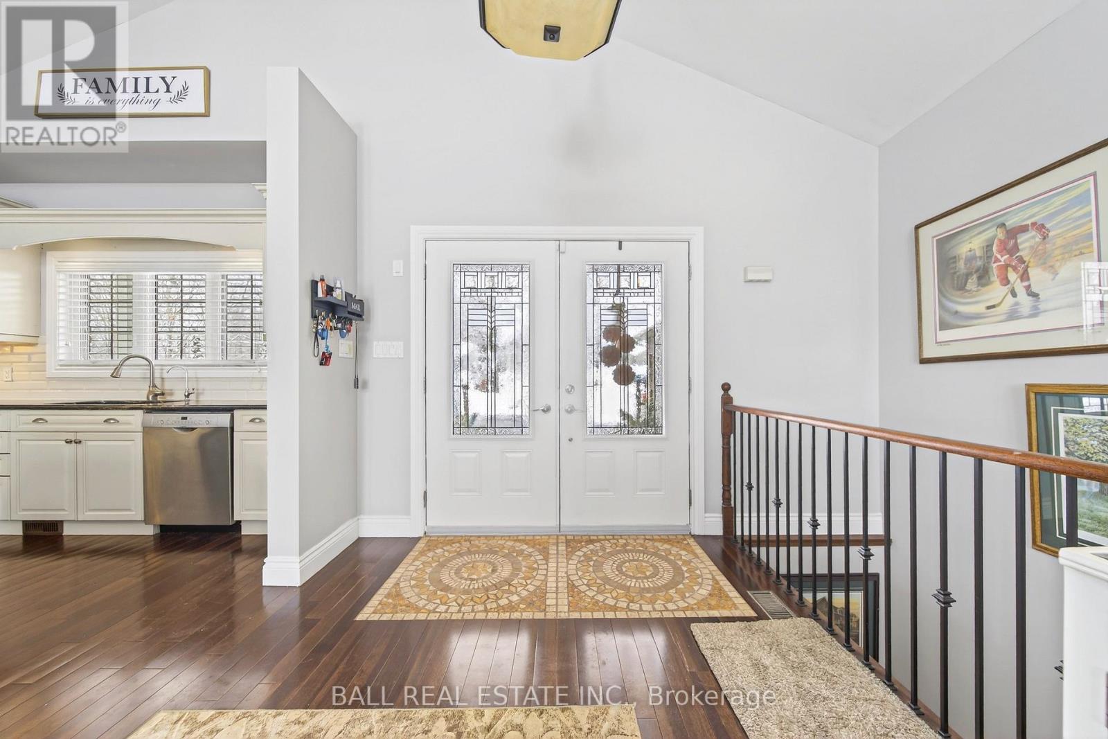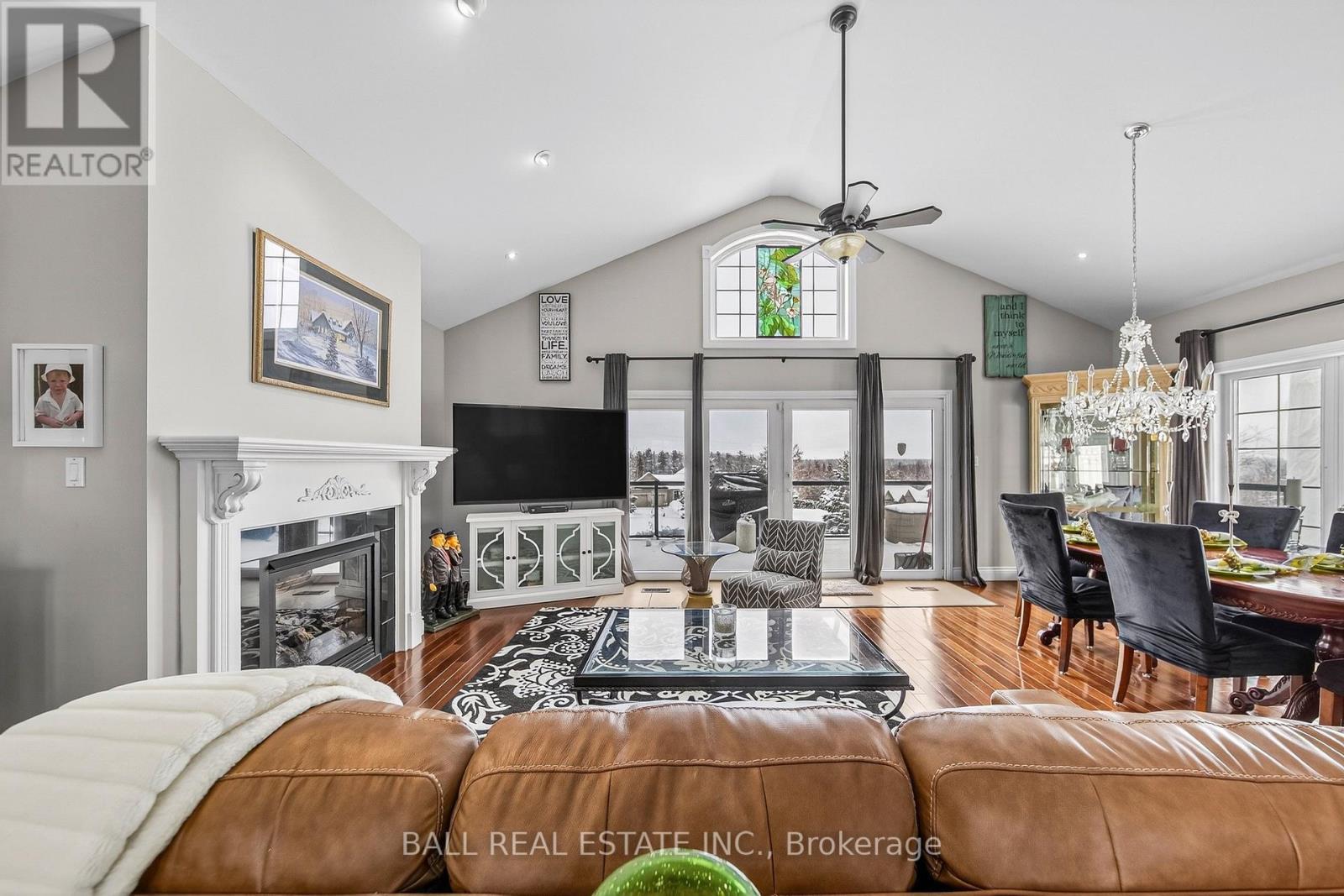 Stunning custom-built brick bungalow set on a private 1.32-acre lot in the desirable enclave of Katchewanooka Court, Young's Point. This exceptional 3-bedroom, 3-bath executive home combines refined finishes, thoughtful design, and breathtaking countryside vistas. A spacious wrap-around deck invites outdoor living and entertaining, while large windows and vaulted ceilings bathe the open-concept main living areas in natural light and showcase long, panoramic views toward Katchewanooka Lake.The heart of the home is a beautifully appointed kitchen featuring custom cabinetry, granite countertops and a generous island that anchors casual dining and socializing. The open-plan living and dining areas flow seamlessly to the deck via walkout doors, creating a bright and airy entertaining space.Designed for multigenerational comfort and flexible living, the walkout lower level provides a second kitchen/wet bar, full bath, and private entrance from the spacious, heated 3 bay garage-ideal for a guest suite, in-law accommodations, or rental potential. Ample storage, functional mudroom access, and tasteful finishes throughout add everyday convenience.Situated just moments from Katchewanooka Lake, 77 acres of protected conservation lands, local shops, and restaurants, and a quick 4-minute drive to the charming village of Lakefield, this home offers a rare combination of serene country living and close-knit community amenities. Perfect for families or buyers seeking elegant, low-maintenance living with versatile, income- or multi-family-ready space. (id:64974)