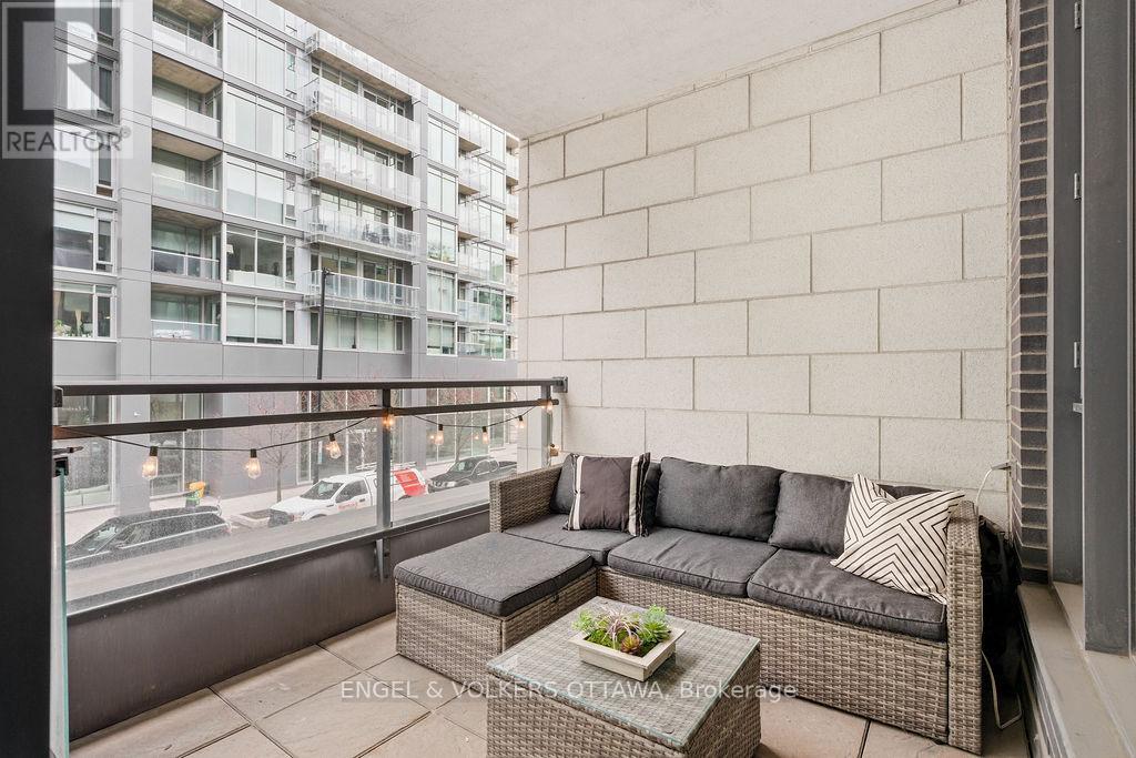 OPEN HOUSE SATURDAY, APRIL 18TH FROM 2-4PM! LARGE 1 bedroom + Study located just steps to Westboro and Wellington Village! This Rarely offered Floor plan features many coveted upgrades from soaring 9'8" ceilings, custom floor-to-ceiling built-in cabinets that span from the foyer to the kitchen, Hunter Douglas Blinds, and an oversized covered south-facing balcony. This 709sqft condo is perfect for those who work from home, but also love entertaining. With a dedicated workspace surrounded by ample storage that leads to an open concept layout. The gourmet kitchen impresses with all-white cabinetry, white quartz countertops, high end appliances including a Samsung Fridge, Fisher & Paykel Dishwasher, and Electrolux Stove. The 7'6" island offers seating for 4 - ideal for entertaining or casual meals. The living/dining is spacious with proper space for a couch and T.V, along with room for a 4-6 person dining table. Step outside onto the oversized, south-facing covered balcony (76sqft) to enjoy sunlight, fresh air, or 3-season entertaining. The primary bedroom has blackout Hunter Douglas blinds and custom built-in storage in the closet. The bathroom has an upgraded glass shower and a built-in cabinet. Amazing location - live just a 10 min walk to Lululemon, Equator Coffee, and top rated restaurants. Or, a 10 min stroll to the amenities along Wellington St. 1 underground parking (P3-114), 1 Storage Locker (P2-39) and 1 Bike Rack Included! Amenities include: Gym, Theatre Room, Party Room, Car Wash Bay, Pet Wash, and Rooftop Terrace with BBQs! Minutes from Bicycle Trails, Parks & Ottawa River Parkway. (id:64974)