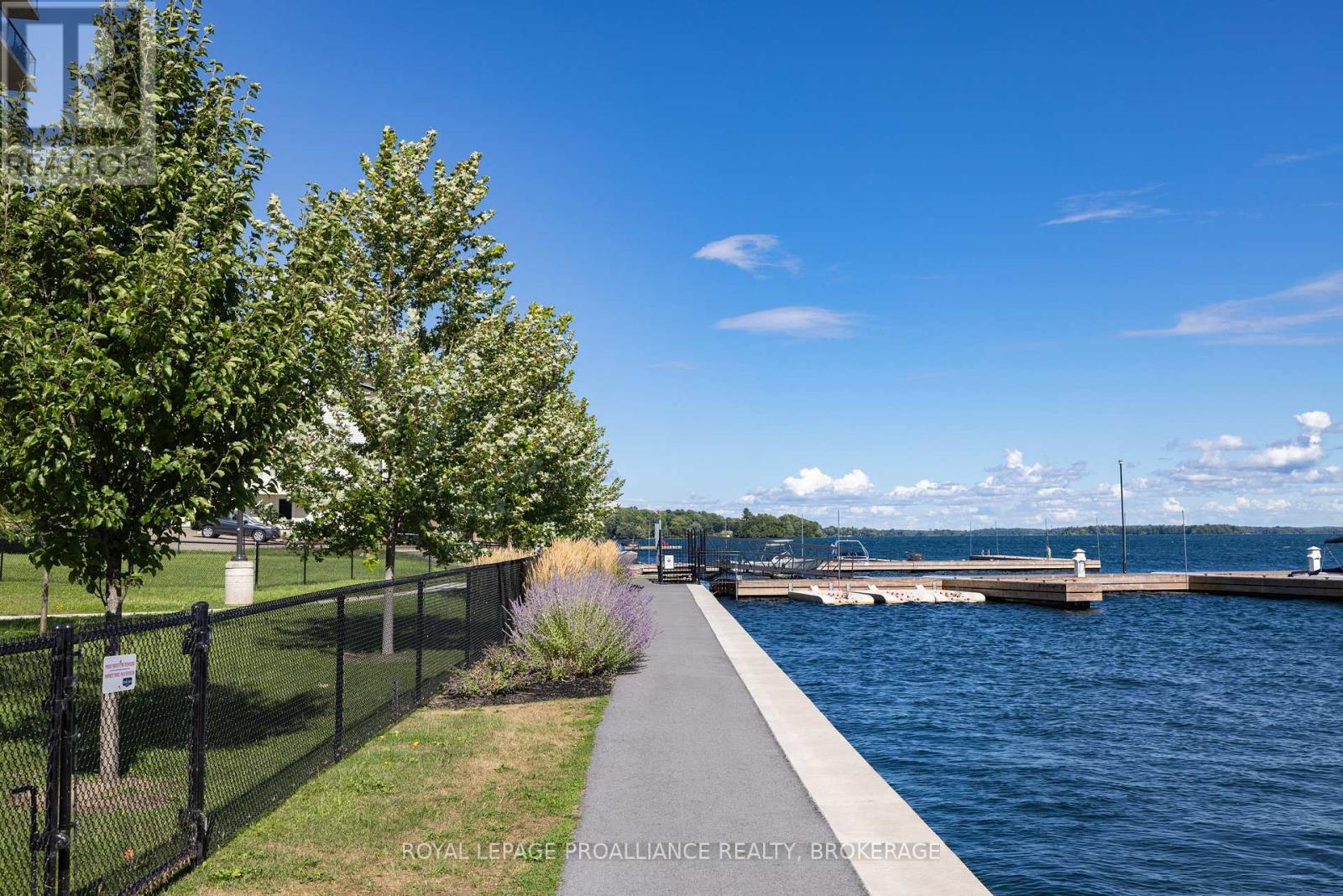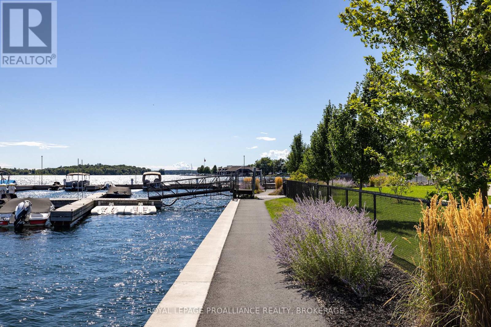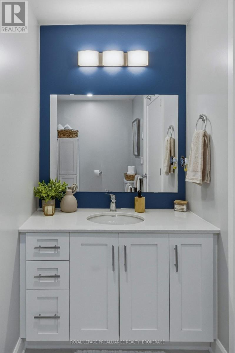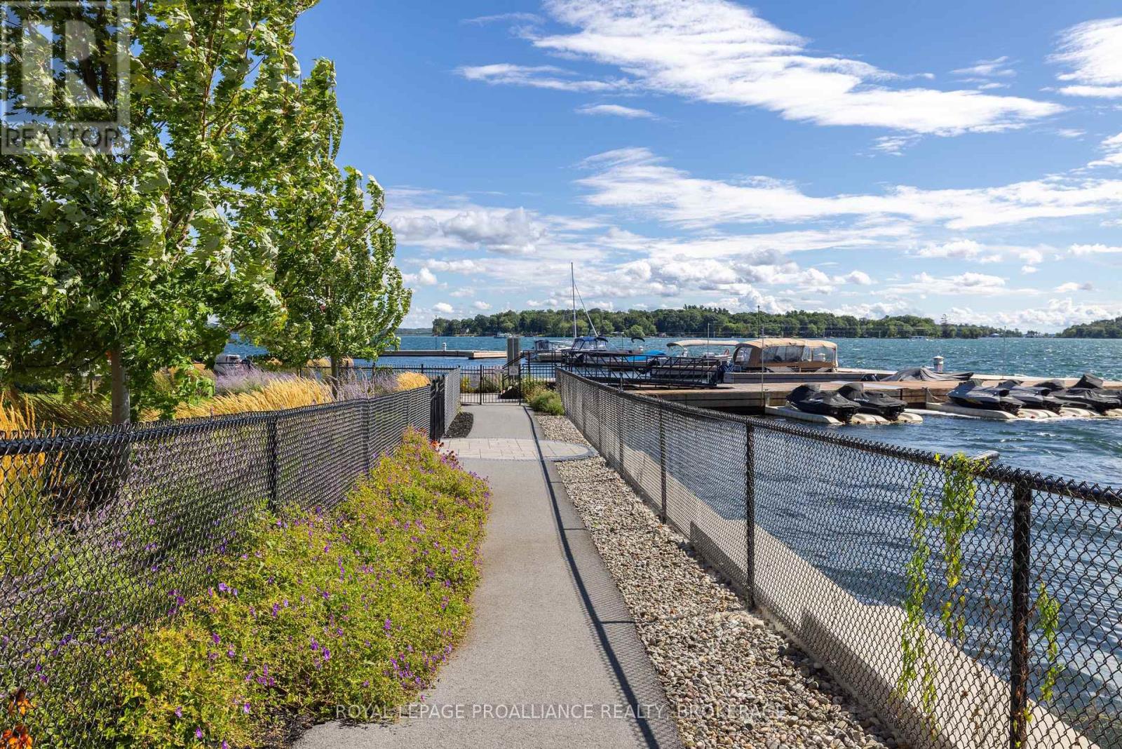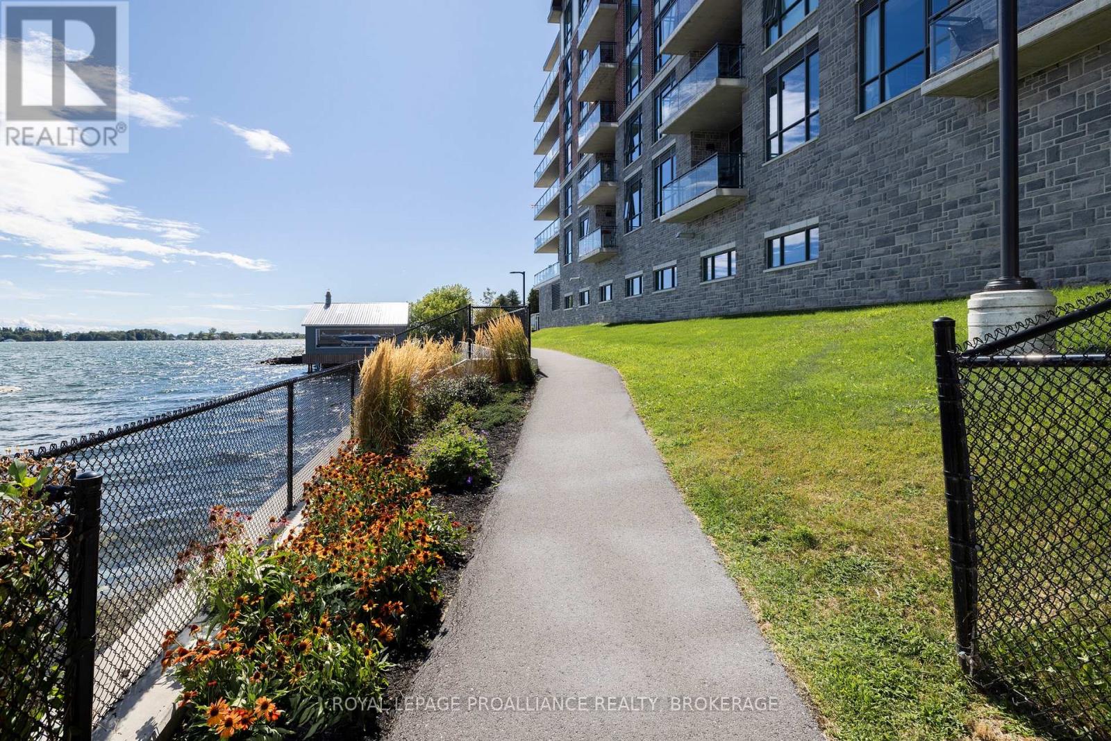 Welcome to carefree waterfront living Gananoque, nestled along the stunning St. Lawrence River. This beautifully appointed 1-bedroom plus den condo offers an exceptional lifestyle in a newer, upscale building just steps from the water.Designed with comfort and style in mind, the open-concept layout features an upgraded kitchen with quality finishes, seamlessly flowing into the bright living and dining areas. Engineered hardwood floors run throughout, creating a completely carpet-free space that is both elegant and easy to maintain. The spacious primary bedroom is complemented by a full ensuite bathroom, while a convenient powder room adds flexibility for guests. The den provides the perfect spot for a home office, reading nook, or overnight visitors.Residents enjoy outstanding amenities, including a waterfront park and scenic walking trail, a well-equipped gym, and a fantastic community party room complete with a pool table and full kitchen - ideal for entertaining. A communal BBQ area invites outdoor gatherings, and secured underground parking offers added convenience and peace of mind.All of this within walking distance to the waterfront, the renowned Thousand Islands Playhouse, as well as local restaurants and boutique shops.An exceptional opportunity to enjoy low-maintenance living in one of Eastern Ontario's most picturesque communities. Please note: property taxes are currently being reassessed and are expected to be reduced - contact the listing agent for further details. (id:64974)