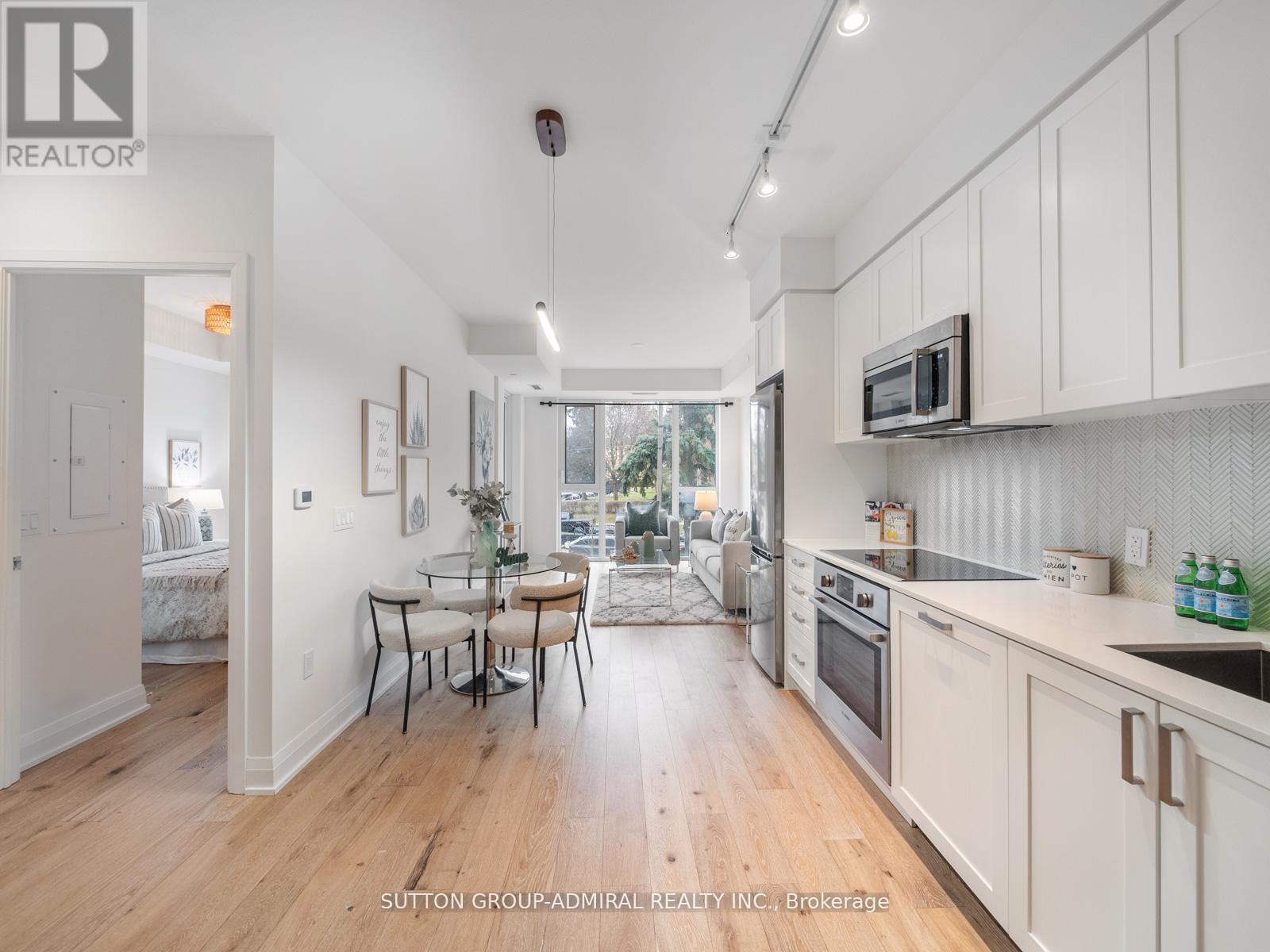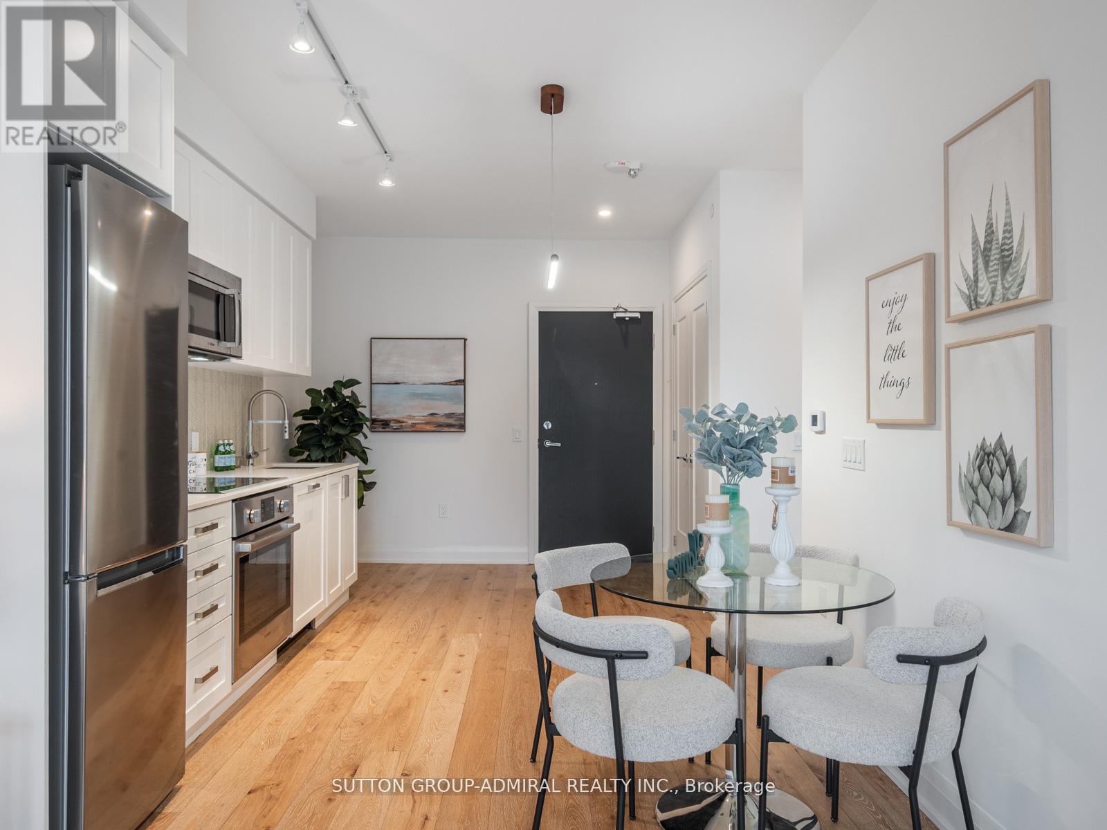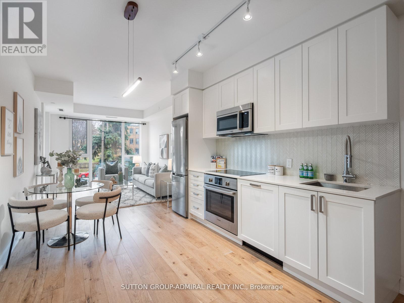Welcome to 293 The Kingsway Unit 218. Indulge in a refined lifestyle at this opulent condominium development, offering A+ amenities and exceptional service plus the largest private fitness studio in the area. The 1 bed - 1 bath floor plan is functional and complimented by high-end finishes that exude quality. Step inside to discover custom flooring and floor-to-ceiling windows that bathe the space in natural light. The herringbone backsplash adds a touch of elegance to the kitchen, which boasts stainless steel appliances and rich cabinetry. But that's not all; an expansive rooftop terrace provides the perfect setting for delightful gatherings with friends and family. When it's time to unwind, retreat to cozy lounges for the ultimate relaxation spot. Just moments away from the vibrant heart of Bloor West Village, you can enjoy coffee dates at charming cafes or take scenic bike rides along the riverside & Humbertown Shopping Centre a stone's throw away. (id:64974)