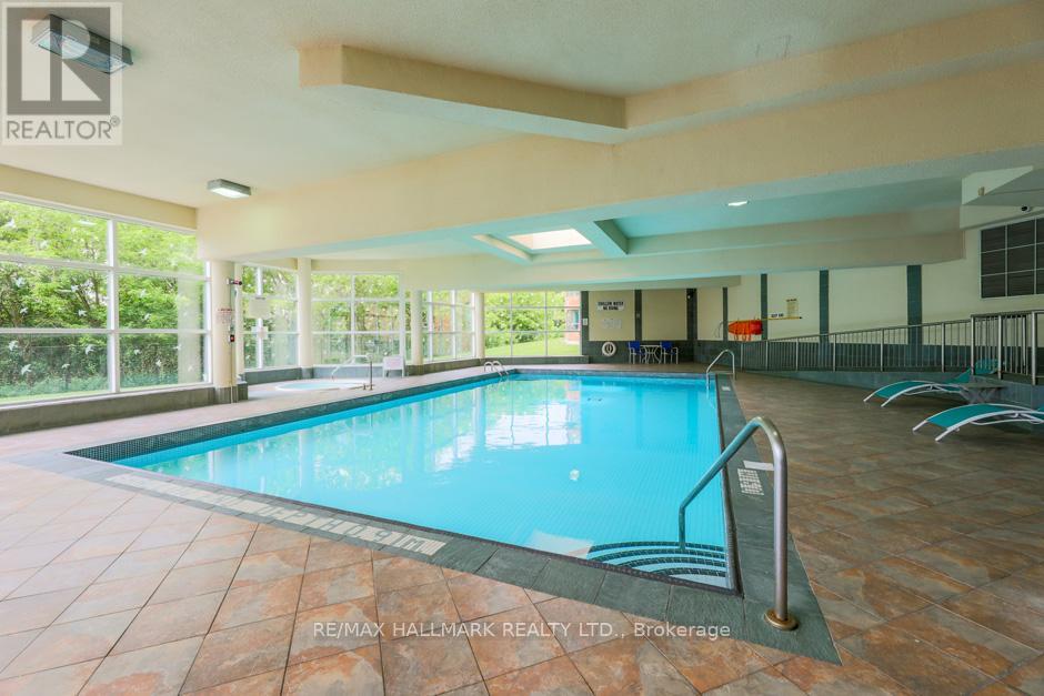 This exceptional suite showcases one of the most desirable floor plans in the building. With a spacious layout of 800 plus square feet, it features a well designed one bedroom plus den configuration that maximizes natural light and living space.The modern kitchen is both practical and aesthetically pleasing, equipped with stainless steel appliances and a convenient breakfast bar. Elegant hardwood flooring throughout the unit enhances its warmth and sophistication. The generously sized bedroom includes a walk-in closet and an updated, spa-like four-piece bathroom, providing a tranquil retreat. Additionally, the suite offers the convenience of a private ensuite laundry facility.This is an excellent opportunity for first-time buyers, downsizers, or investors, with one designated parking spot and an owned locker for extra storage.Residents benefit from a wide range of outstanding amenities, including an indoor pool, hot tub, sauna, gym, library, party room, games room, outdoor patio, and bike storage. The presence of a dedicated security guard contributes to a safe and secure living environment.Furthermore, this prime location allows for easy access to public transportation, esteemed schools, parks, major highways, the picturesque Humber River, and scenic trails. This combination of features renders the property a highly valuable option for individuals seeking quality living within a vibrant community. (id:64974)
