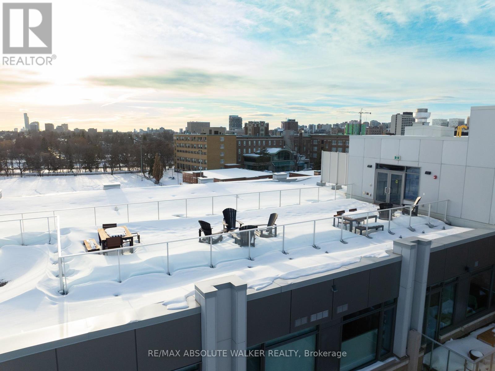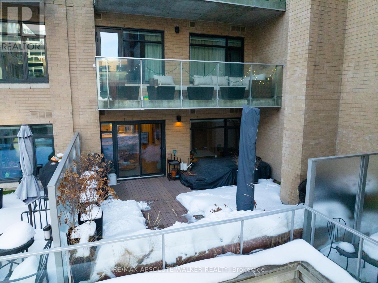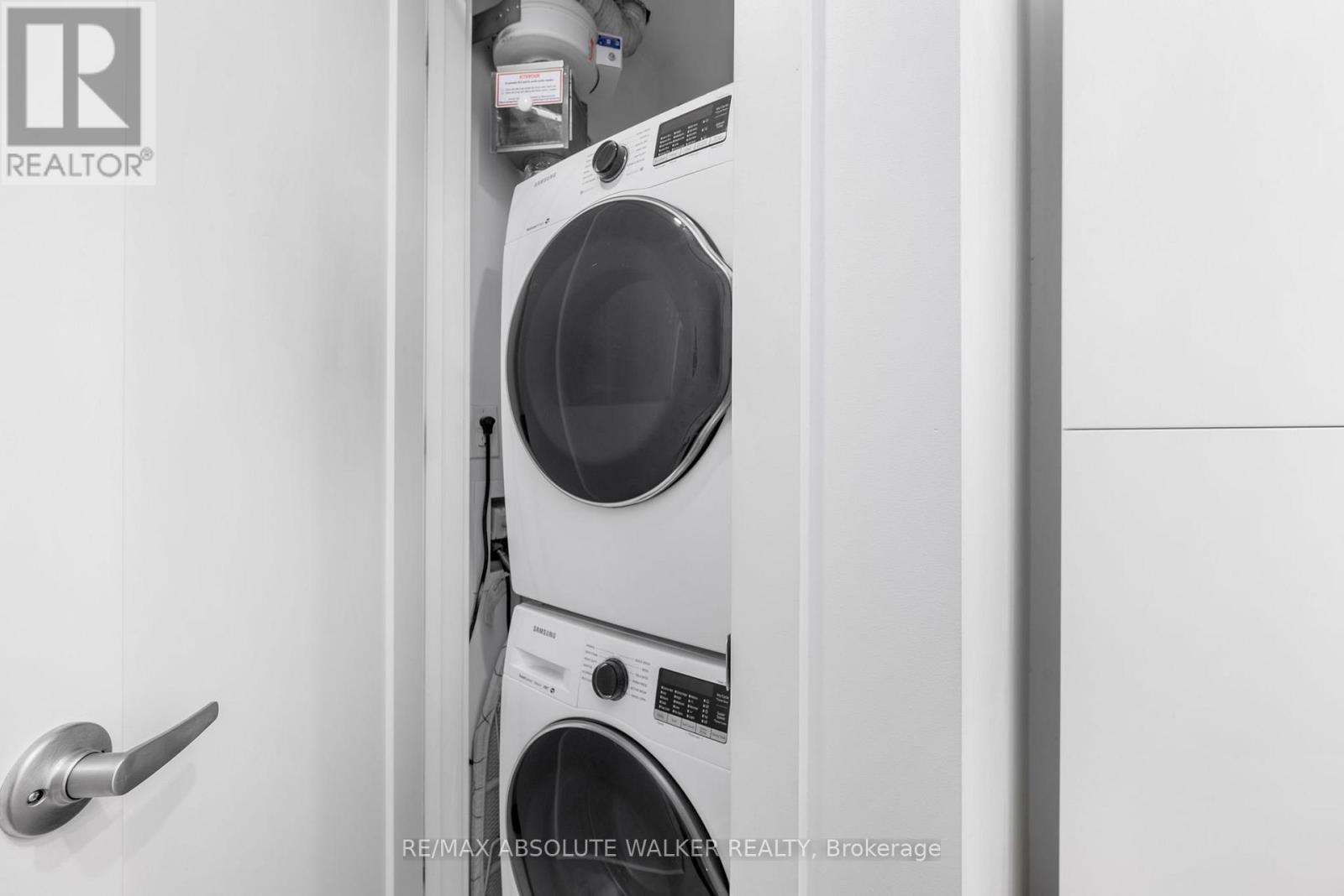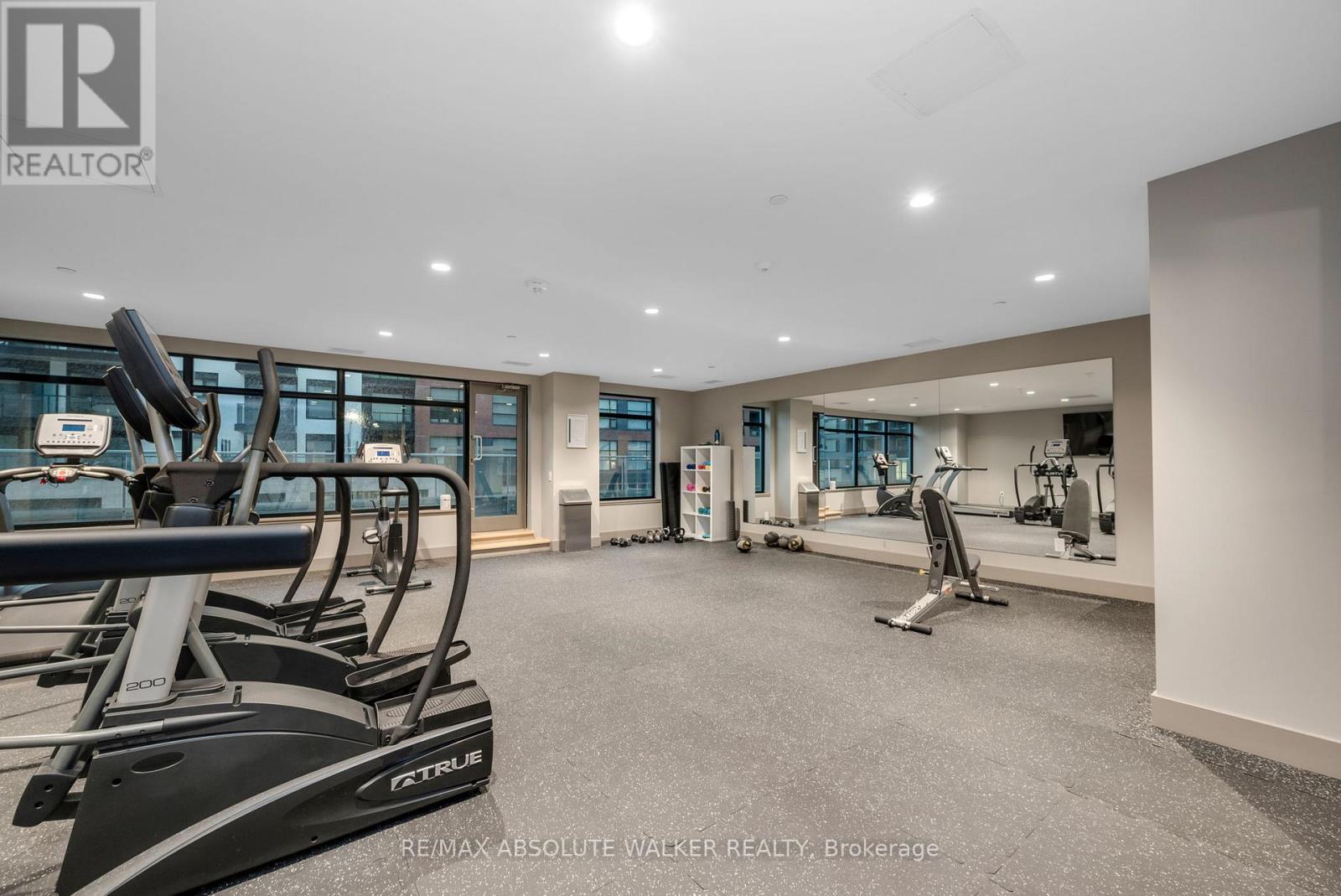 Live where convenience meets contemporary style at The Corners on Main. Built by Domicile, this bright and spacious 850 sq ft Harvey model offers one bedroom, two bathrooms, and thoughtfully curated upgrades throughout. High ceilings and oversized windows flood the space with natural light, while the upgraded kitchen steals the spotlight featuring quartz countertops, a chic herringbone backsplash, premium cabinetry with added storage at the island, and high-end appliances. A custom wine fridge seamlessly integrated into the pantry adds both function and flair. An extraordinary 400 sq ft private terrace is a standout feature, ideal for morning coffee, summer evenings, and entertaining under the stars. Convenience continues with exceptional amenities located on the same floor, including a fully equipped fitness room, stylish party room, guest suite, and a rooftop terrace. Underground parking and a storage locker provide added ease and practicality. All just steps from vibrant cafés, restaurants, green space, and the canal, this is urban living without compromise. Condo fees include building insurance, property management, maintenance, and reserve fund. (id:64974)