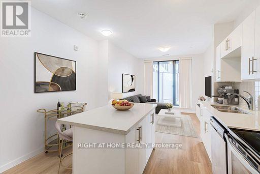 Experience life at Midtown Lofts in this boutique building located between Uptown Waterloo and Downtown Kitchener. This modern One bedroom & Den features 9' ceilings, brand new laminate flooring, new cabinetry, center kitchen island with quartz countertops, stainless steel appliances and a large bedroom. A versatile den with a barn-style sliding door adds functional space, complemented by a private balcony and ensuite laundry. Building amenities include a fitness center and rooftop terrace. Conveniently located close to LRT, Hospitals, Retail and more. (id:64974)