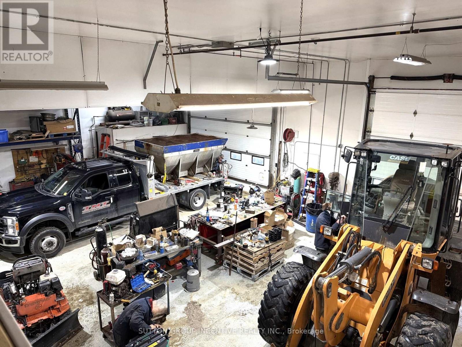 Building Size: 3,200 sq ft main floor + 1,040 sq ft mezzanine (860 sq ft finished). Parking: Gravel lot accommodates 8 vehicles at front; additional space on west and east sides. Office Area (770 sq ft)- Reception desk and waiting area at front entry- 2 offices, file area, 2-piece washroom- Carpet floors, painted drywall walls, 9' ceilings, recessed LED lighting- Ceramic tile in washroom- In-floor heating and A/C, Staff Kitchen- Concrete floors, painted drywall walls, 9' ceilings, LED lighting- In-floor heating- Access from office area or shop. Shop (2,430 sq ft)- Two bays with three roll-up doors: 2 at 12' 14', 1 at 14' 14' Concrete floors, painted drywall walls, 18' ceilings, hanging LED lighting- In-floor heating with back-up overhead gas furnace- Includes: office (SE corner), parts room, 2-piece washroom, electrical room- Washroom finished with ceramic tile, 8' ceilings, LED lighting. Air Exchanger, Ac, Oil Grid Separator, Alarm System, In Floor Boiler System. Mezzanine (1,040 sq ft)**Finished (860 sq ft):**- Office (200 sq ft): carpet, painted drywall, 7' ceilings, LED lighting- 3-piece washroom and boardroom (660 sq ft): industrial vinyl flooring, painted drywall, 7'ceilings, recessed LED lighting. Unfinished (180 sq ft): - Storage Access: Front parking lot entry to office and shop; interior stairs to mezzanine. Security, fire/smoke alarm systems, , exterior lighting. (id:64974)