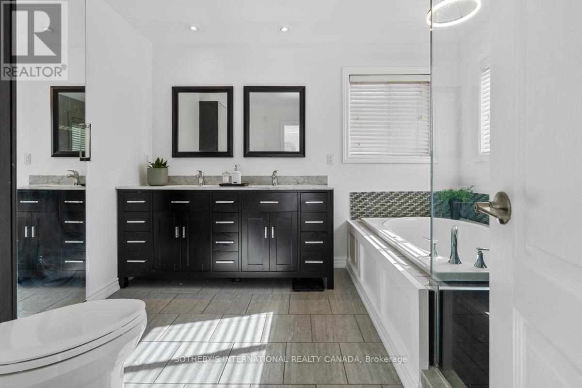 Absolutely Stunning Family Home in Sought-After Westmount! Welcome to 2182 Meadowglen Drive, an elegant 4+1 bedroom, 4 bathroom detached home nestled on a spacious lot in one of Oakville's most desirable family-friendly neighborhoods. This residence combines timeless charm with modern upgrades, offering the perfect blend of style, comfort, and functionality. Step inside to a bright and inviting main floor featuring hardwood floors, crown moldings, pot lights, and a cozy gas fireplace. The chef-inspired kitchen boasts stainless-steel appliances, a gas stove, stylish backsplash, and ample cabinetry, perfect for everyday living and entertaining. Upstairs, you'll find generously sized bedrooms with upgraded primary ensuite, a jacuzzi tub, stand-up shower, and custom cabinetry. The professionally finished basement extends the living space with a bedroom, full bath, office, and large recreation area. The bathroom is equipped with a heat timer, and the rec area is wired for speakers, creating the ultimate home entertainment hub. Outdoors, the property has been transformed into a private oasis with a newly added full backyard featuring a gazebo, a sparkling heated salt water swimming pool, hot tub, stamped concrete walkways, and rough-ins for an outdoor kitchen-ideal for hosting family gatherings or relaxing summer evenings. A deck and garden shed complete the picture-perfect setting. With no sidewalk out front, there's extra parking space on the stamped concrete driveway. the best rated schools in the area as well as hospitals, library and public transportation nearby. Just minutes to Neyagawa Park, Lions Valley Park, and Sixteen Mile Creek trails, offering lush green spaces and walking paths. Quick access to major highways (QEW, 403, 407), GO transit, shopping at Oakville Place Mall, restaurants, and everyday amenities. A safe, established neighborhood with a strong sense of community, perfect for families! (id:64974)