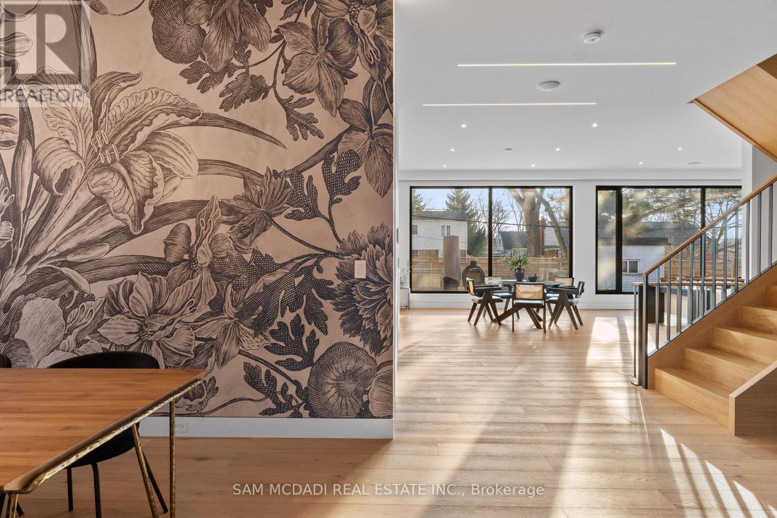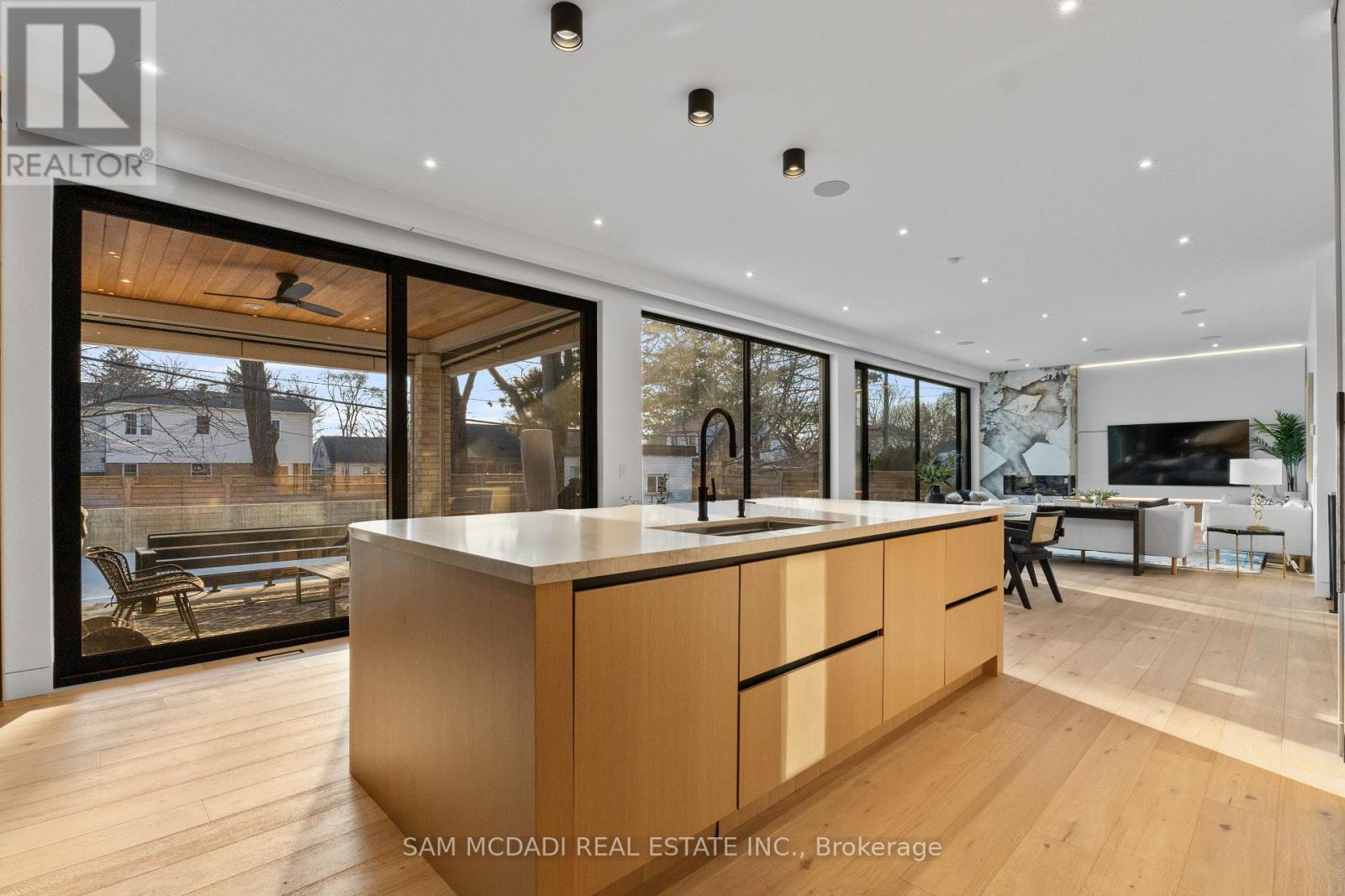 Welcome to 2186 Harcourt Crescent, an architectural triumph in the heart of Lakeview. Completed in 2023, this residence offers 5700 sqft of impeccably curated living across three beautifully finished levels. This 4+1 bedroom, 5.5 bath home is a masterclass in craftsmanship and innovation. A dramatic 44-inch custom mahogany front door opens to a grand foyer with large-format porcelain tile and soaring 10-foot ceilings. The main and upper levels feature wide-plank white oak floors, while premium porcelain tile enhances all baths. Integrated vents, flush-mount baseboards, and seamless trims create a refined, gallery-like aesthetic throughout. Custom white oak doors and a striking architectural white oak staircase with custom-forged railing anchor the home's modern elegance. Custom millwork showcases a curated mix of Rift Cut White Oak and state-of-the-art AGT matte-finish cabinetry, known for its anti-fingerprint and antibacterial properties. Caesarstone quartz surfaces elevate the chef's kitchen, butler's pantry, custom bar, and all bathrooms. The kitchen is a true centerpiece, featuring a curved oversized island and hood vent clad in rift cut white oak, matte porcelain backsplash, and premium panelled appliances. A stunning 12' x 9' sliding glass door opens to the covered patio, complete with motorized screens, gas fireplace, media connectivity, and built-in Hestan BBQ, offering a true three-season retreat. The fully finished lower level includes an additional bedroom with ensuite, glass-enclosed gym, rec room, custom wet bar, steam shower, and walk-up access to the backyard. Outdoors, enjoy a 35' x 15.8' Barrier Reef fiberglass pool with integrated lounger, WiFi-enabled controls, and maintenance-free turf. Enhanced by expansive European aluminum windows, Control4 smart system, theatre-grade surround sound, spray foam insulation, built-in alarm system, motorized main floor blinds and more, this extraordinary residence delivers uncompromising luxury and peace of mind. (id:64974)