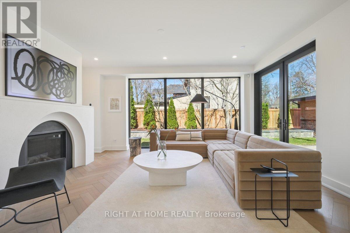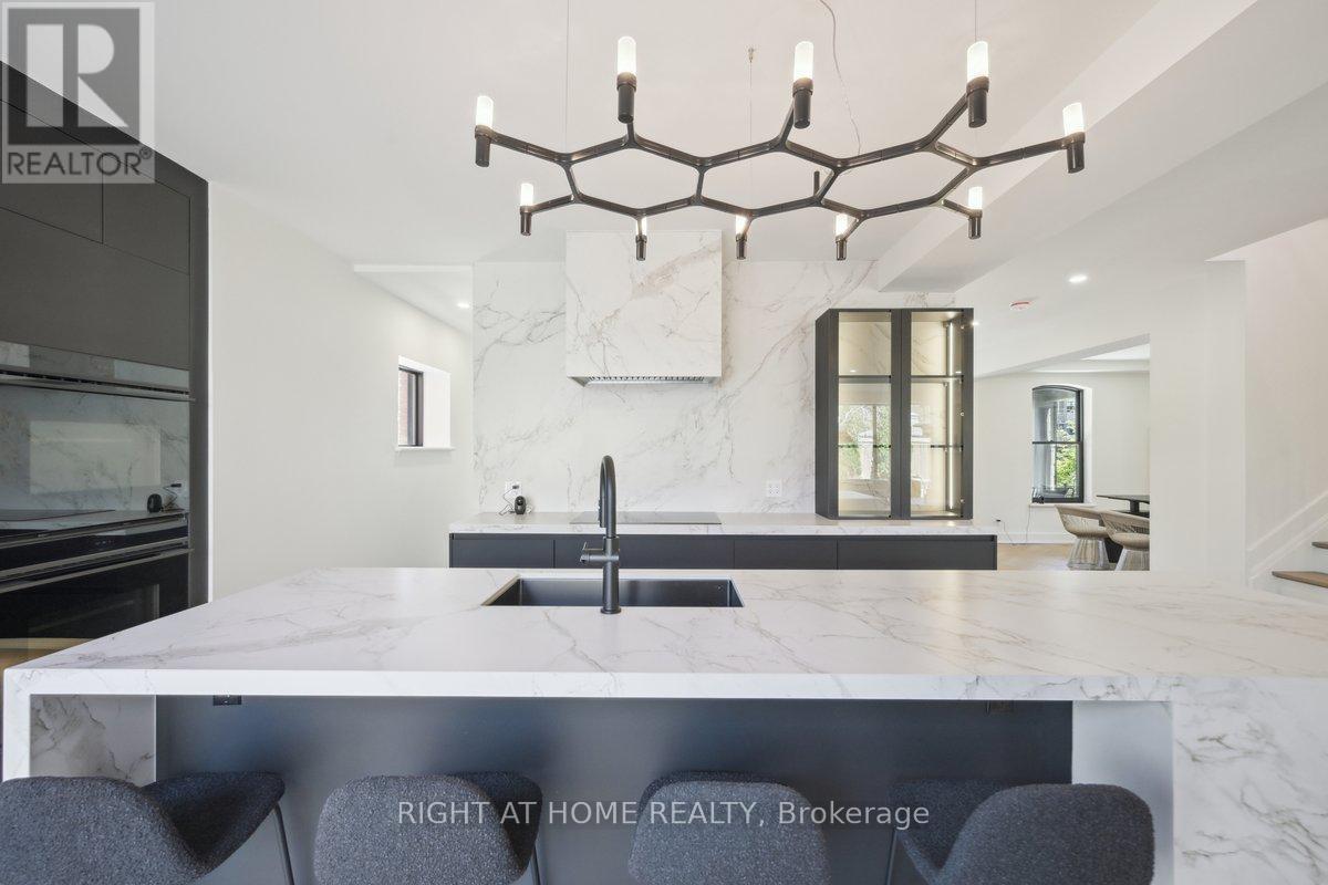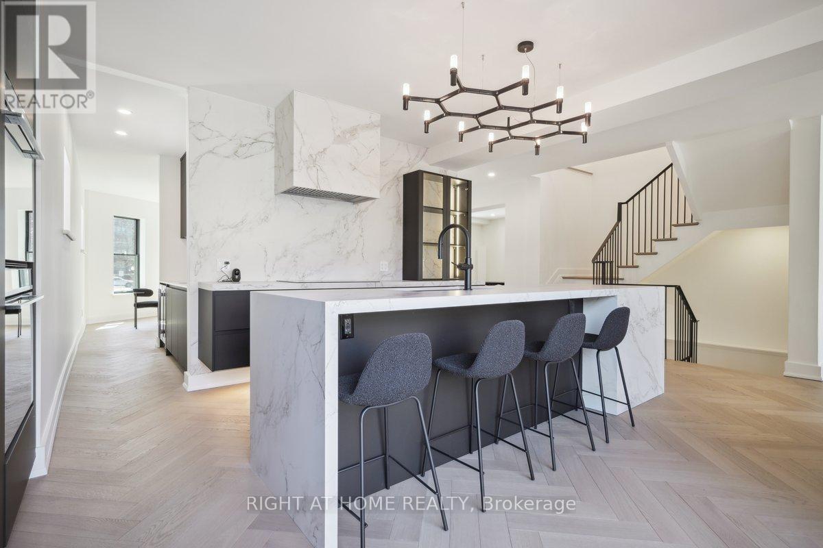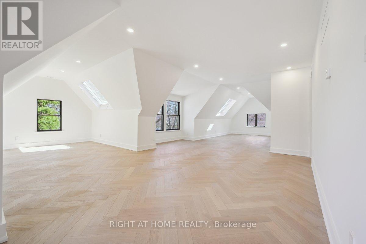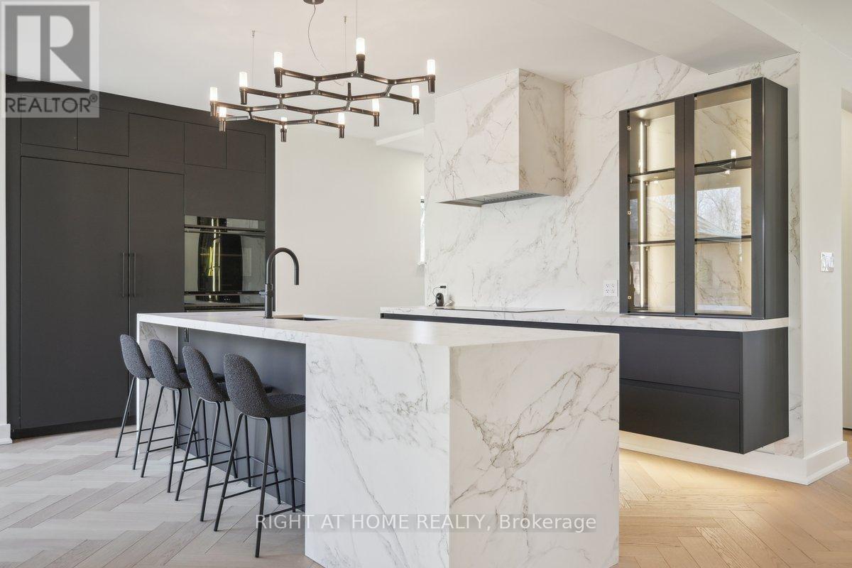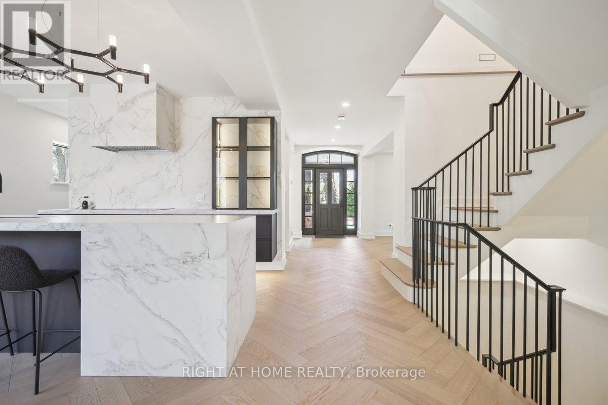 Completely renovated show home in the heart of Burlington. Set on a rare 86 x 150 ft lot, this iconic residence offers over 4500 sq. ft. of luxury living. A perfect blend of timeless design and modern elegance, featuring chevron hardwood, custom cabinetry, and designer finishes throughout. The main floor boasts a chef's kitchen with oversized waterfall island, built-in appliances, and servery, flowing seamlessly to the formal dining room, office, and family room with floor-to-ceiling windows and gas fireplace. Upstairs, three oversized bedrooms each offer private ensuites and built-ins. The third level impresses with a skylit lounge plus two additional bedrooms, both with ensuites. A rare opportunity to own a truly Luxury Certified home in one of Burlington's most coveted locations. (id:64974)