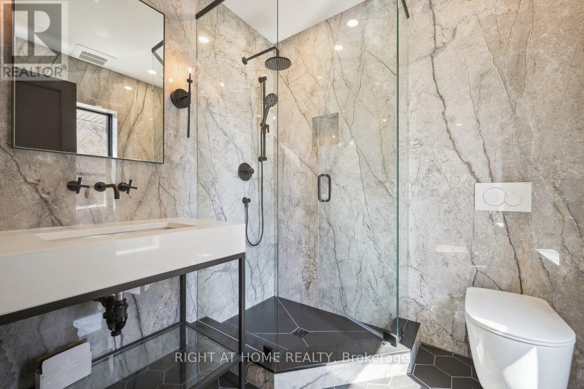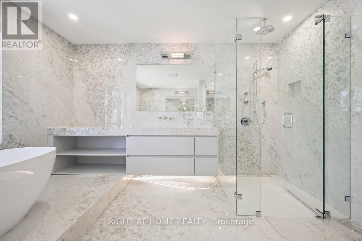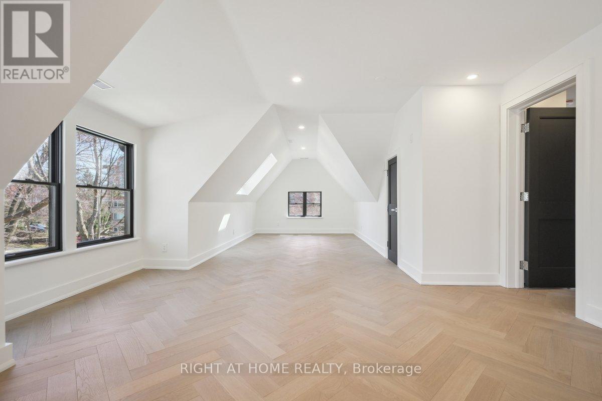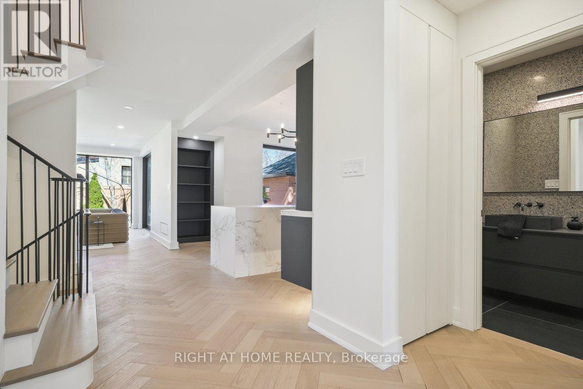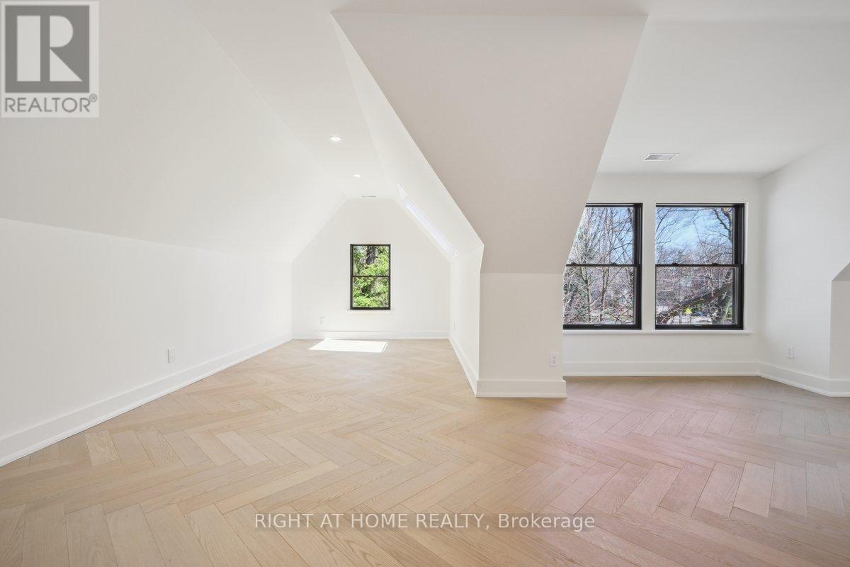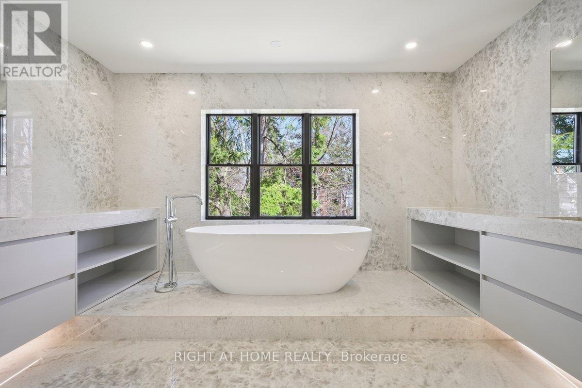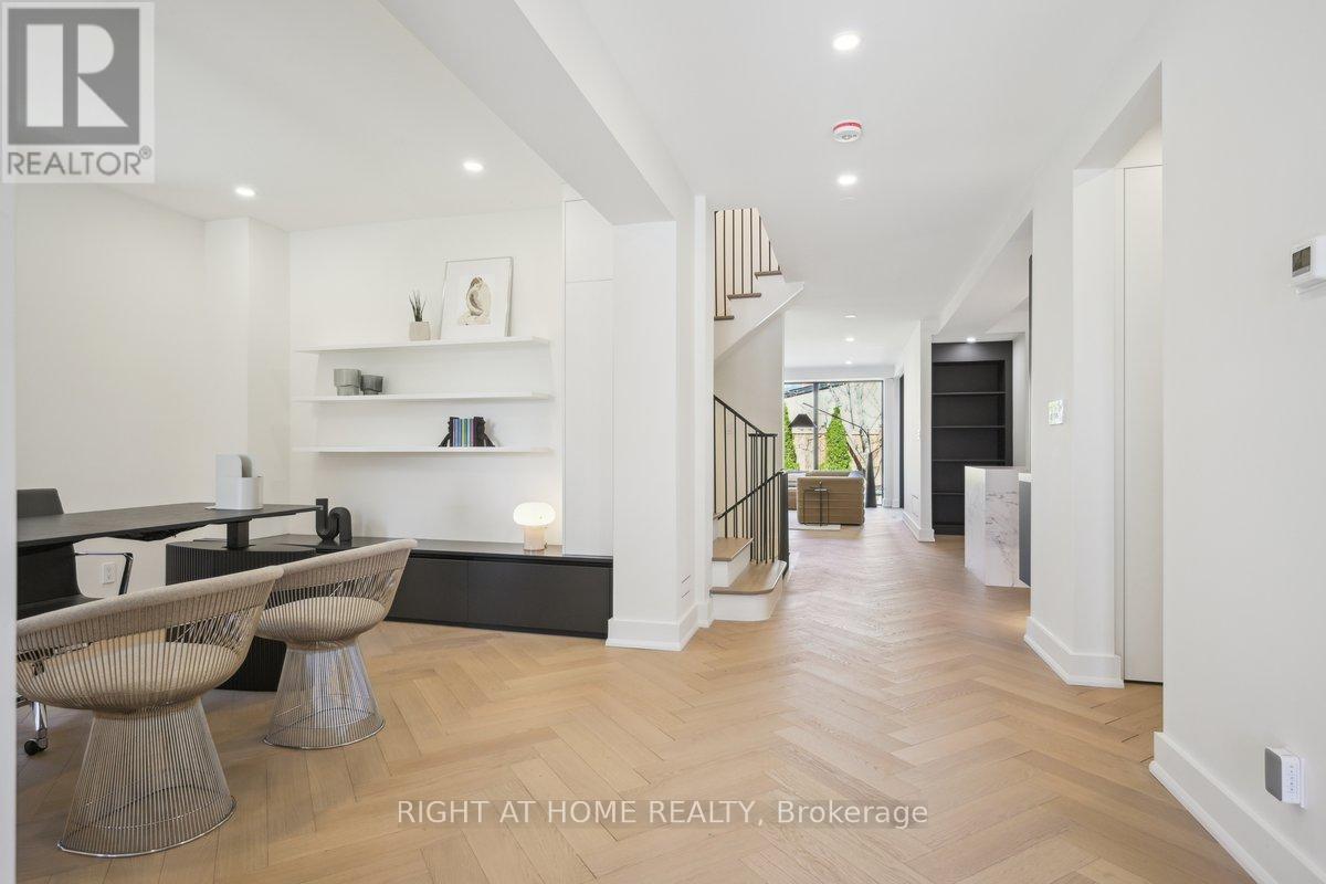 Completely renovated show home in the heart of Burlington. Set on a rare 86 x 150 ft lot, this iconic residence offers over 4500 sq. ft. of luxury living. A perfect blend of timeless design and modern elegance, featuring chevron hardwood, custom cabinetry, and designer finishes throughout. The main floor boasts a chef's kitchen with oversized waterfall island, built-in appliances, and servery, flowing seamlessly to the formal dining room, office, and family room with floor-to-ceiling windows and gas fireplace. Upstairs, three oversized bedrooms each offer private ensuites and built-ins. The third level impresses with a skylit lounge plus two additional bedrooms, both with ensuites. A rare opportunity to own a truly Luxury Certified home in one of Burlington's most coveted locations. (id:64974)