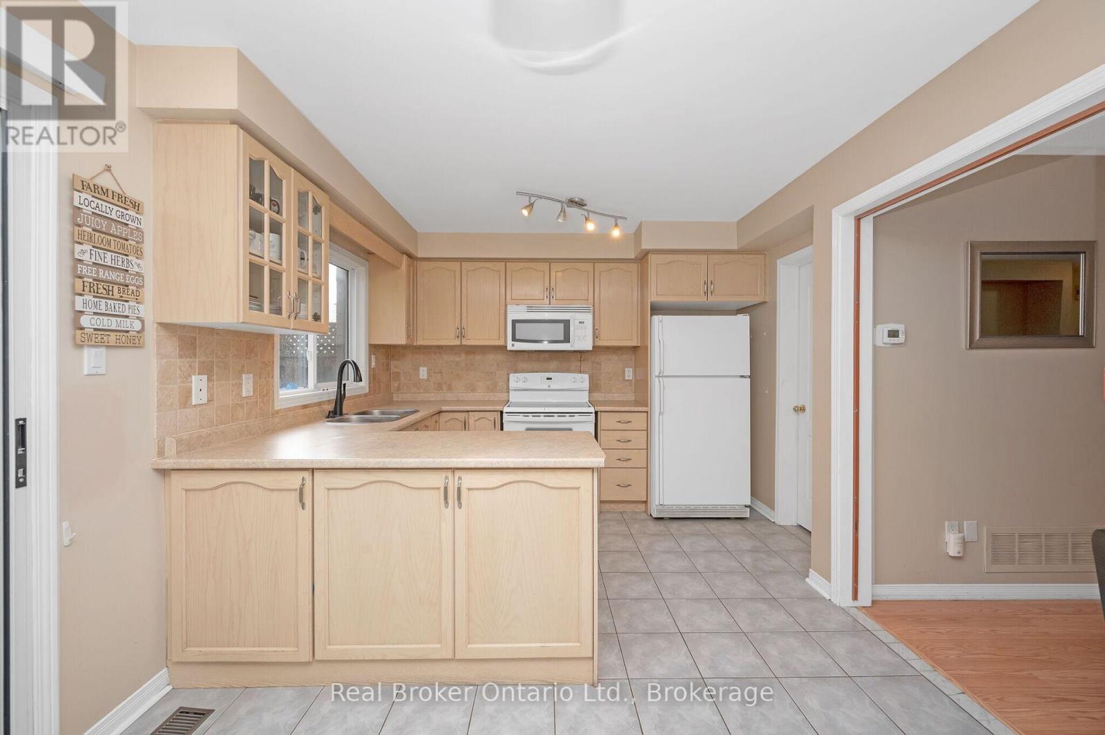 CHARMING FREEHOLD SEMI-DETACHED , 2 STOREY home is located in the highly sought-after West Oak Trails area. It features 3 bedrooms, 3 bathrooms, and a fully finished basement. The homes well-designed layout allows for plenty of natural light throughout. Upon entry, a spacious foyer leads to the family room and eat-in kitchen with ample counter space and cabinetry. Patio doors open to a private, fenced backyard with mature trees offering shade and privacy ideal for relaxing or entertaining on the deck. Off the kitchen, you'll find a laundry room with a large stacking washer and dryer, a convenient wash basin, and a powder room. Upstairs, the primary bedroom includes an ensuite and walk-in closet, while two additional bedrooms, a 4-piece bathroom, and a linen closet complete the 2nd level. The fully finished basement offers a versatile recreation room, perfect for a home office, plus a utility room, storage area, and rough-in for an additional washer and dryer. The home also includes a deep single-car garage. Located in a top-ranked school district, including Garth Webb Secondary, Emily Carr Public, and several more. This home is close to highways, walking trails, Oakville Hospital, and various family-friendly amenities. Ideal for any family! (id:64974)